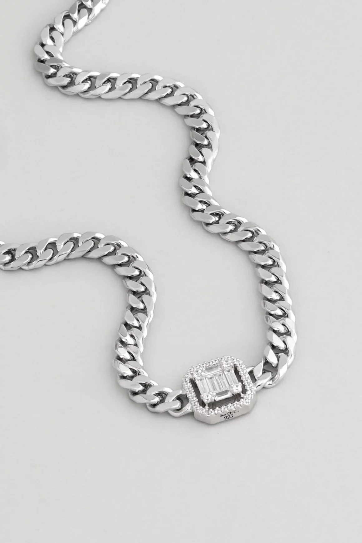 • Baget Pırlanta Kolye: Tek taş baget kolye modelleri, her görünüme mükemmel miktarda şık parlaklık katar. Bıçak kenarlı çerçeve veya yarı çerçeveli kolye tasarımıyla birlikte kullanıldığında, net çizgiler ve keskin köşeler en sevdiğiniz kaplama rengiyle daha da vurgulanır.