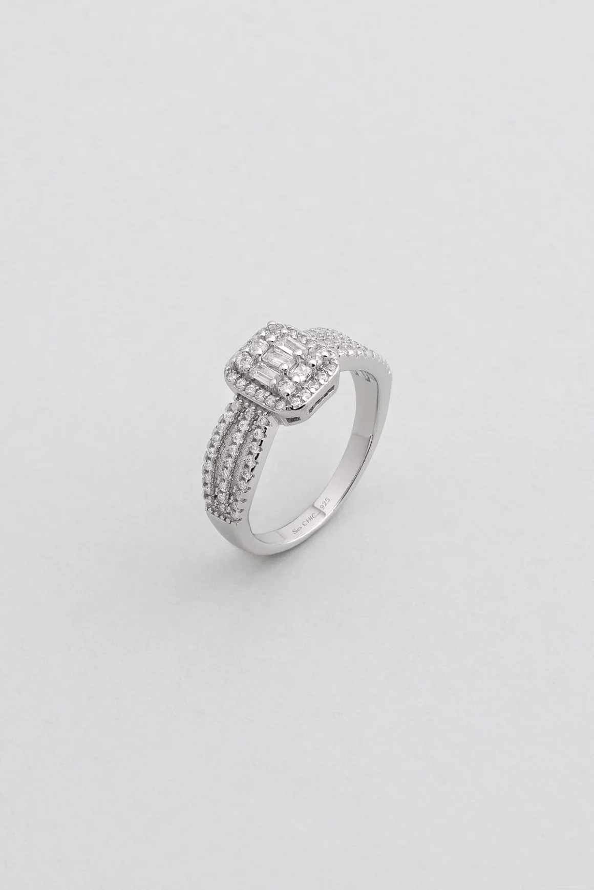 • Parlaklığı, saflığı ve dayanıklılığıyla tanınan rodyum kaplama nişan yüzüğü, zarafetin nihai ifadesidir. Baget şeklindeki pırlantalarla eşleştirildiğinde genel görünüm, zamana meydan okuyan bir zarafettir.