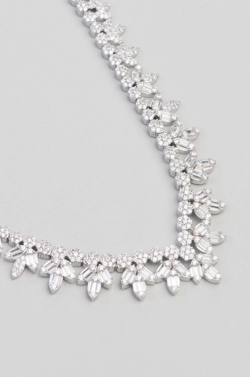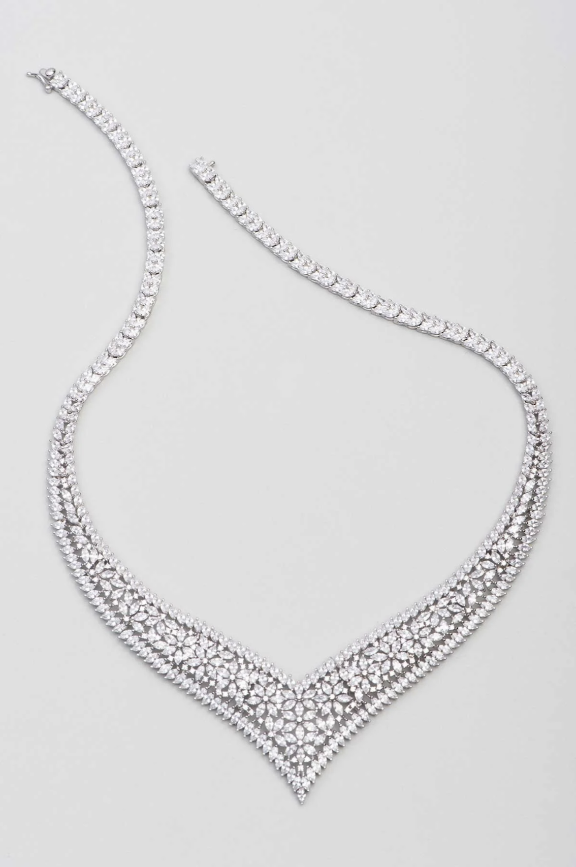 Kapalı yaka gelinliklerin boyun boşluğu, kolye takılması için uygun olmuyor. Ancak yine de boynunuzu süslemek isterseniz, ince bir zincirle baget pırlanta takılar seçebilirsiniz. Baget kolye çeşitleri kapalı yaka gelinliklerle minimal bir görünüm sağlıyor.