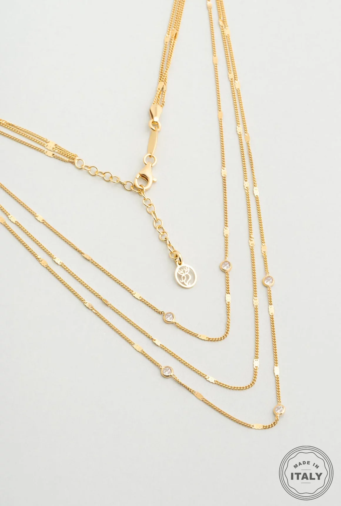 - V yaka bir bluzla kullanılan deri ceket üzerine ince katmanlı kolyelerin zarif bir geçiş sağlaması boynu daha uzun ve daha modern gösterir.