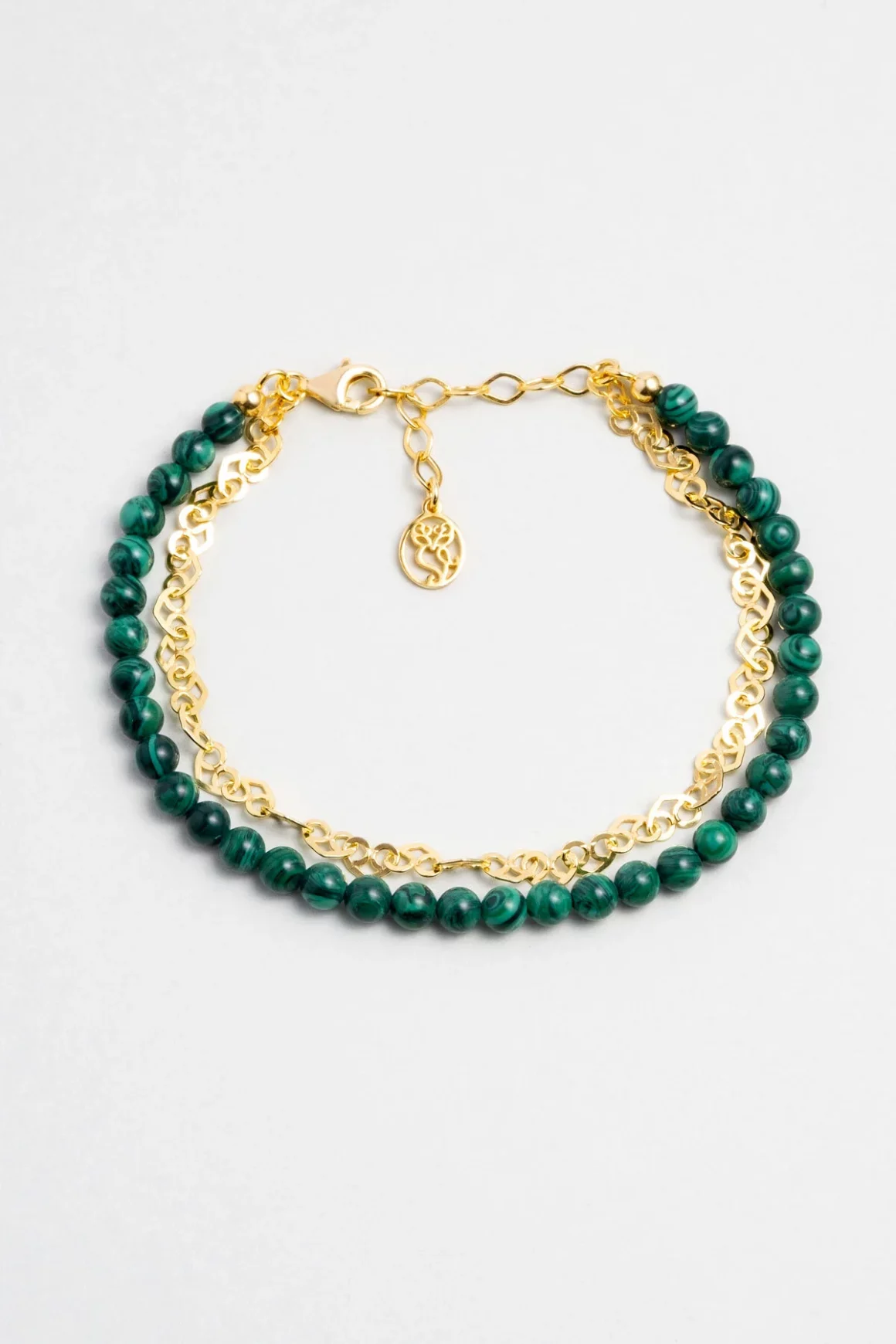Malahit taşının kendine özgü birçok özelliği bulunmaktadır. Bu özellikler, taşın hem estetik cazibesini artırmakta hem de onu spiritüel uygulamalarda tercih edilen bir unsur haline getirmektedir. Malahit taşı, yoğun yeşil renkleri, banded (çizgili) yapısı ve doğal desenleri ile tanınır. Hidrotermal oluşum süreçleri sonucu meydana gelen bu taş, mineral açısından zengin bir yapıya sahiptir. Aynı zamanda dayanıklılığı ve işlenebilirliği sayesinde, modern tasarımın gereksinimlerini karşılamakta ve şık bileklik modellerinde kendine yer bulmaktadır.