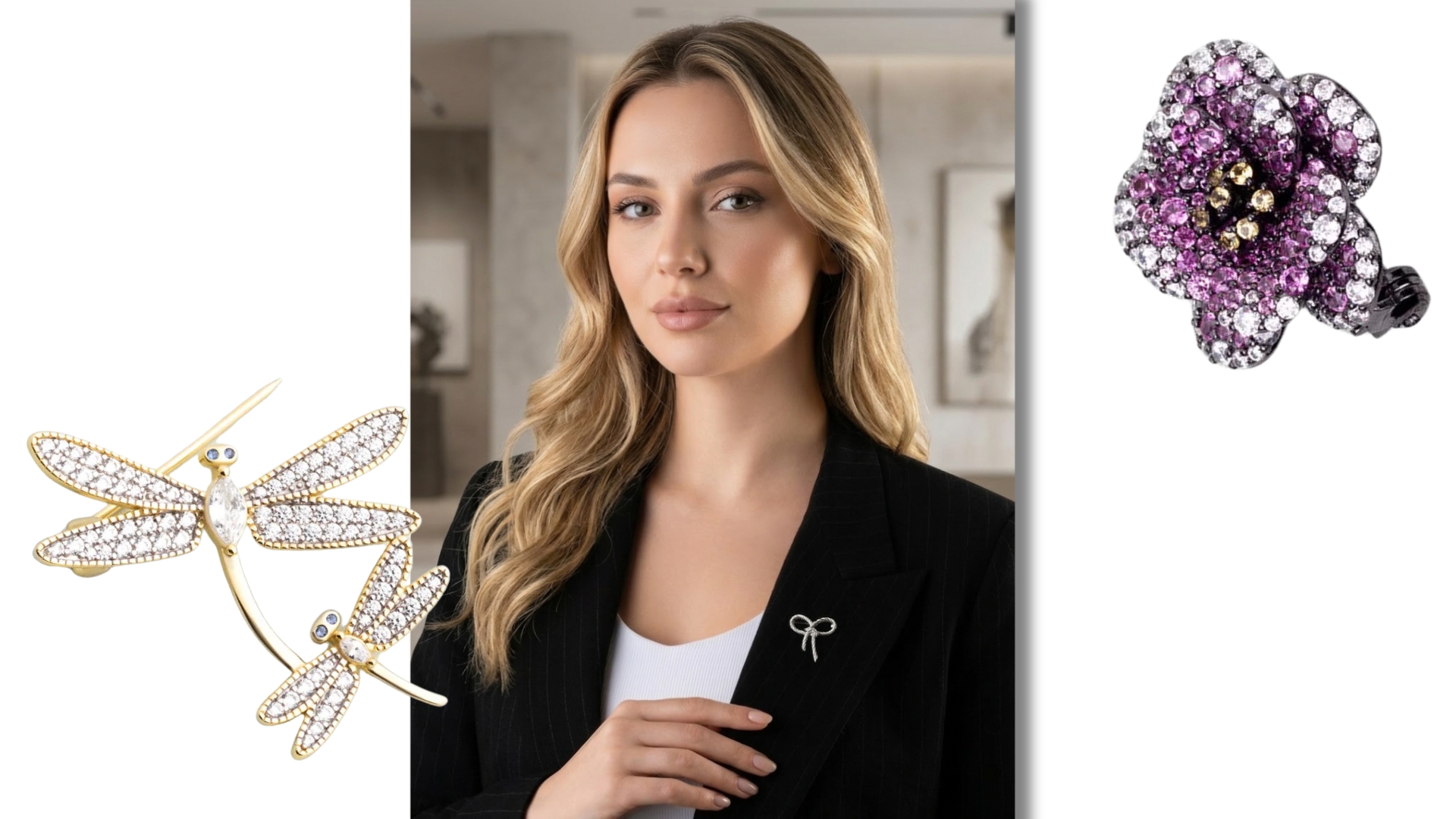Gömlek yakasına takılan küçük bir broş, klasik ofis stiline modern bir dokunuş katabilir.