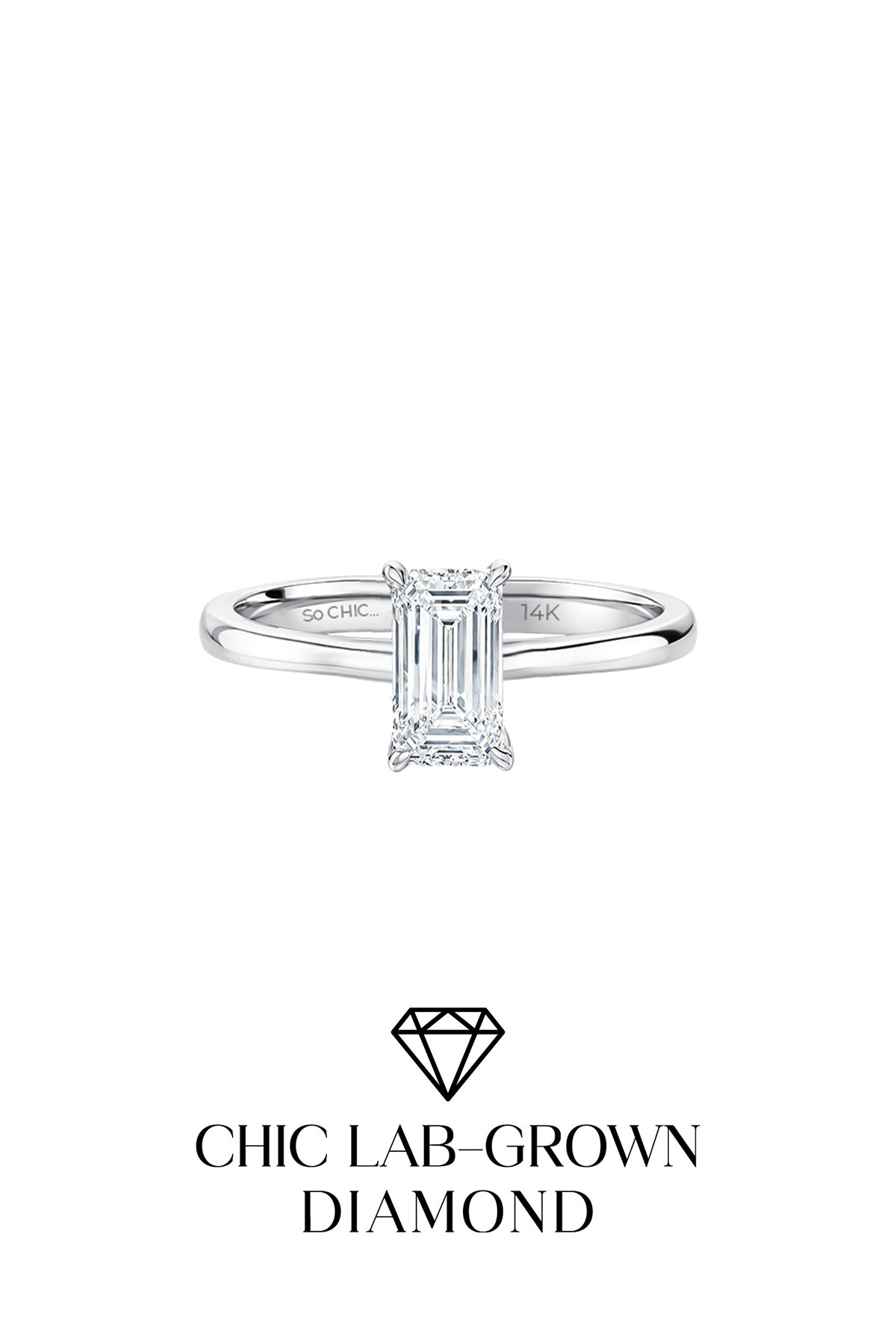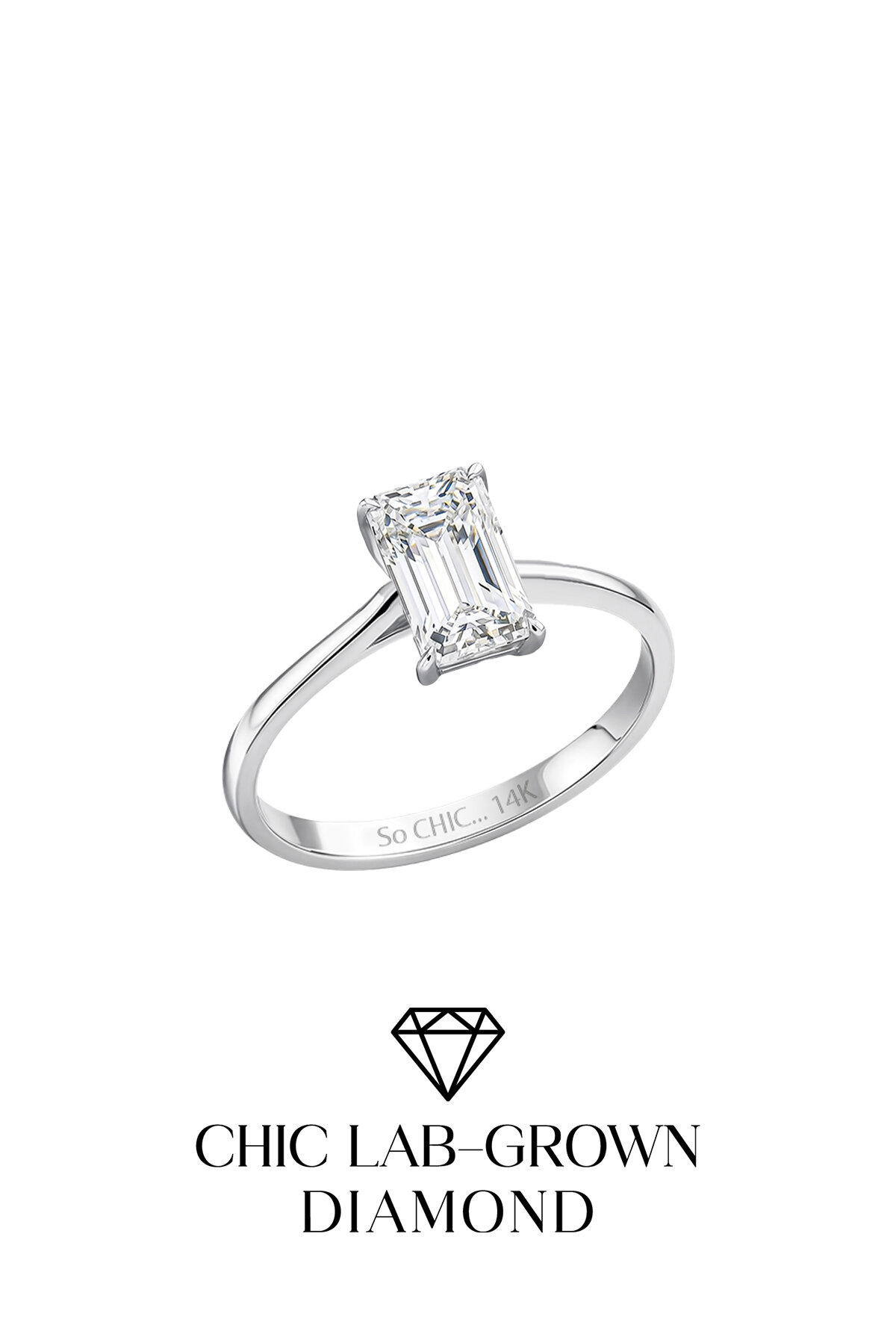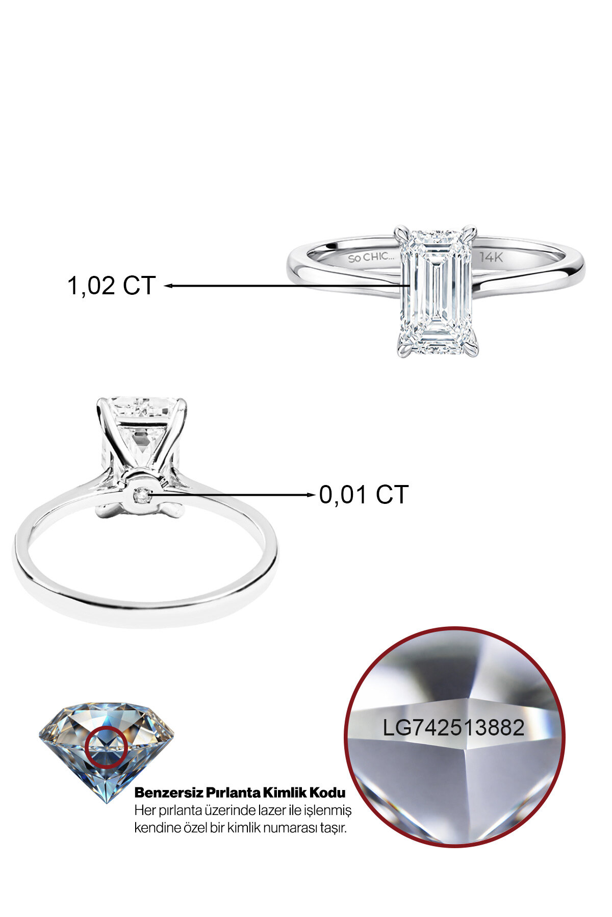1.03 Karat IGI Sertifikalı 14K Beyaz Altın Emerald Kesim Lab Grown Pırlanta Tektaş Yüzük