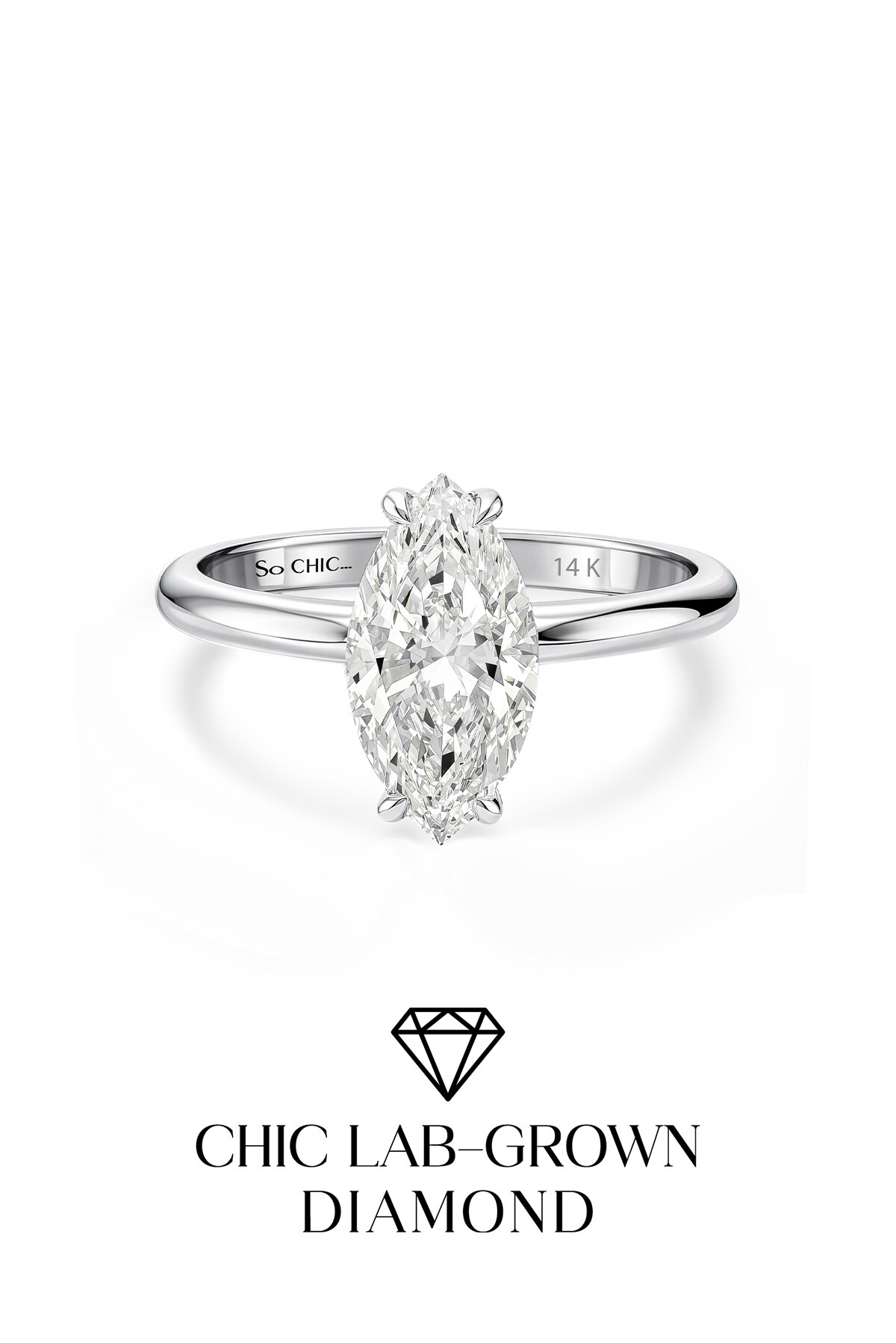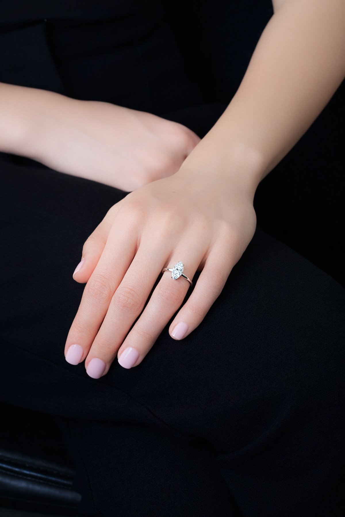 14 ayar beyaz altının asil duruşuyla el işçiliğiyle hazırlanan bu tasarım, pırlantanın doğal ışıltısını ön plana çıkarırken zamansız bir şıklık vaat eder.