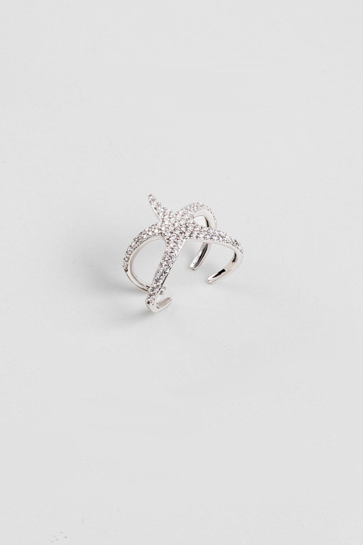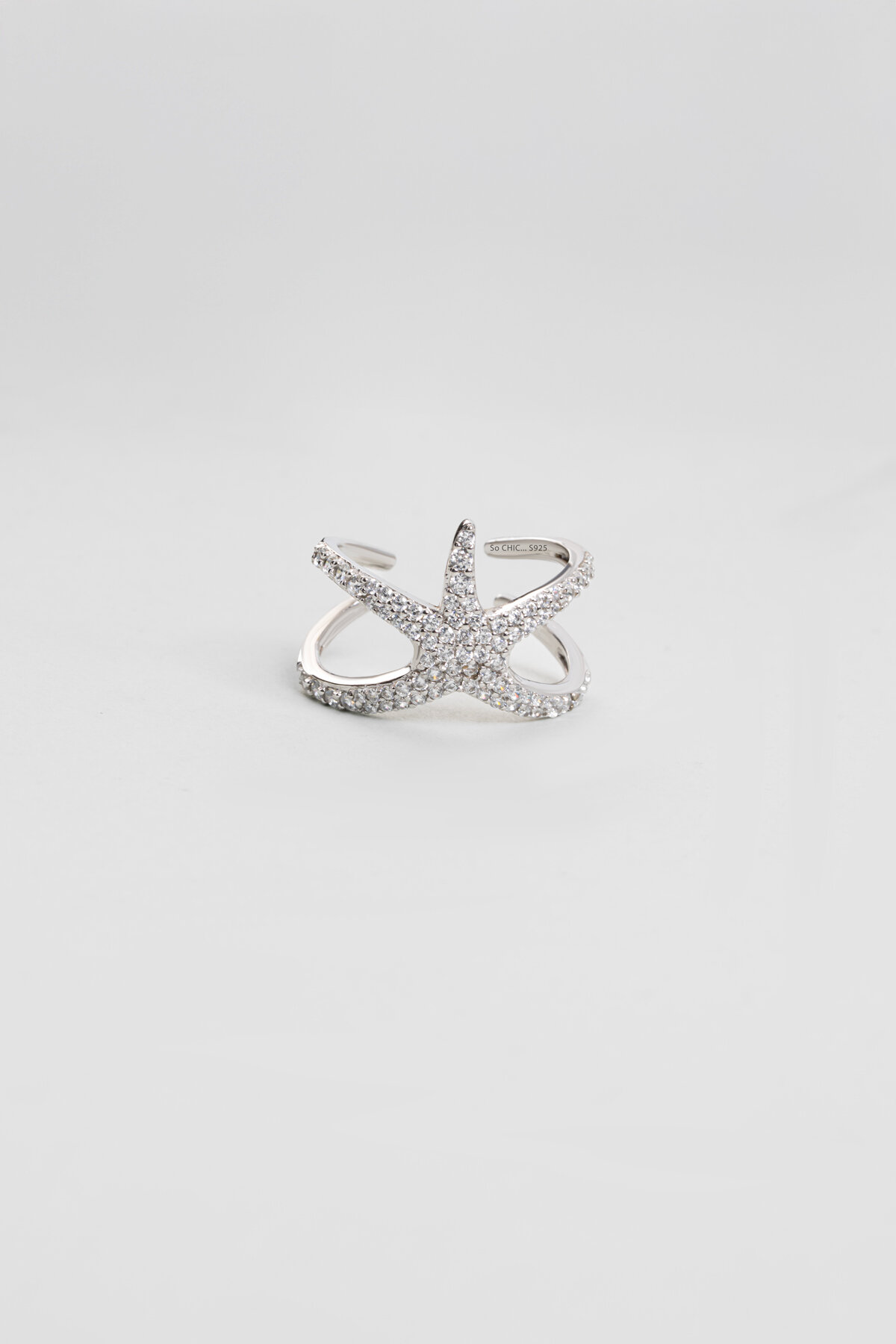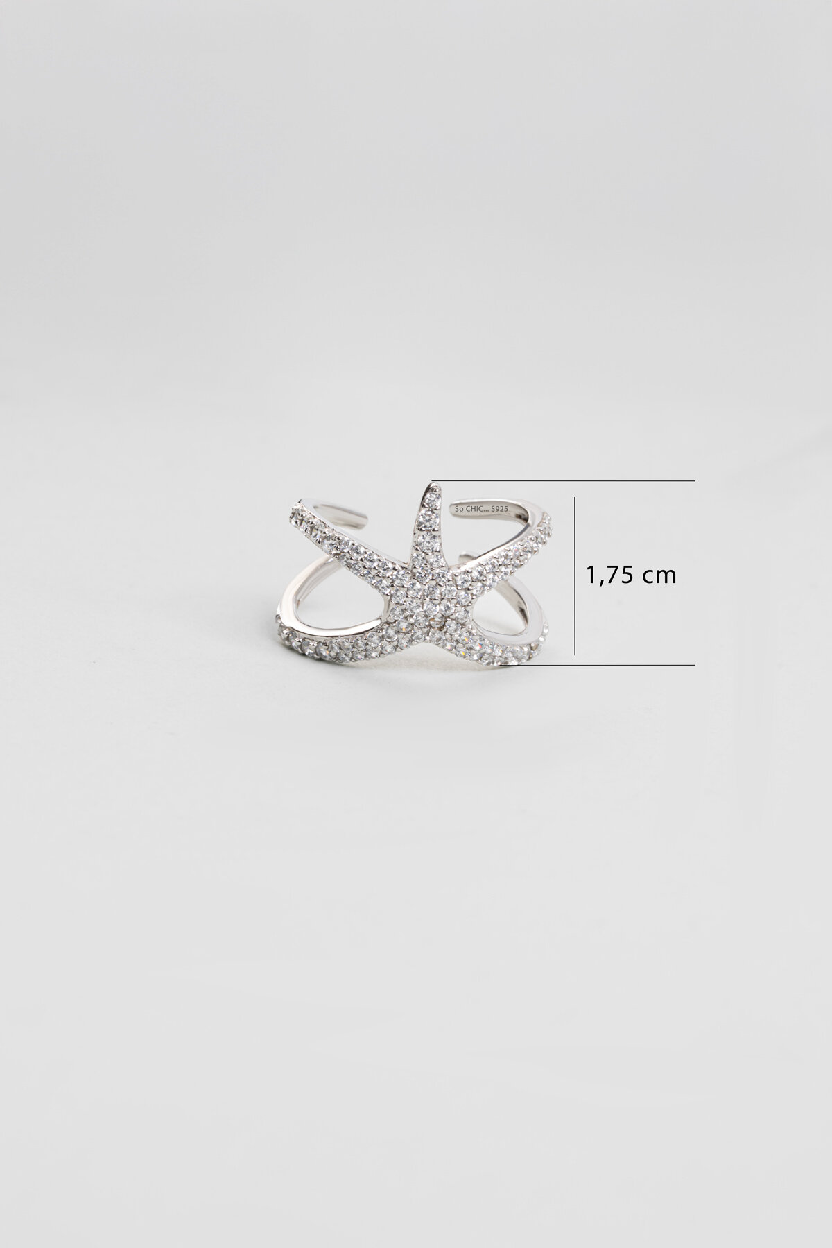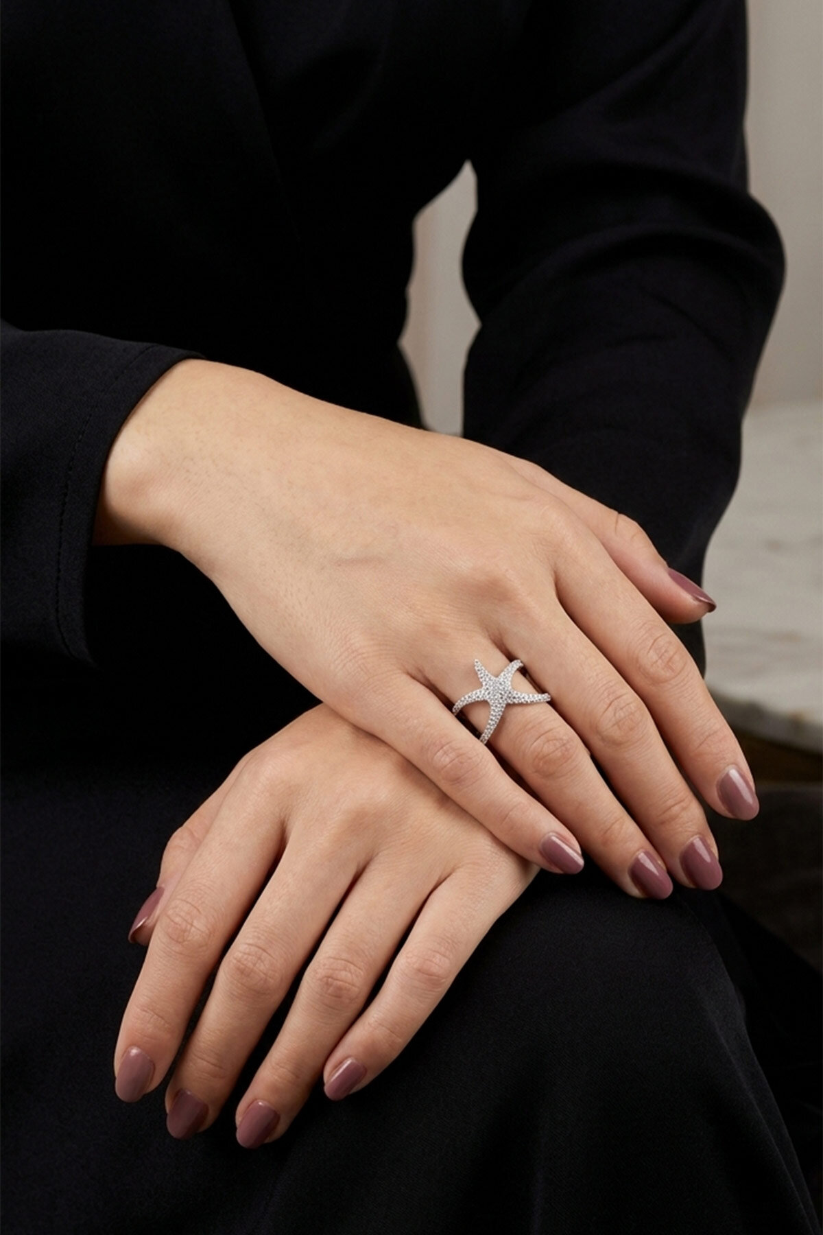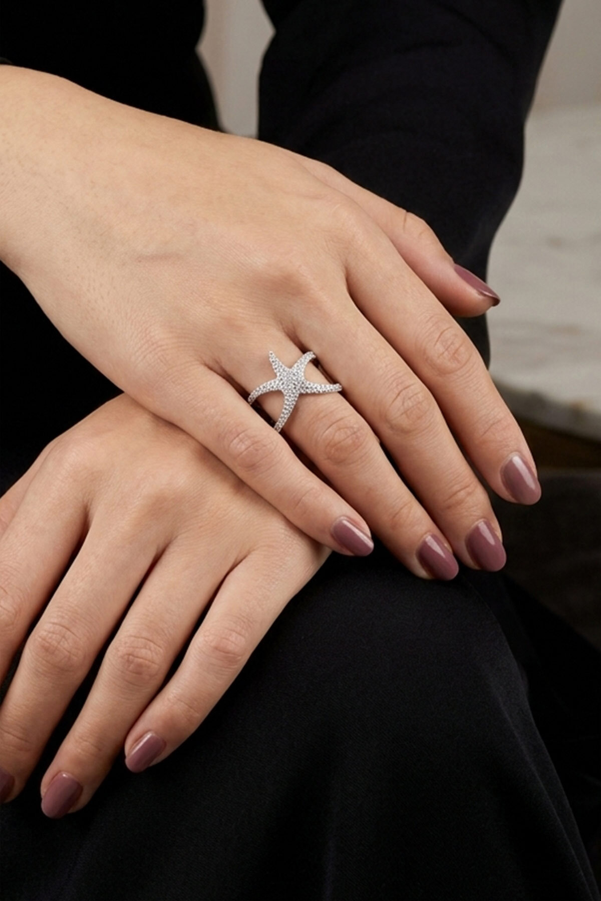 18 Ayar Beyaz Altın Kaplama Ayarlanabilir Gümüş Deniz Yıldızı Yüzük