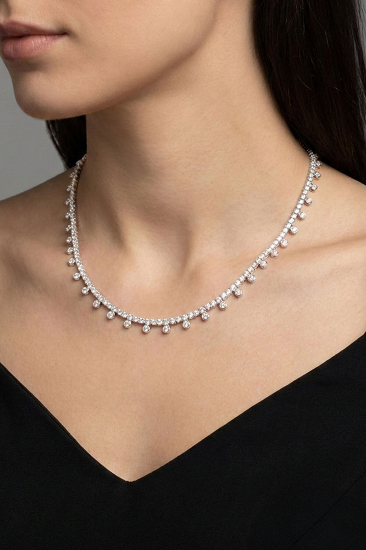 18 Ayar Beyaz Altın Kaplama Gümüş 43 Cm Tasarım Kolye