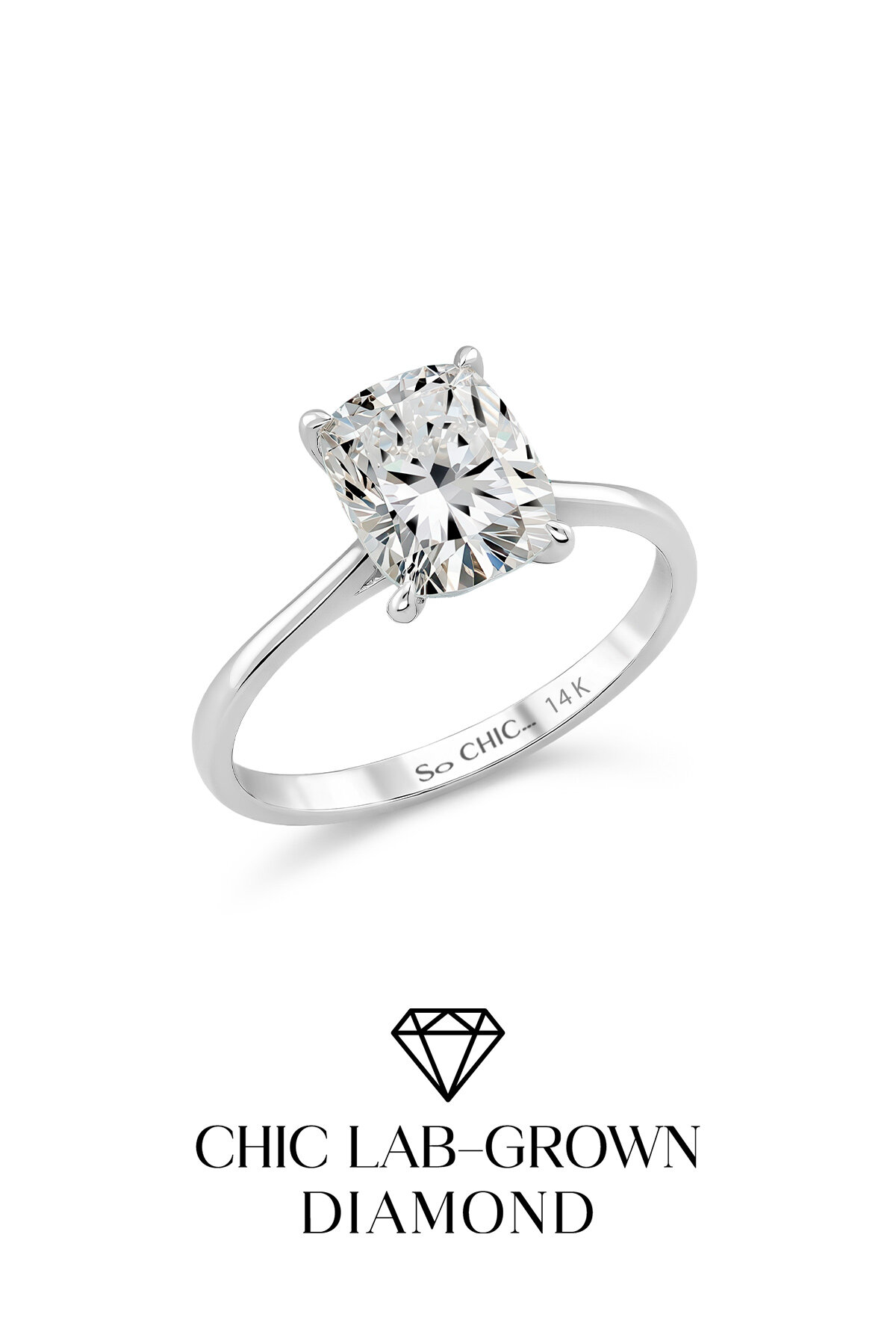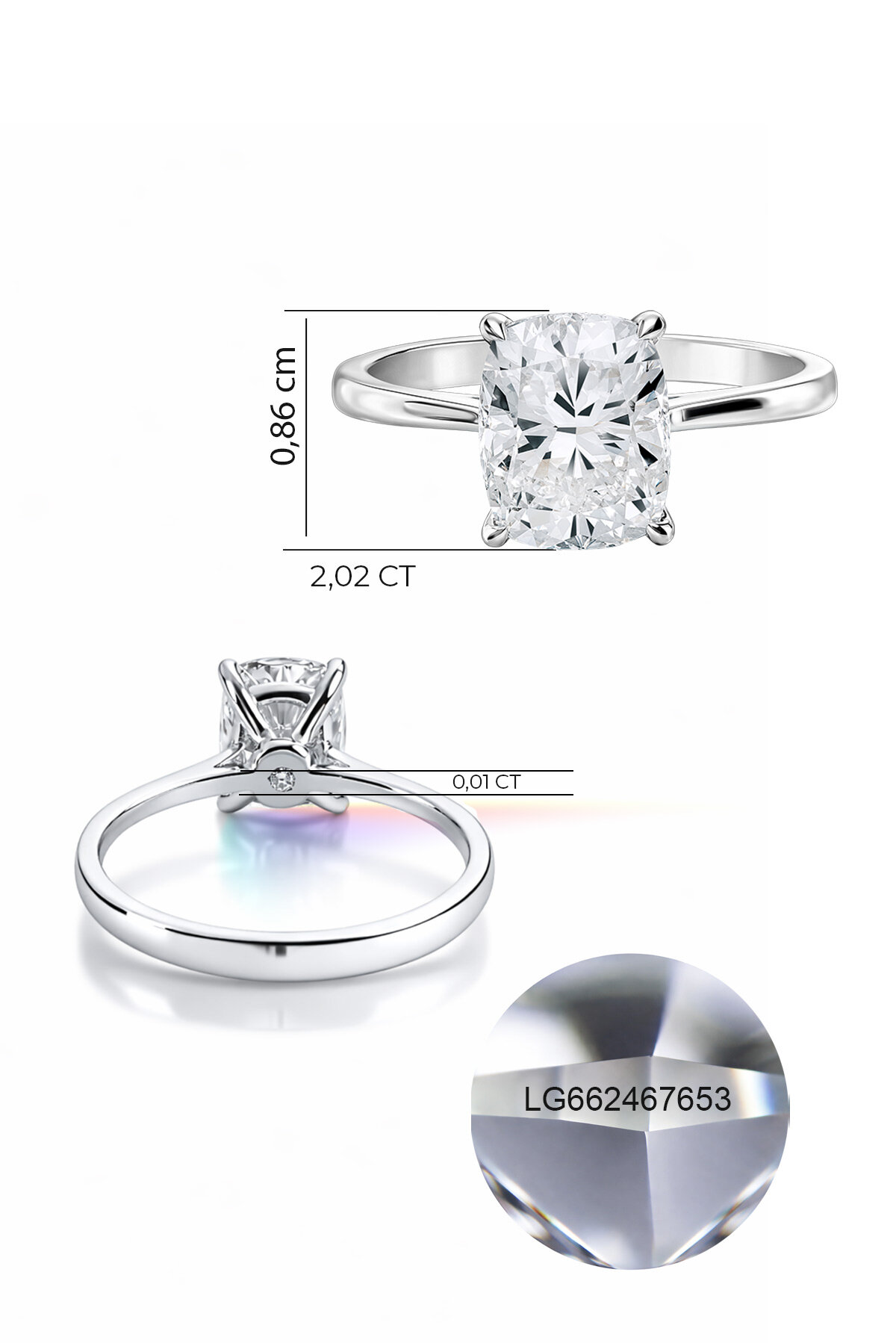 2.03 Karat IGI Sertifikalı 14K Beyaz Altın Cushion Kesim Lab Grown Pırlanta Tektaş Yüzük