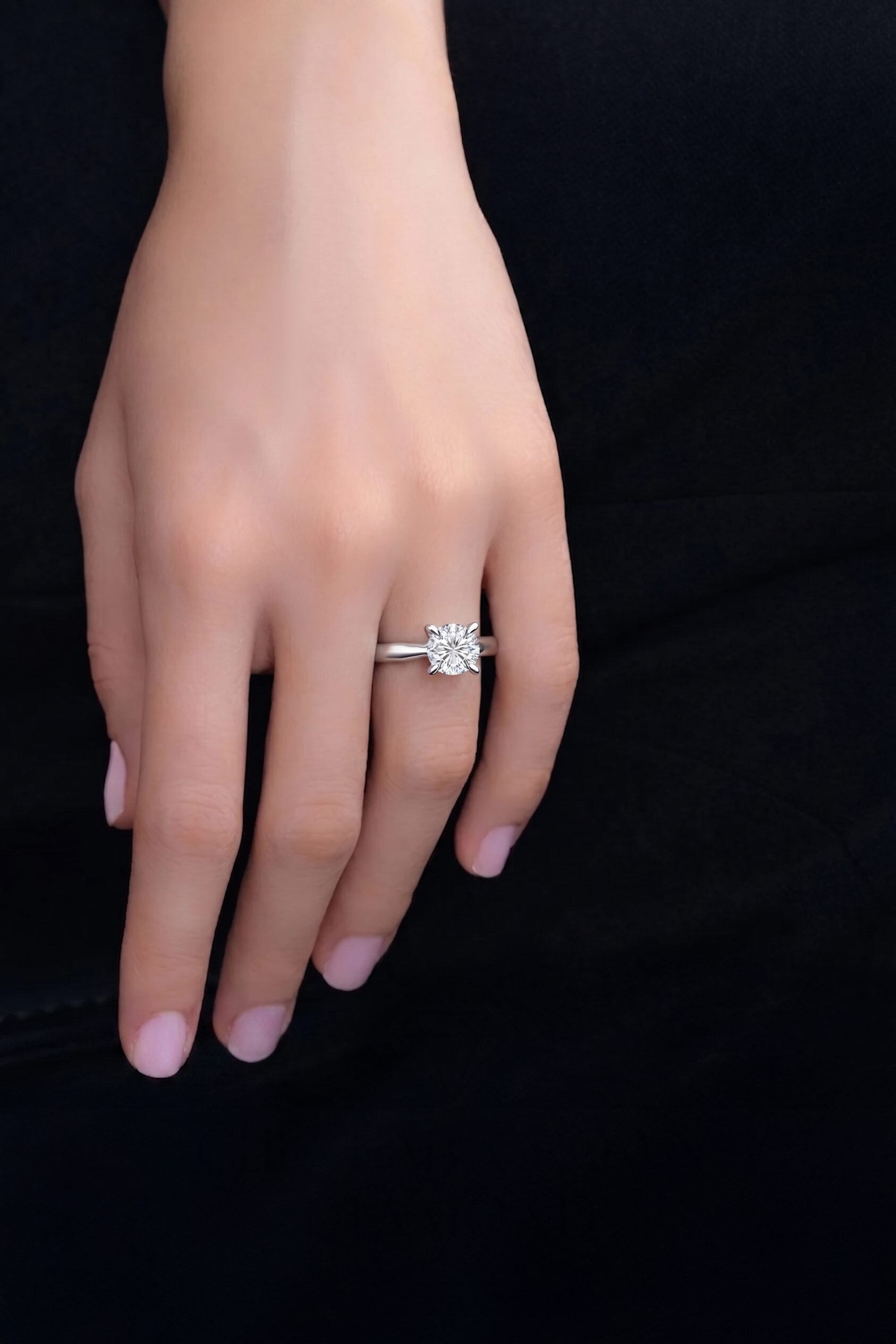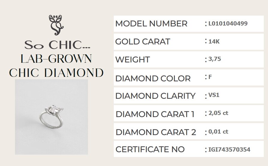 2.06 Karat IGI Sertifikalı 14K Beyaz Altın Yuvarlak Kesim Lab Grown Pırlanta Tektaş Yüzük