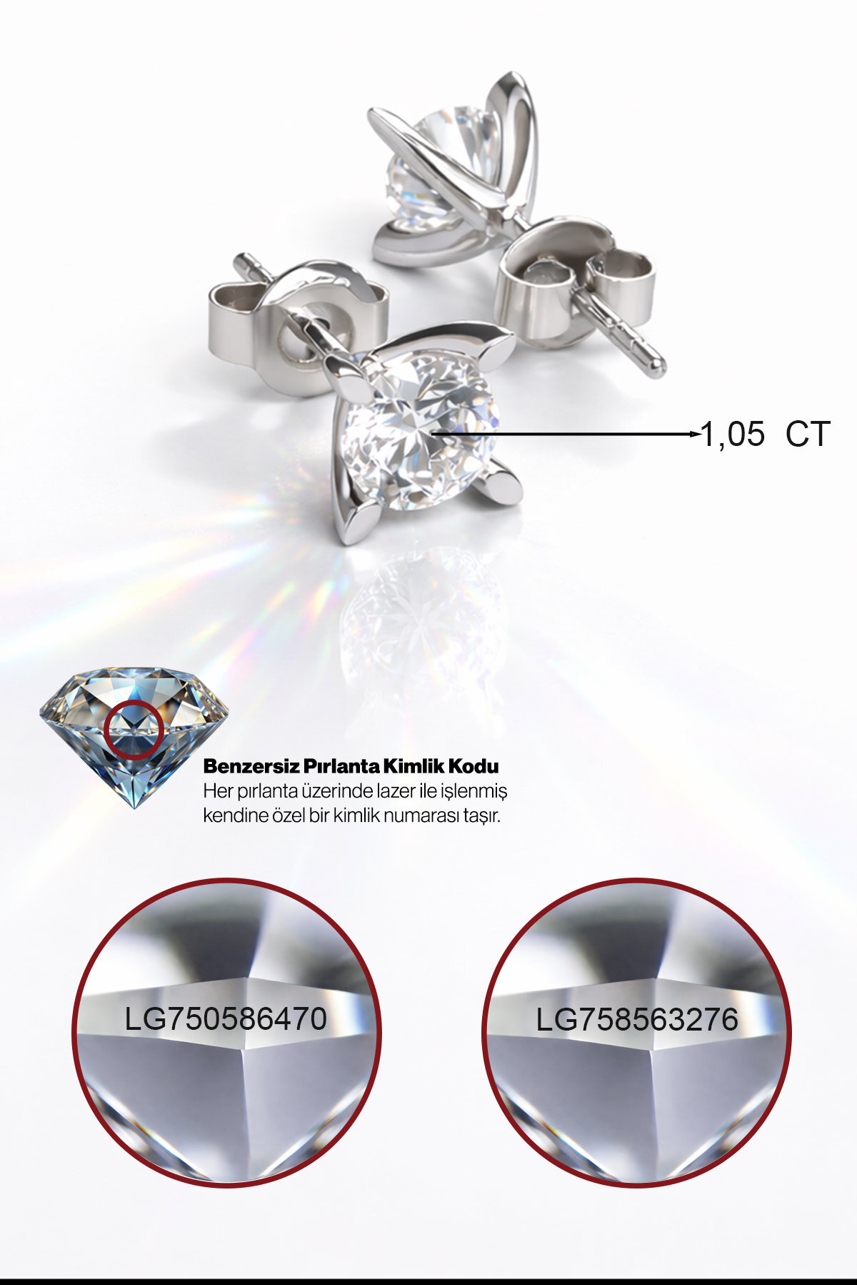 - Teknik Özellik: Üründe Kullanılan Büyük Taşların Kodları Lg750586470 Ve Lg758563276 Olup 1.05 Ct (Karat) Ağırlığındadır.