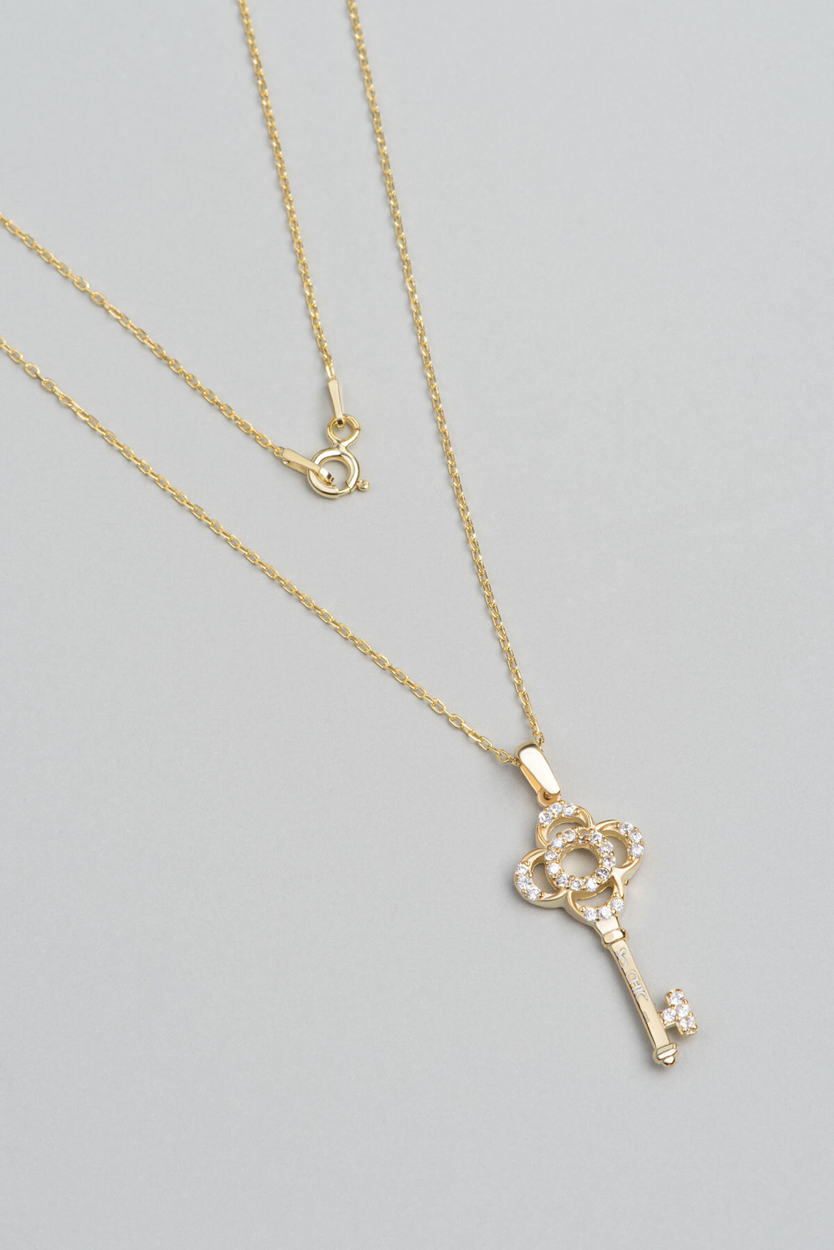 Anahtar 18 Ayar Sarı Altın Kaplama 45 Cm Gümüş Kolye