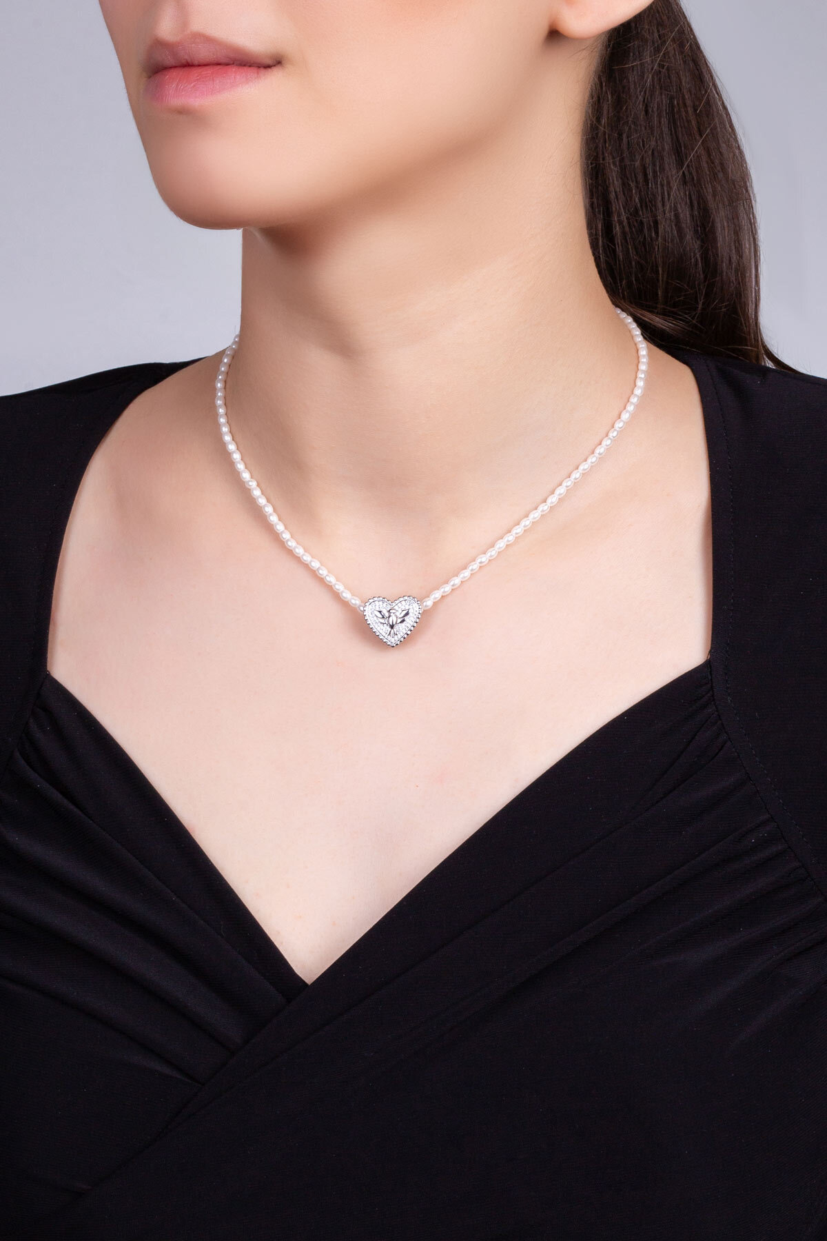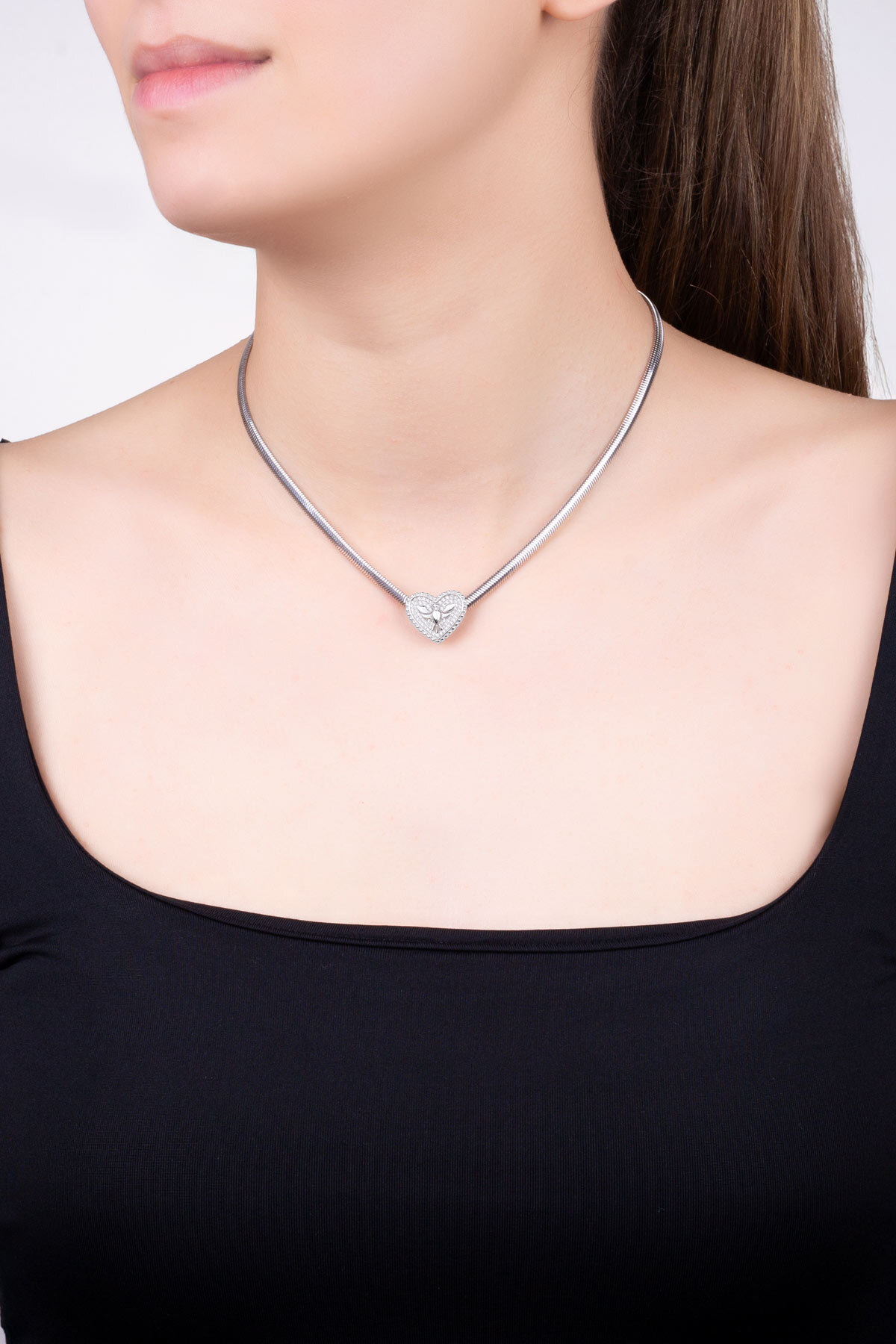 Anka Kuşu 18 Ayar Beyaz Altın Kaplama Gümüş Kalp Charm
