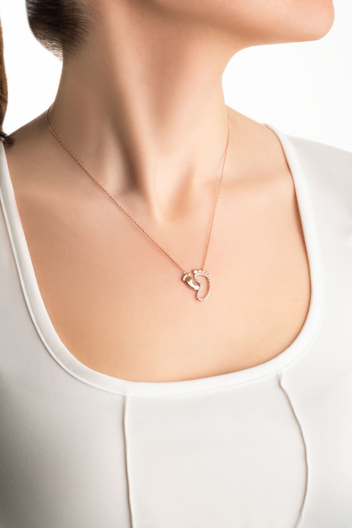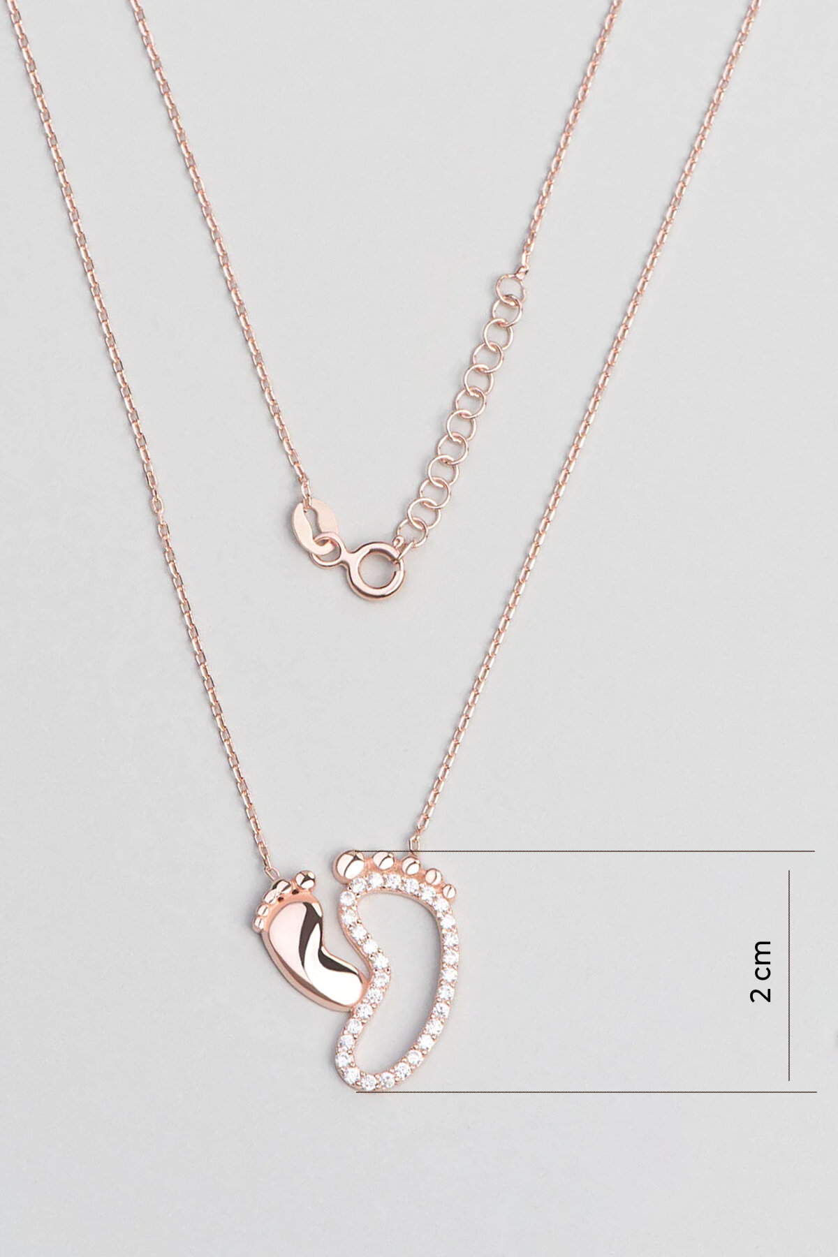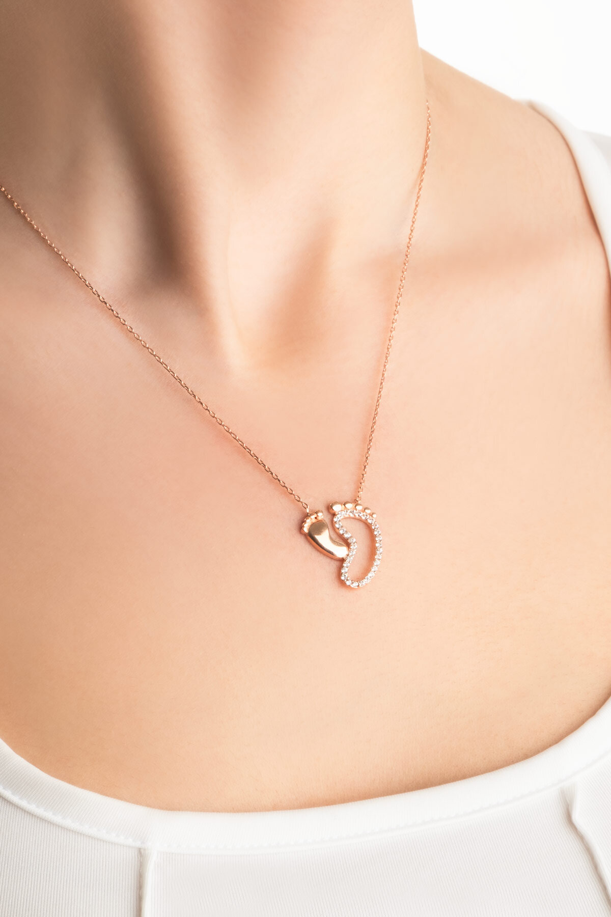 Anne Bebek Ayak İzi 18 Ayar Rose Altın Kaplama 45 Cm Gümüş Kolye