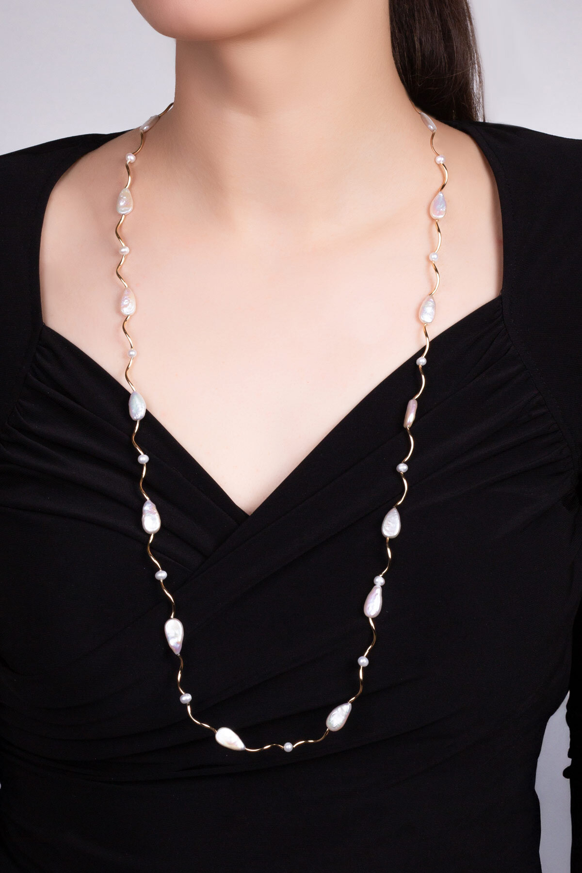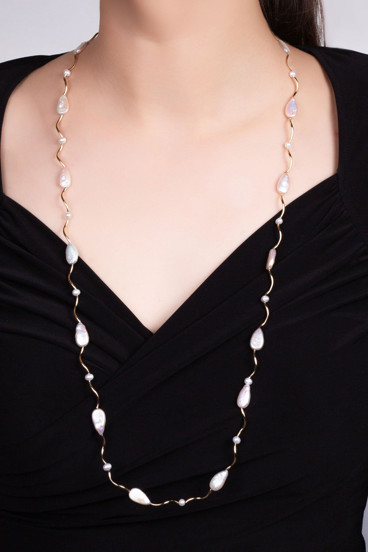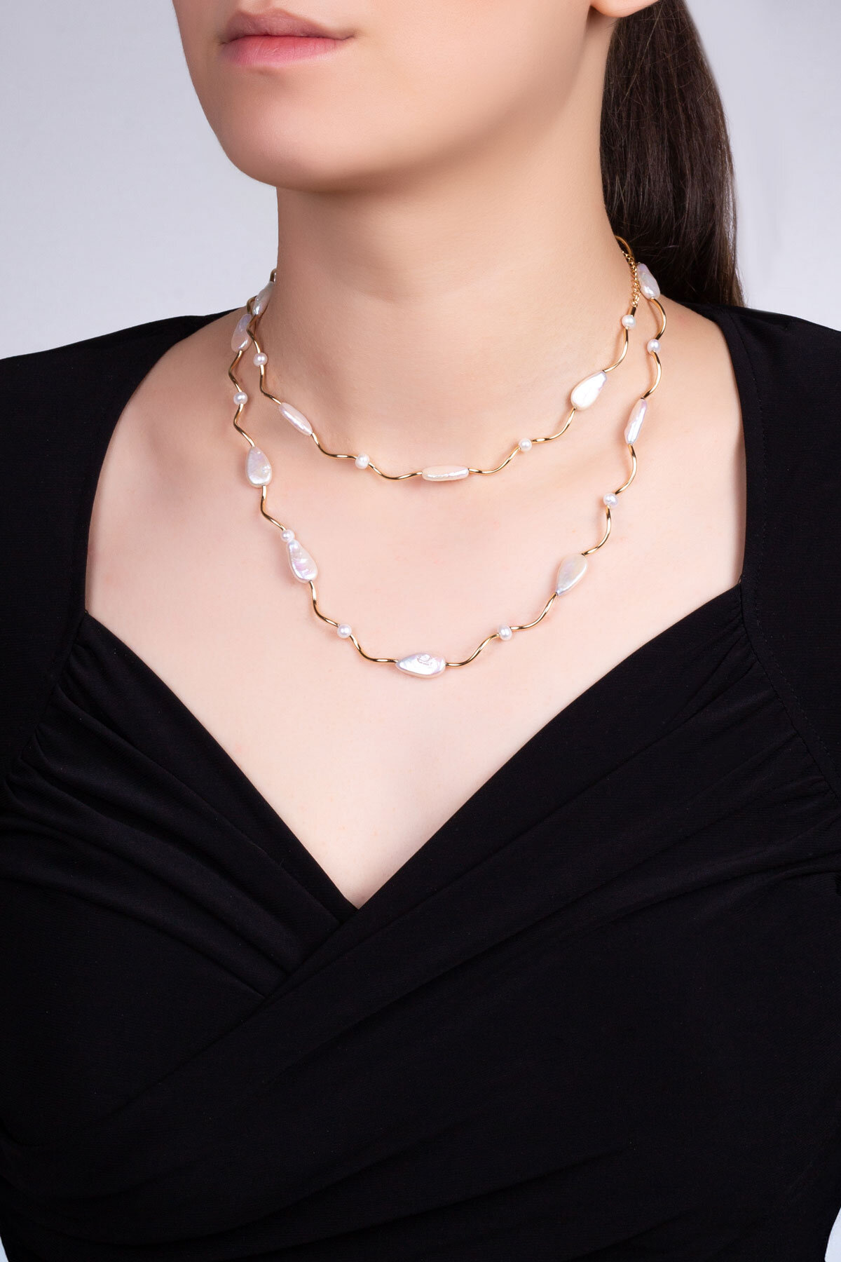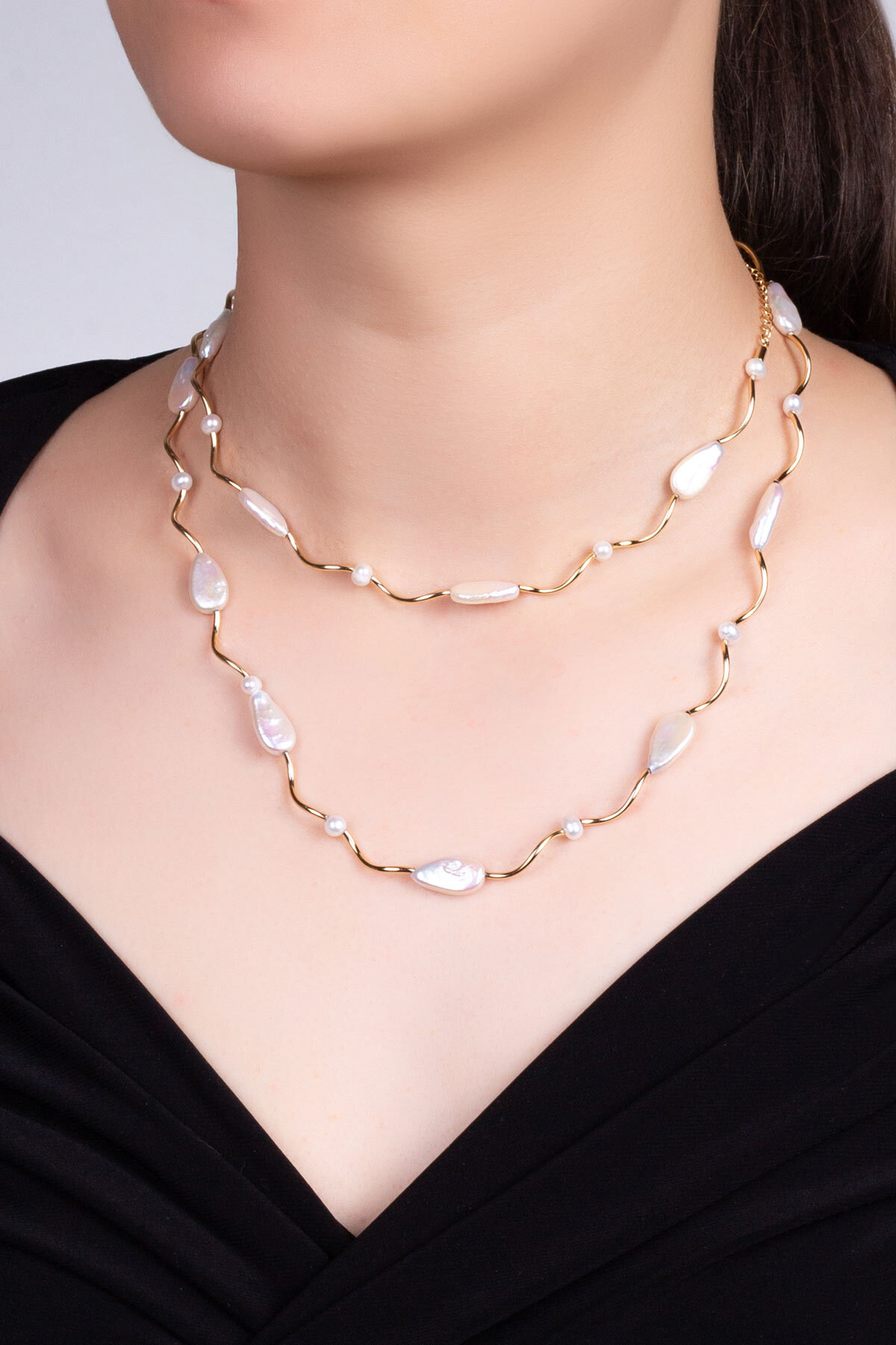 Antik İnci 18 Ayar Sarı Altın Kaplama 95 Cm Gümüş Kolye