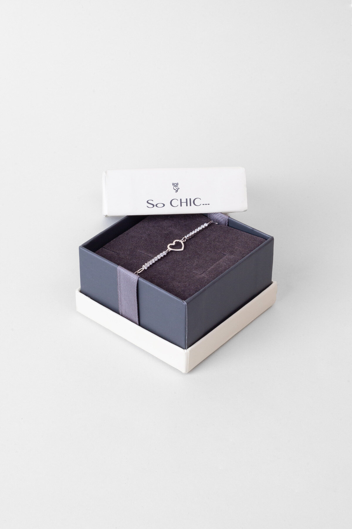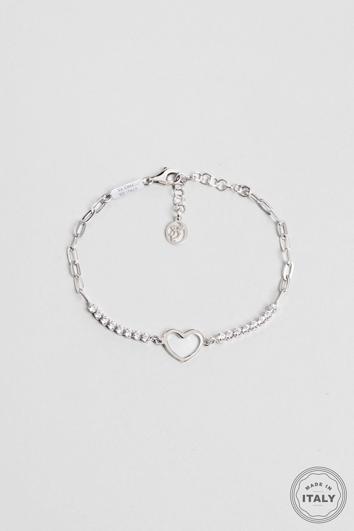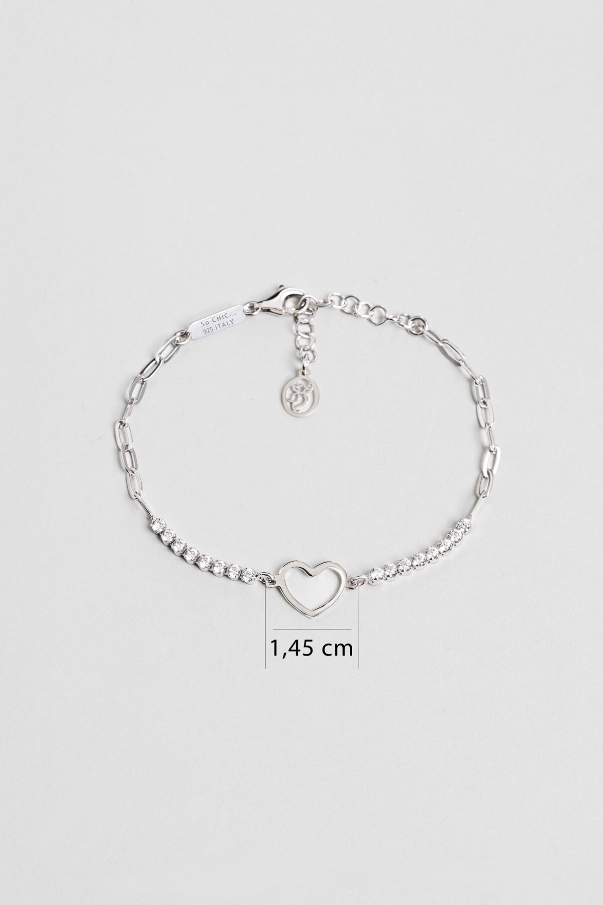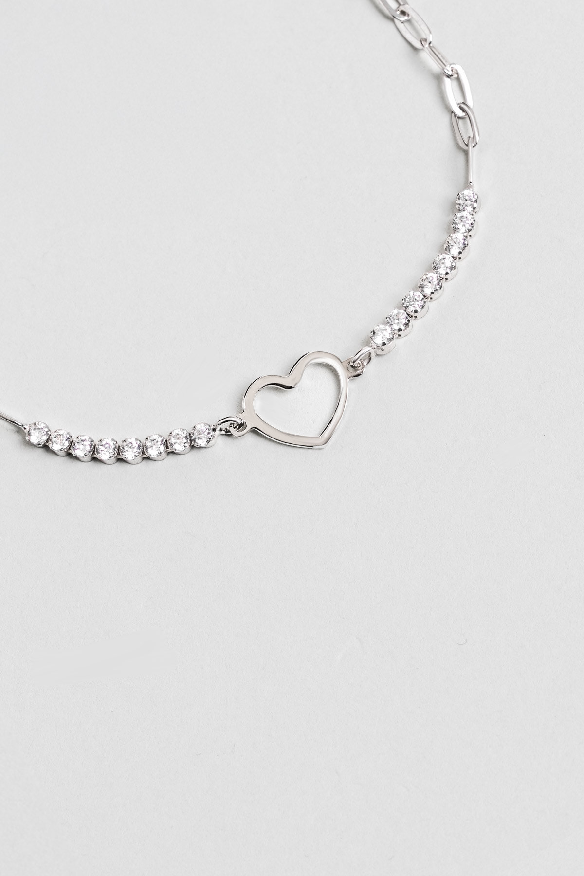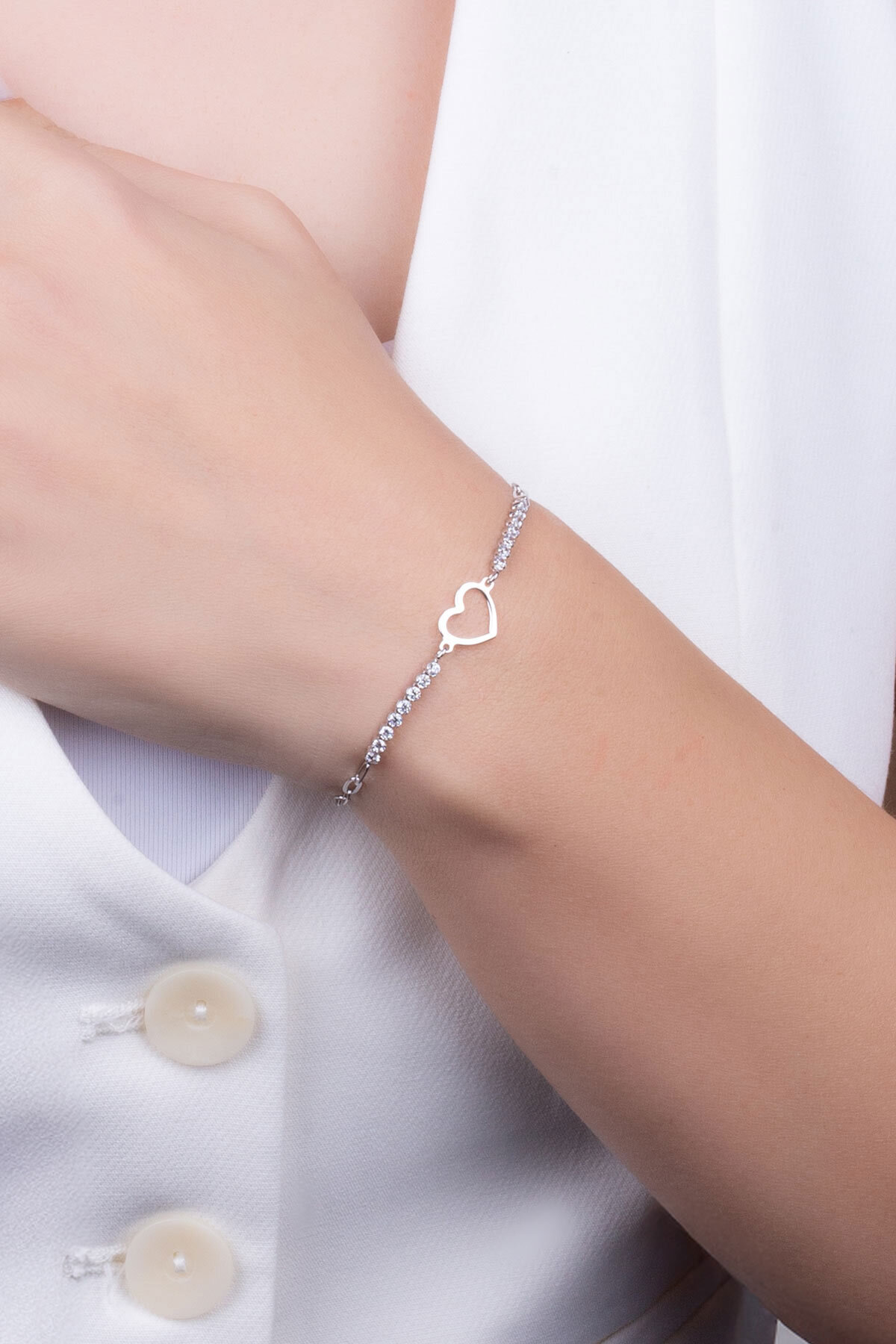 Aşk Işıltısı İtalyan 18 Ayar Beyaz Altın Kaplama 19 Cm Gümüş Kalp Bileklik