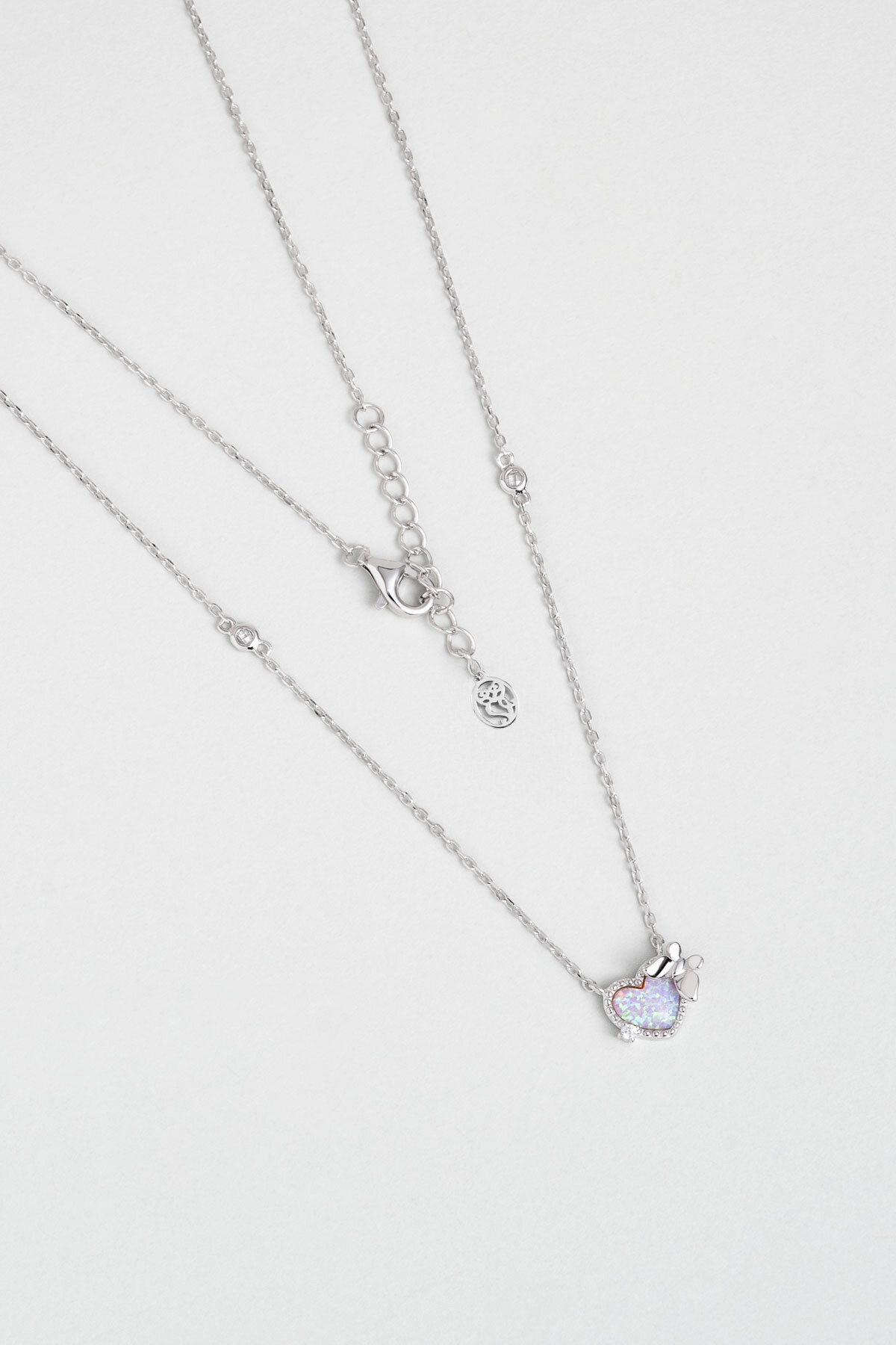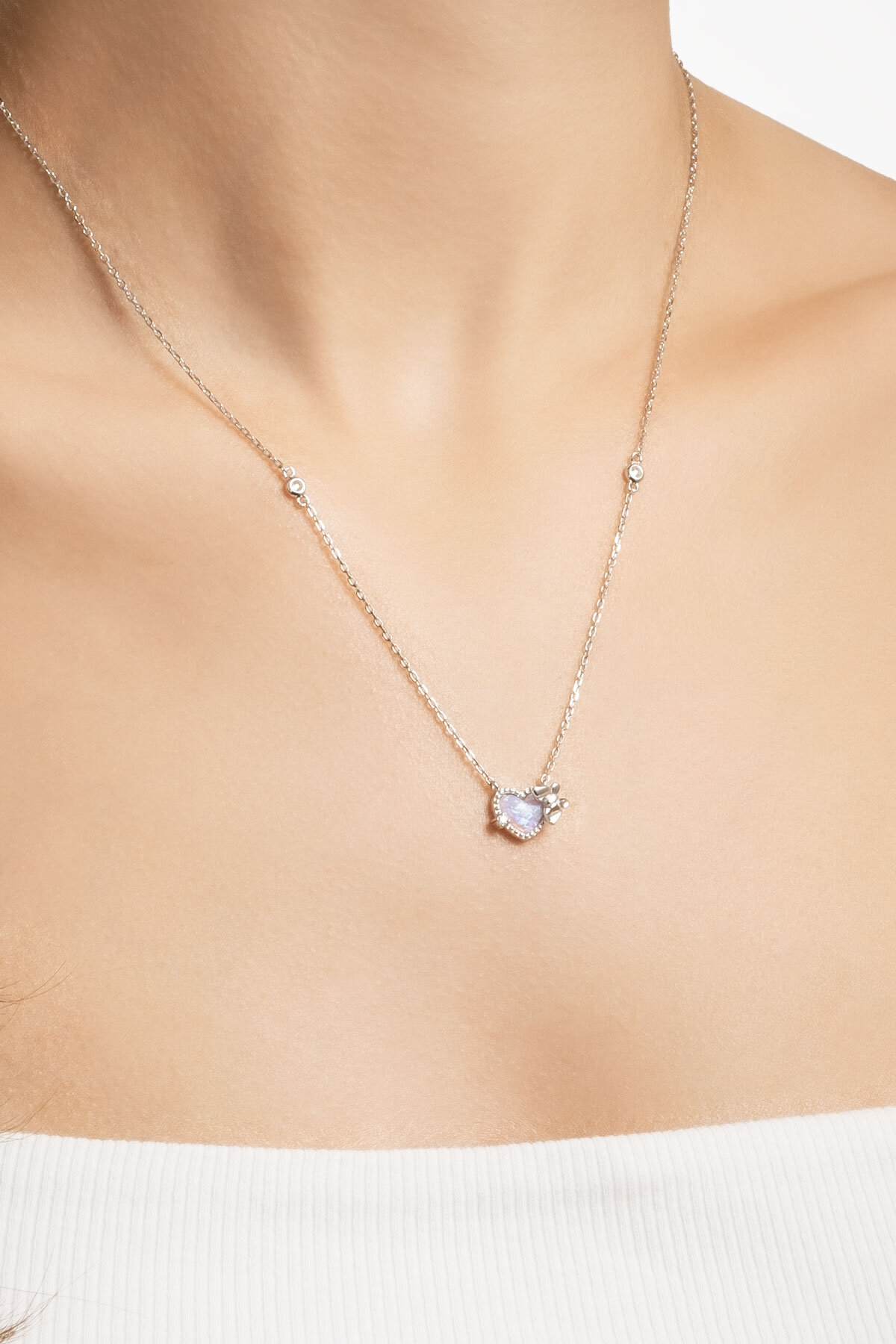 Aşk Kelebeği 18 Ayar Beyaz Altın Kaplama 45 Cm Gümüş Kalp Kolye