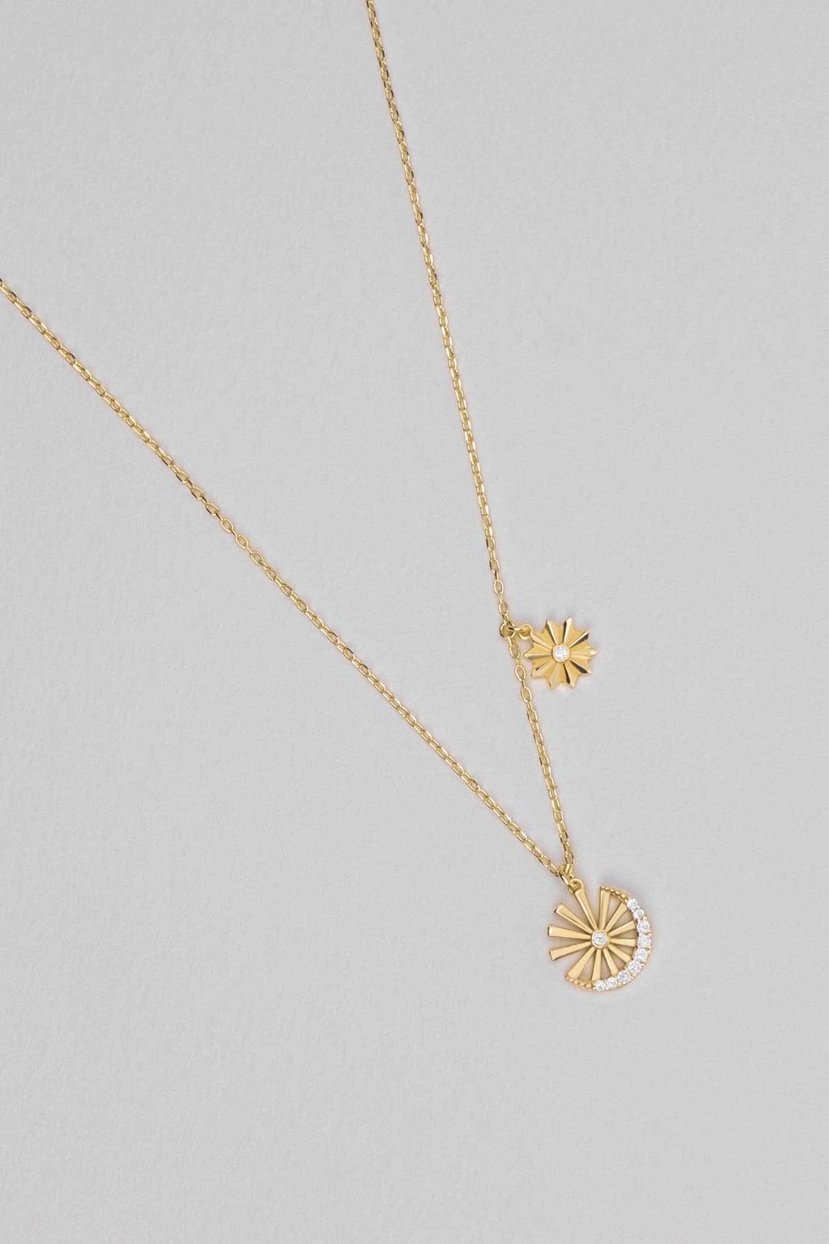 Ay Çiçeği Işıltısı 18 Ayar Sarı Altın Kaplama 45 Cm Gümüş Kolye