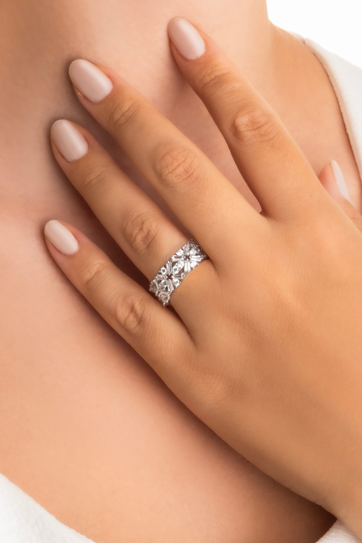 Baget Çiçeği 18 Ayar Beyaz Altın Kaplama Gümüş Yüzük