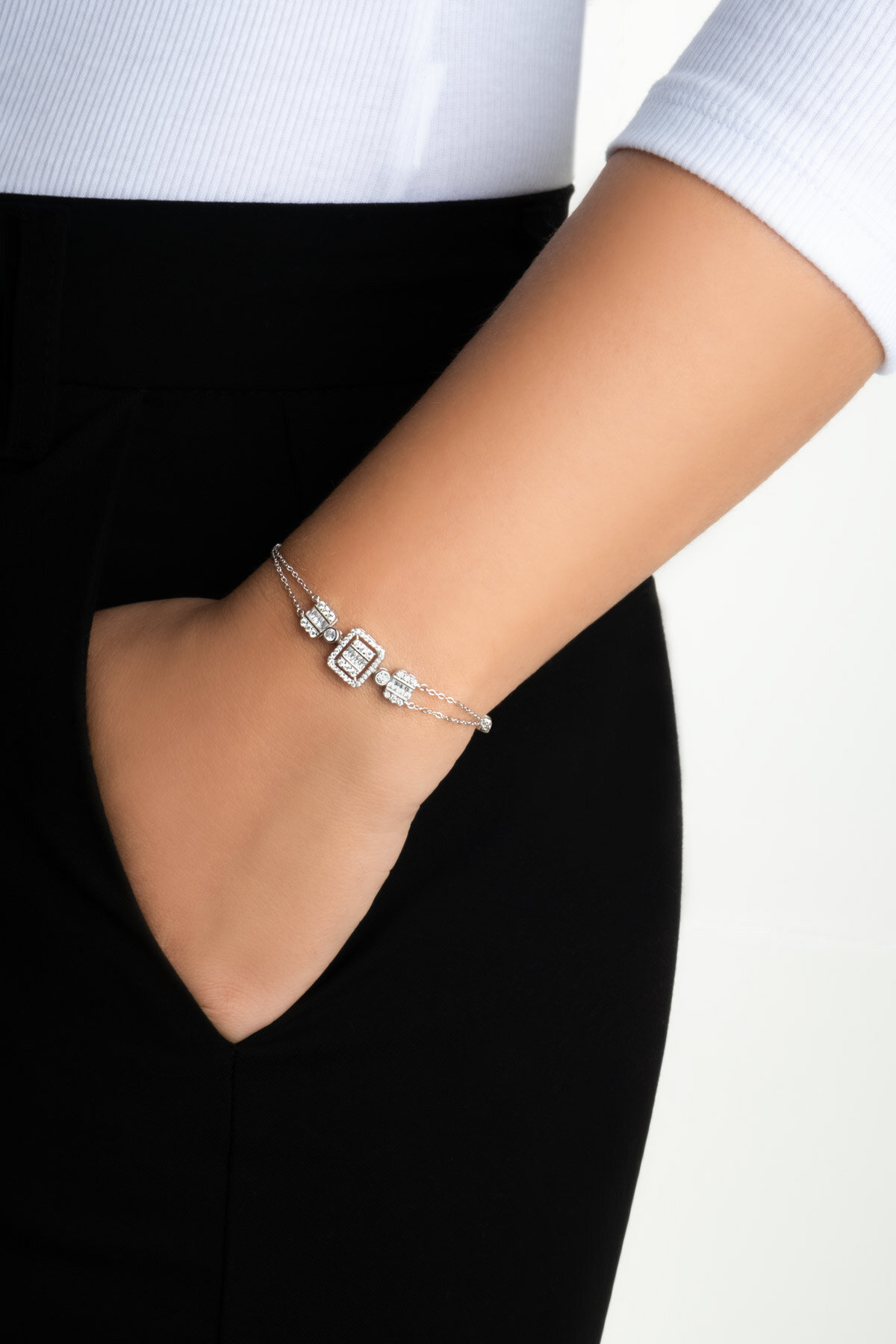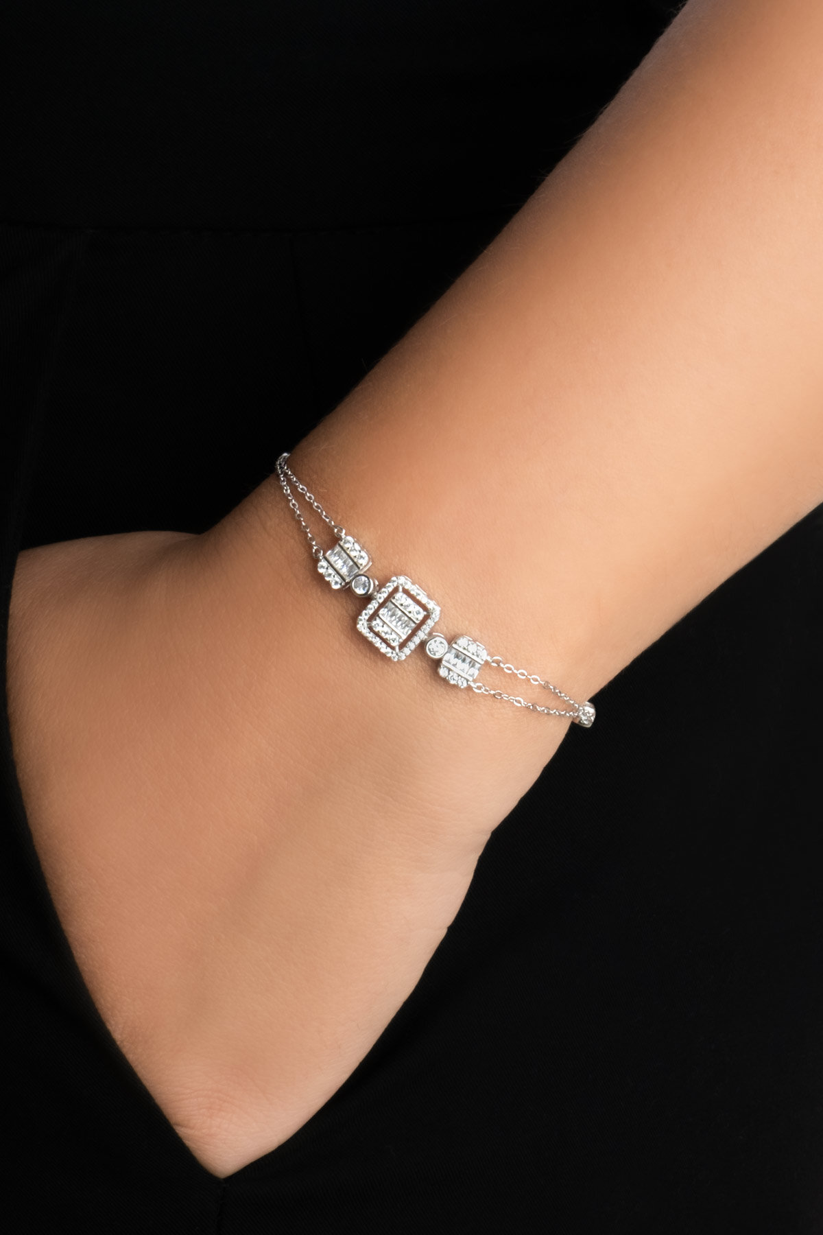Baget Rüyası Bileklik, sade çizgileri ve baget kesim taşın net ışıltısıyla bileğe zarif bir vurgu katar. Minimal tasarımı sayesinde günlük kombinlere uyum sağlar, modern ve dengeli duruşuyla zamansız bir şıklık sunar.