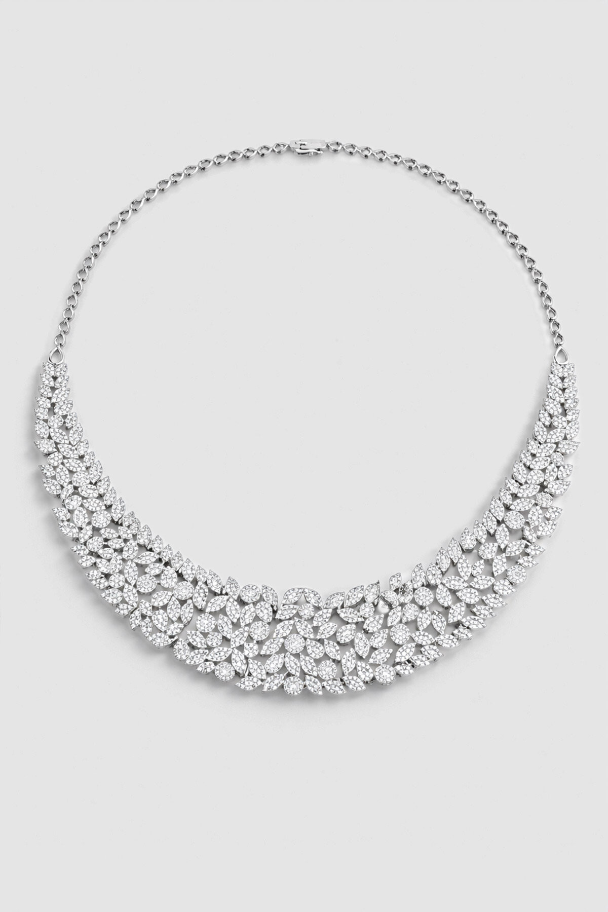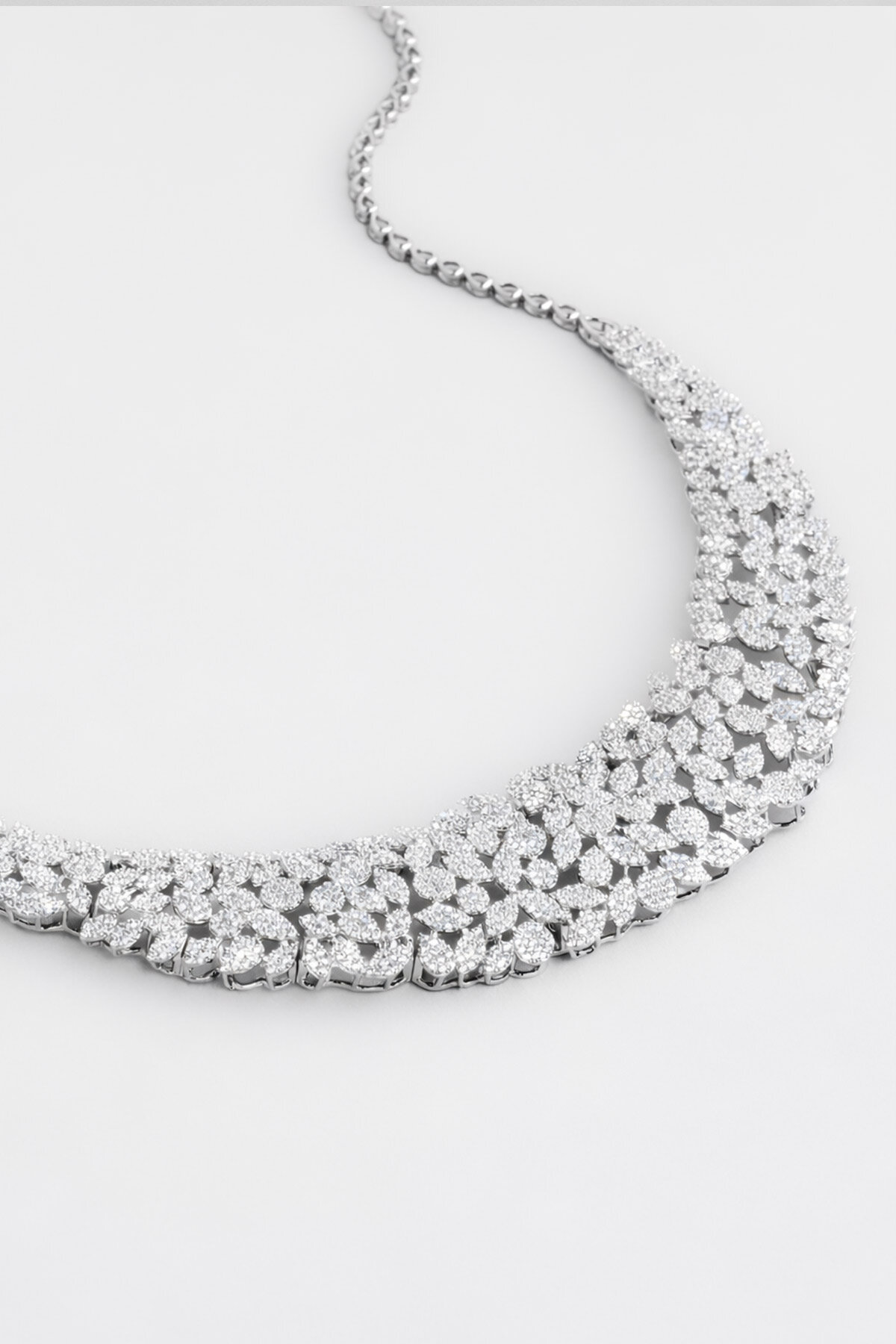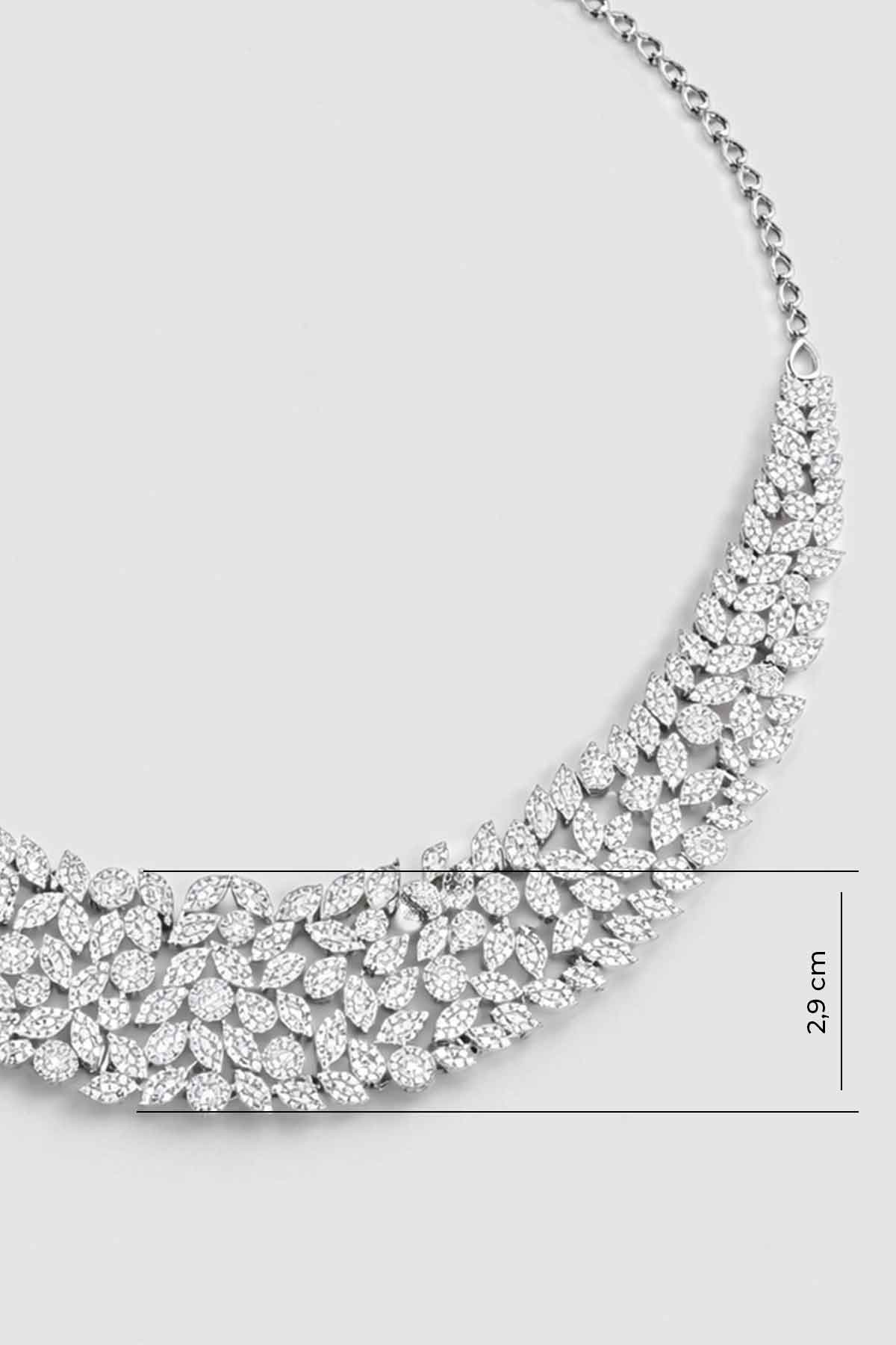 Balo Şıklığı 18 Ayar Beyaz Altın Kaplama Gümüş Tasarım Gerdanlık