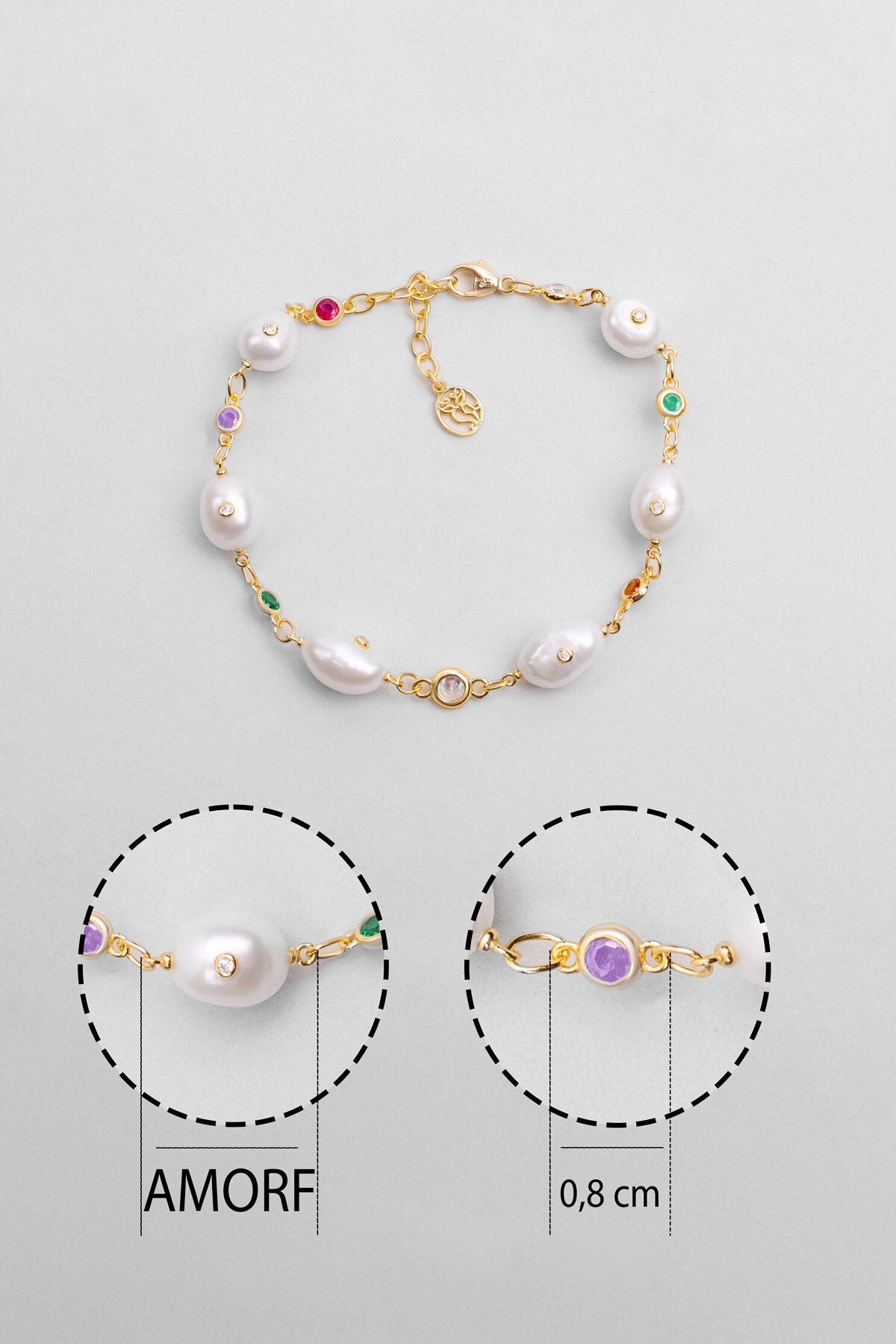 Beatriks 18 Ayar Sarı Altın Kaplama 20 Cm Gümüş İnci Bileklik