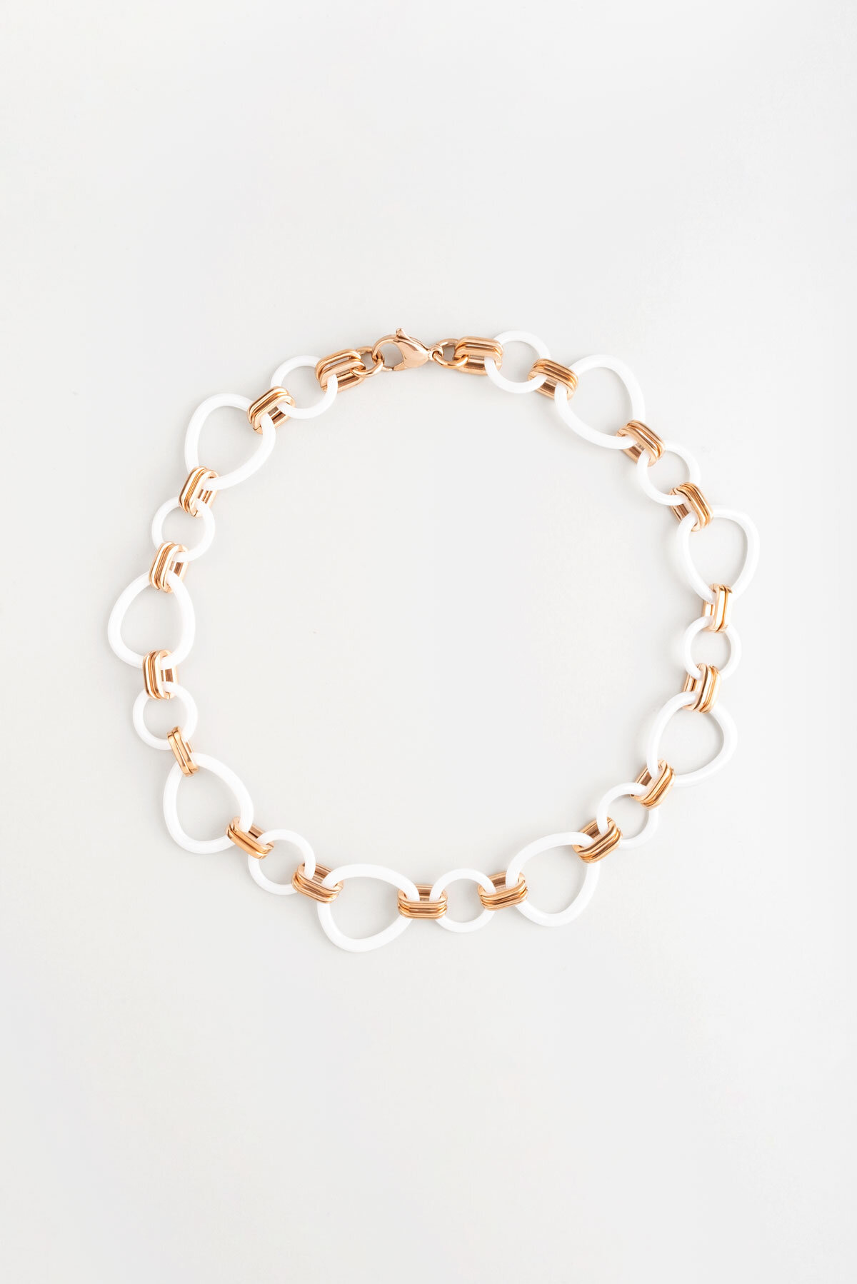 Beyaz Geometrik Halkalı Çelik Kolye