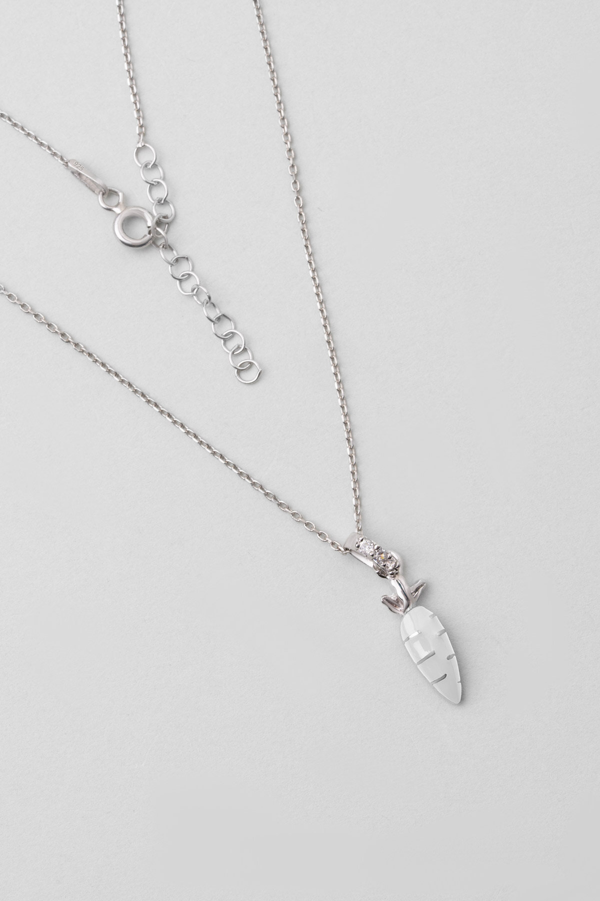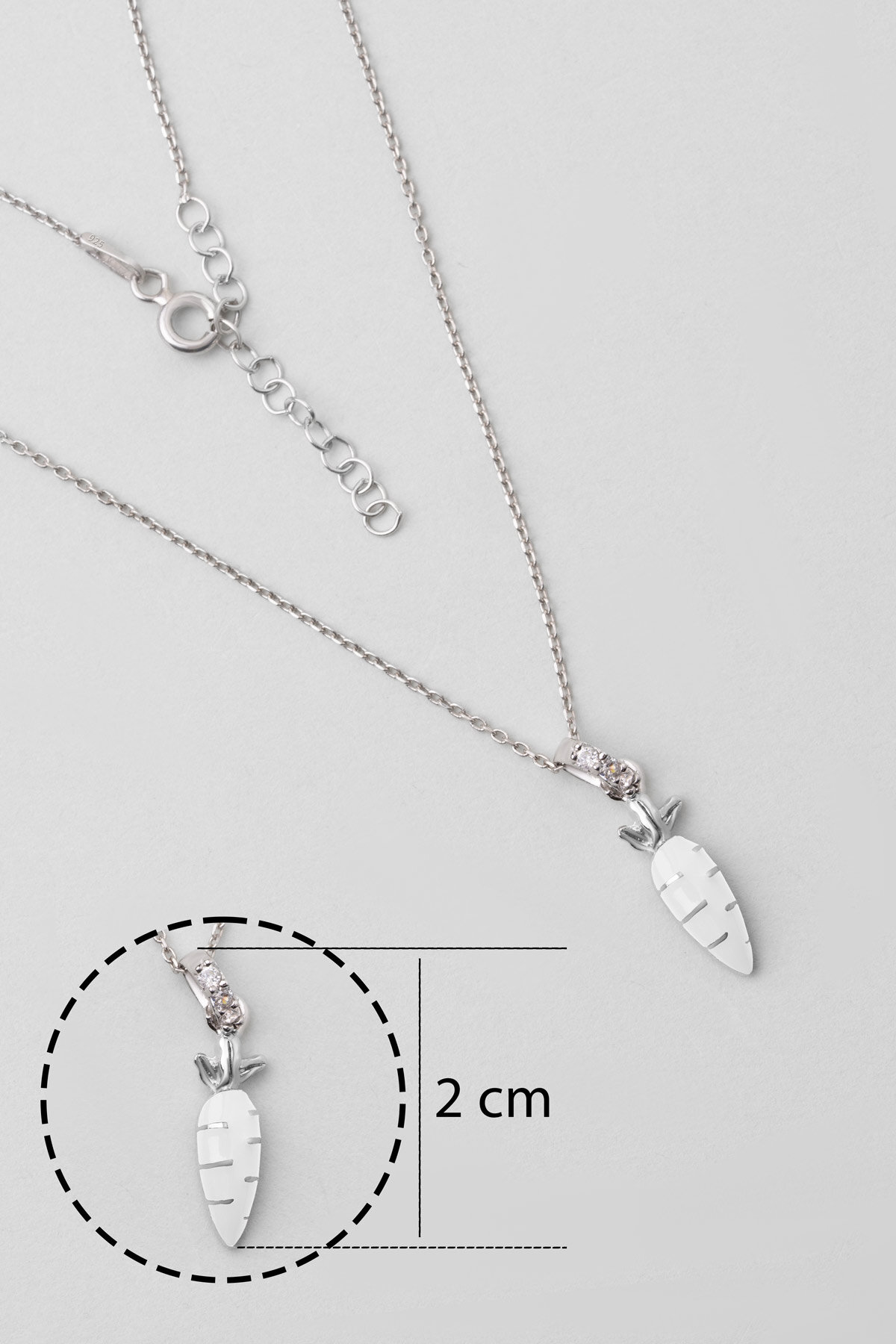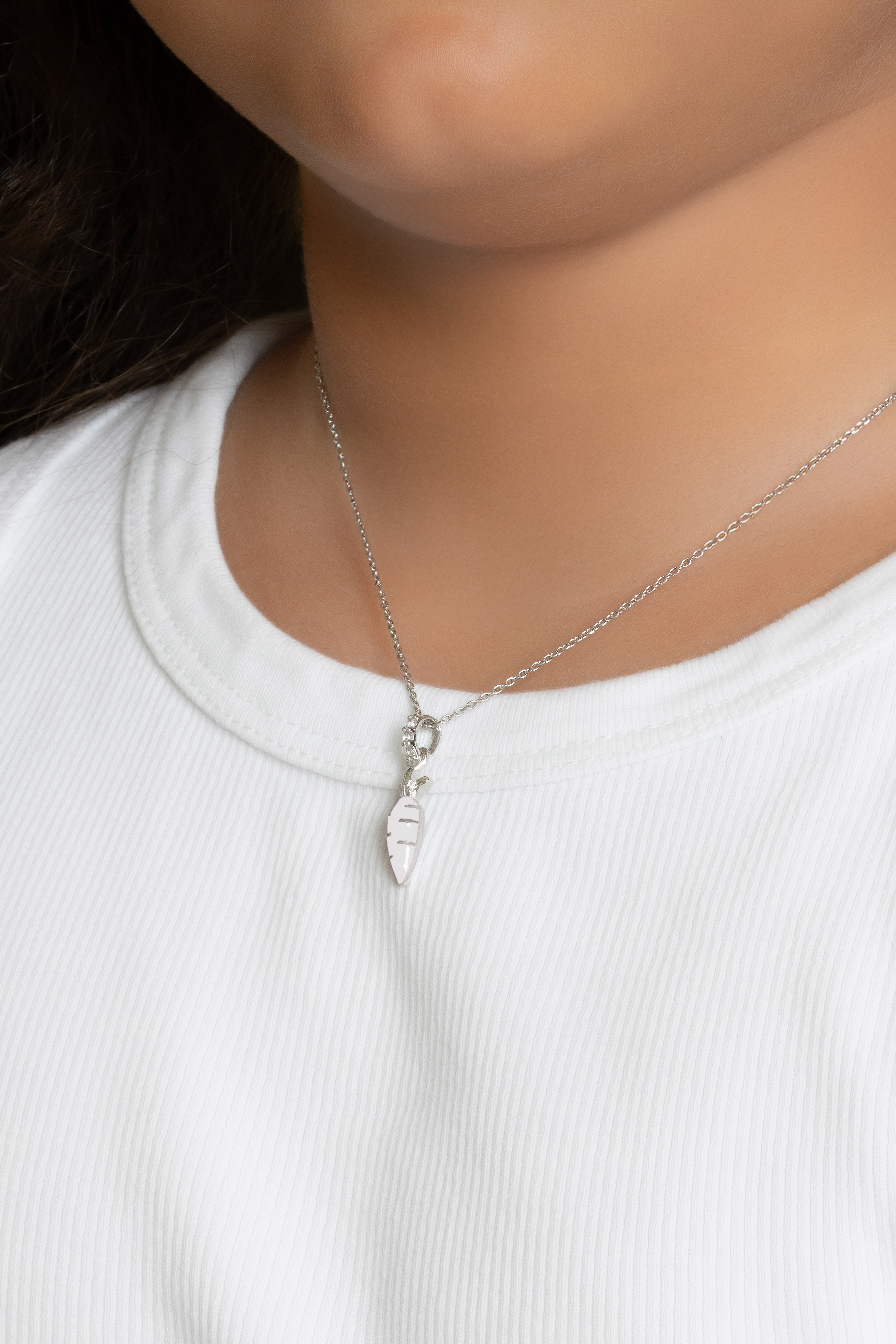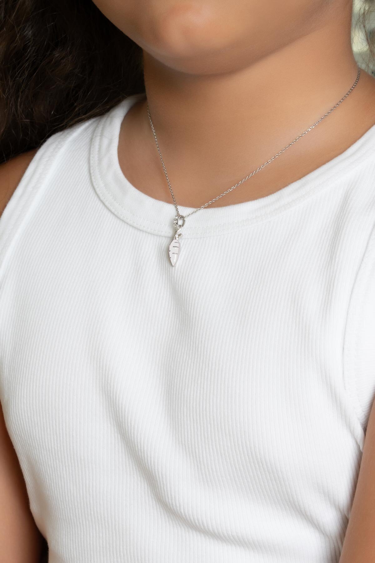 Beyaz Havuç 18 Ayar Beyaz Altın Kaplama Gümüş 33 Cm Çocuk Kolye