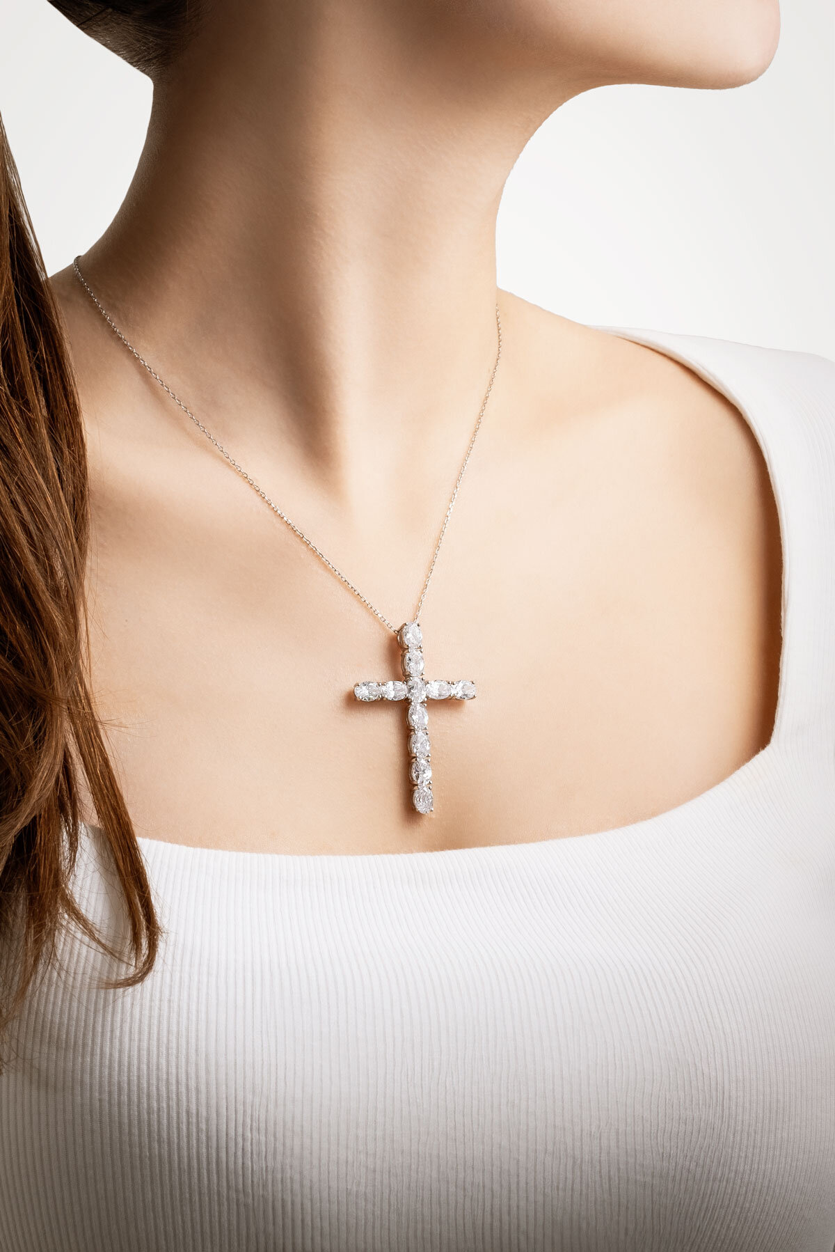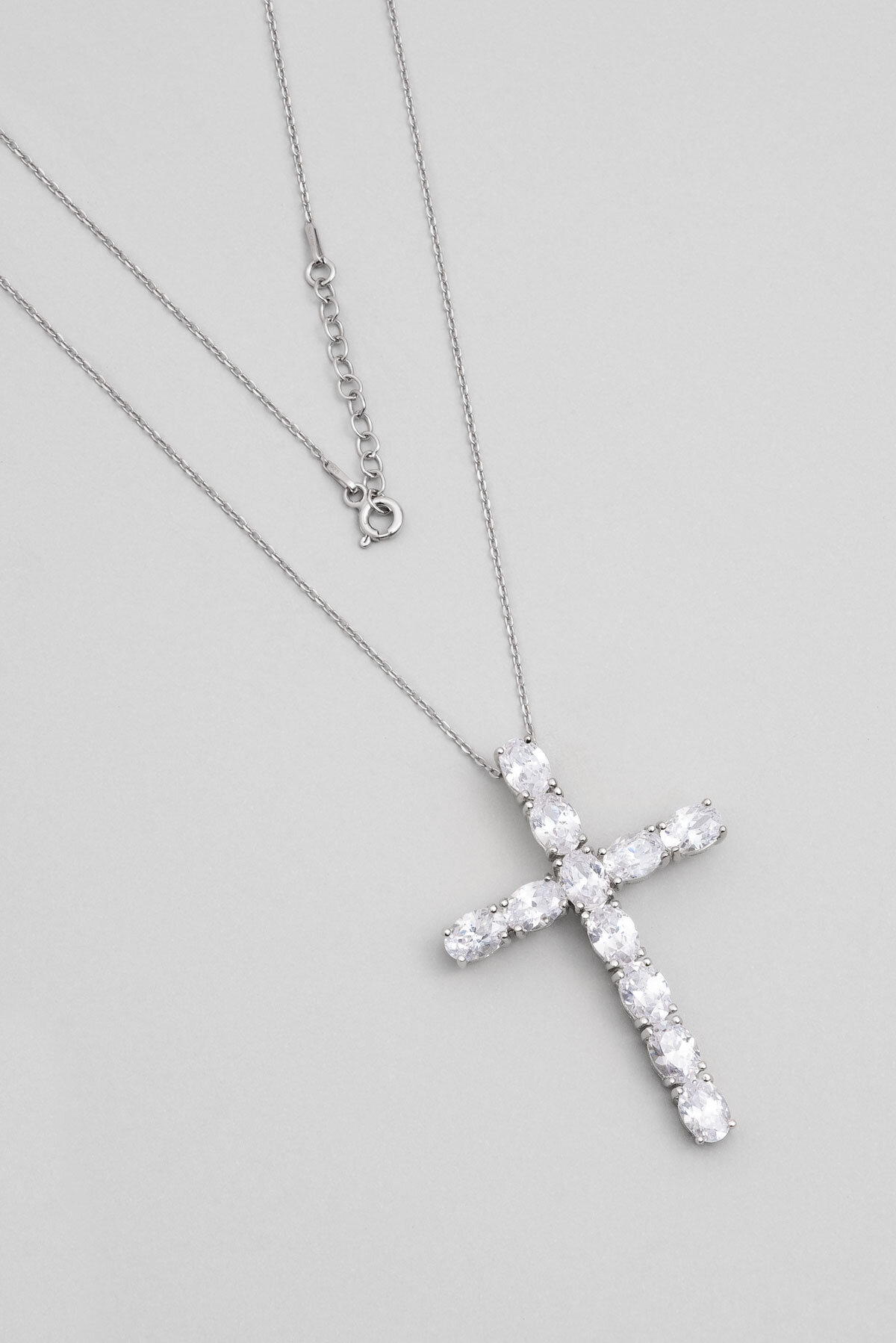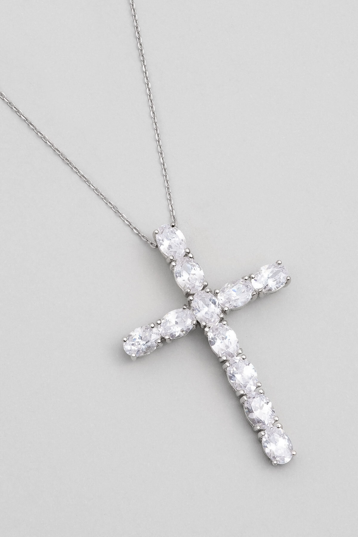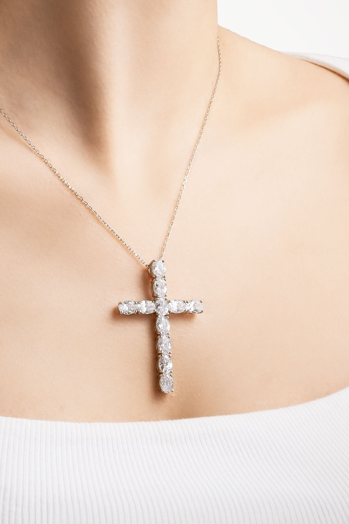 Beyaz Taşlı 18 Ayar Beyaz Altın Kaplama Gümüş Haç Kolye