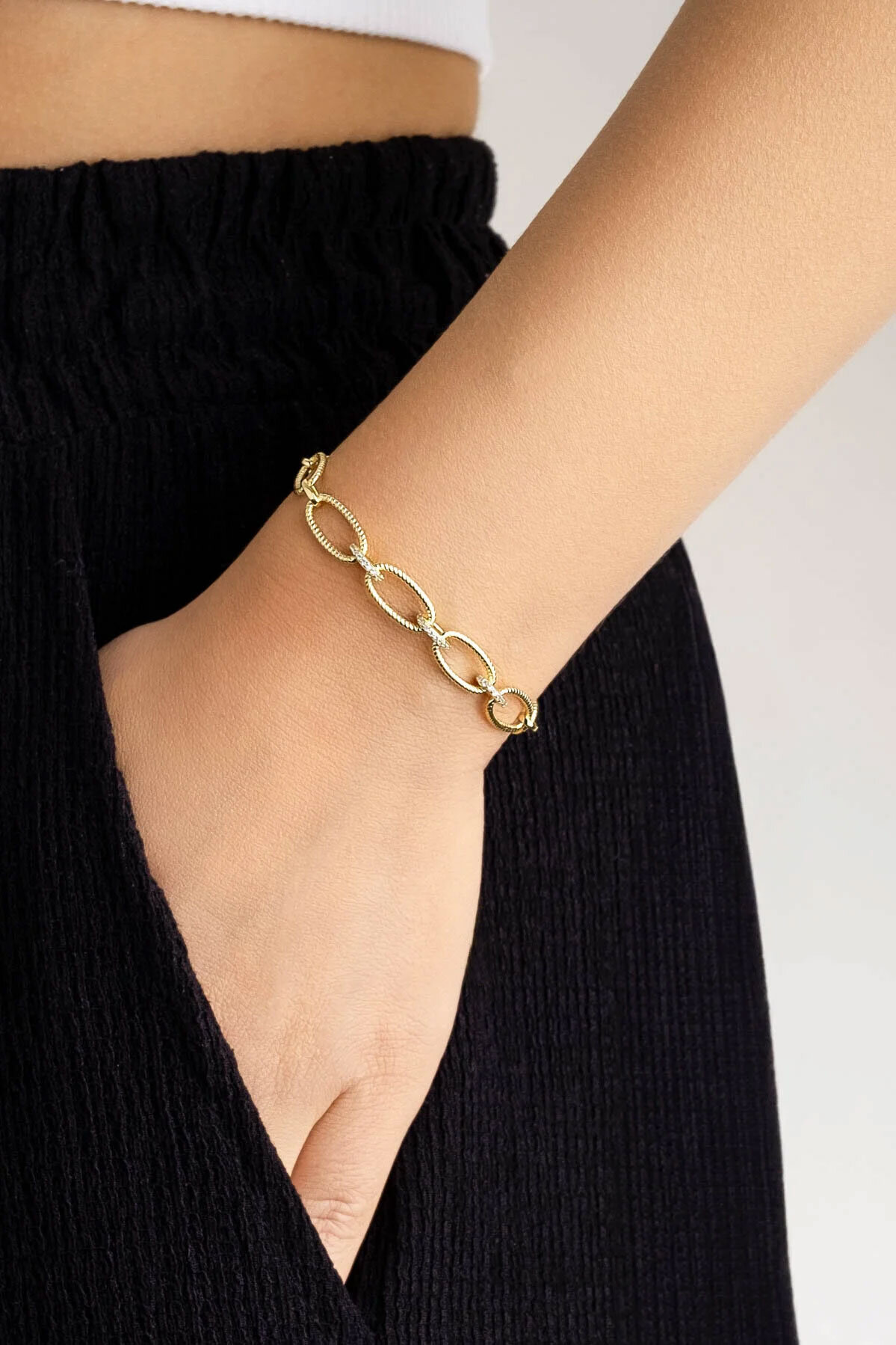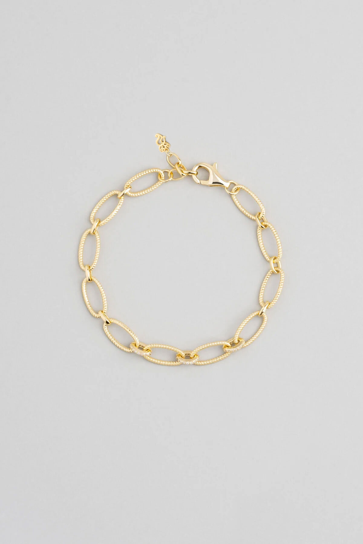 Beyaz Taşlı 18 Ayar Sarı Altın Kaplama 20 Cm Gümüş Zincir Bileklik