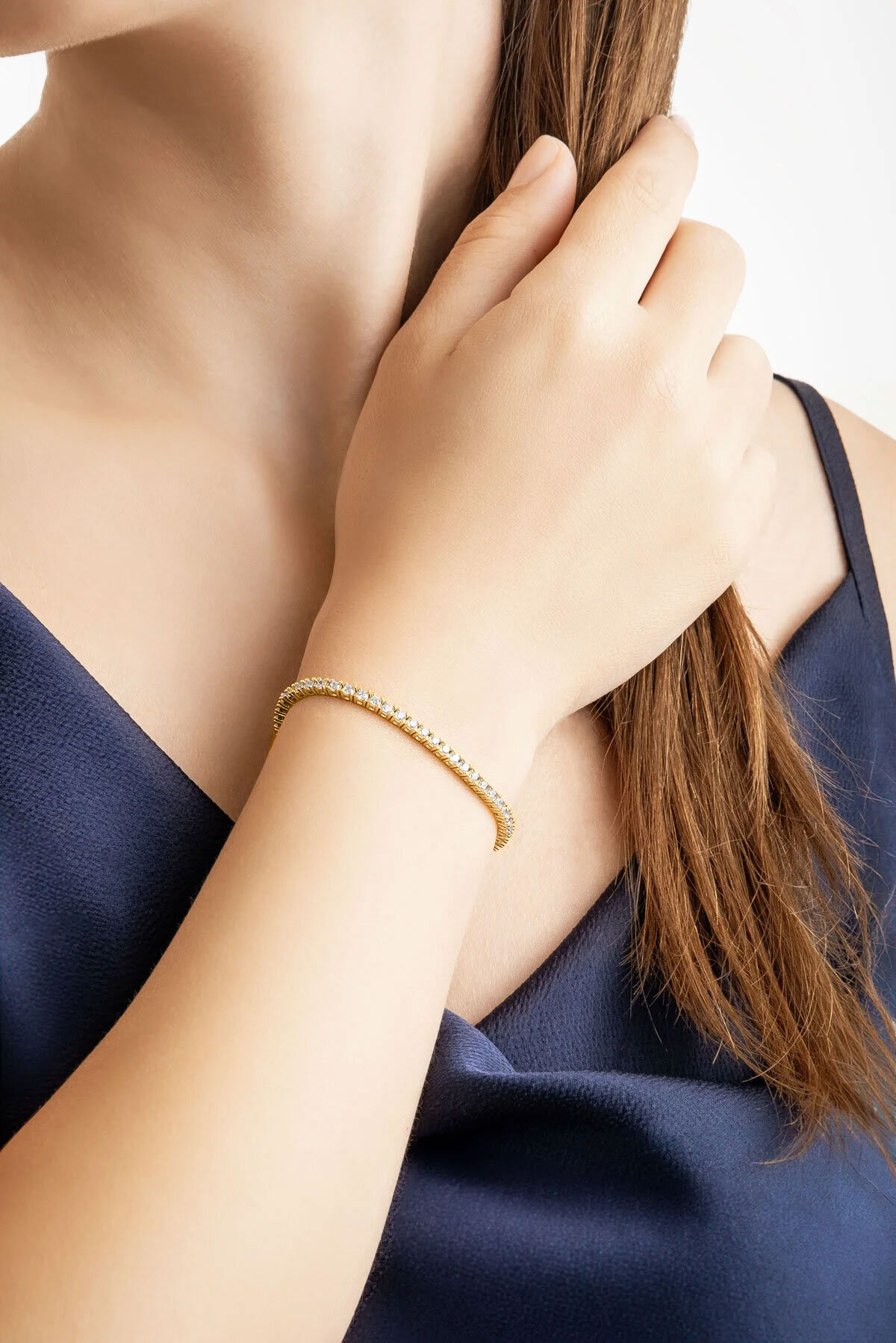 Beyaz Taşlı 18 Ayar Sarı Altın Kaplama Gümüş Su Yolu Bileklik