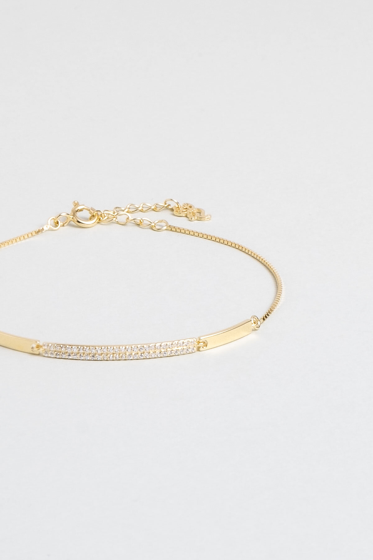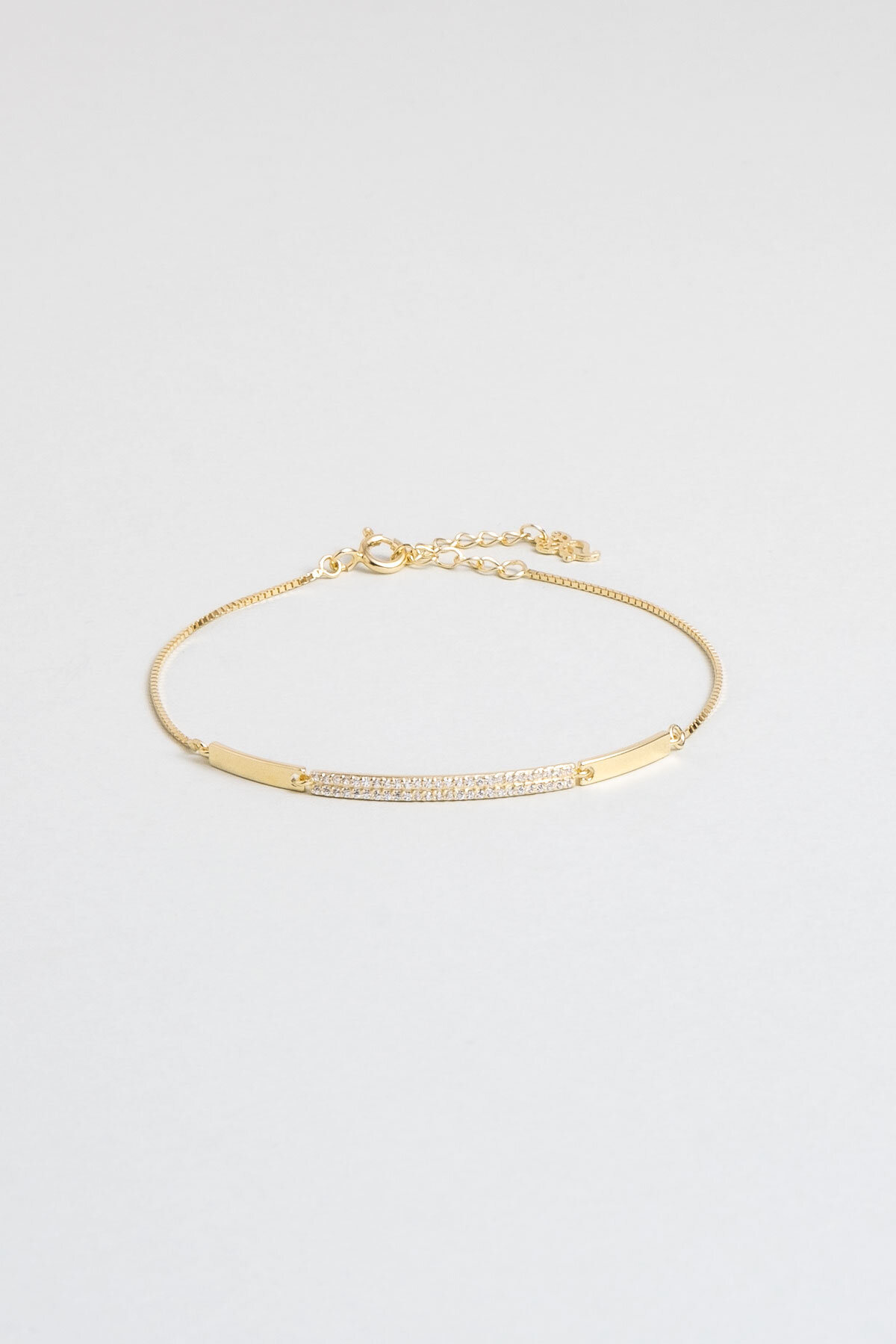 Beyaz Taşlı Sarı Altın Kaplama 20 Cm Gümüş Minimal Bileklik