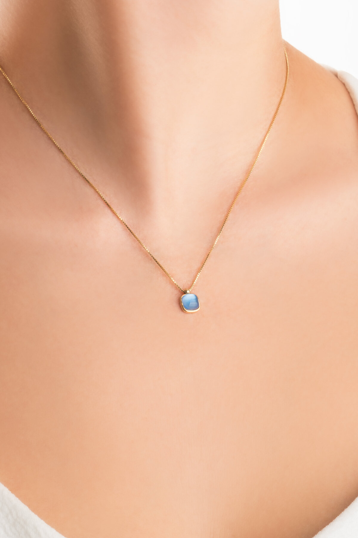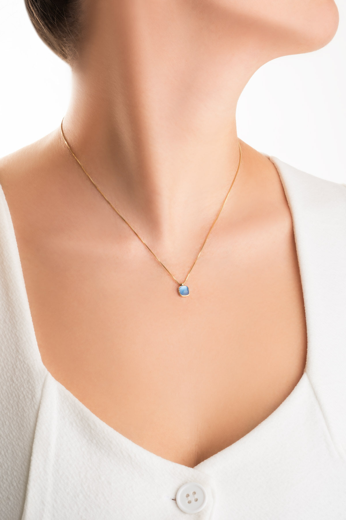 Büyülü Renkler 18 Ayar Sarı Altın Kaplama 44 Cm Gümüş Tektaş Kolye