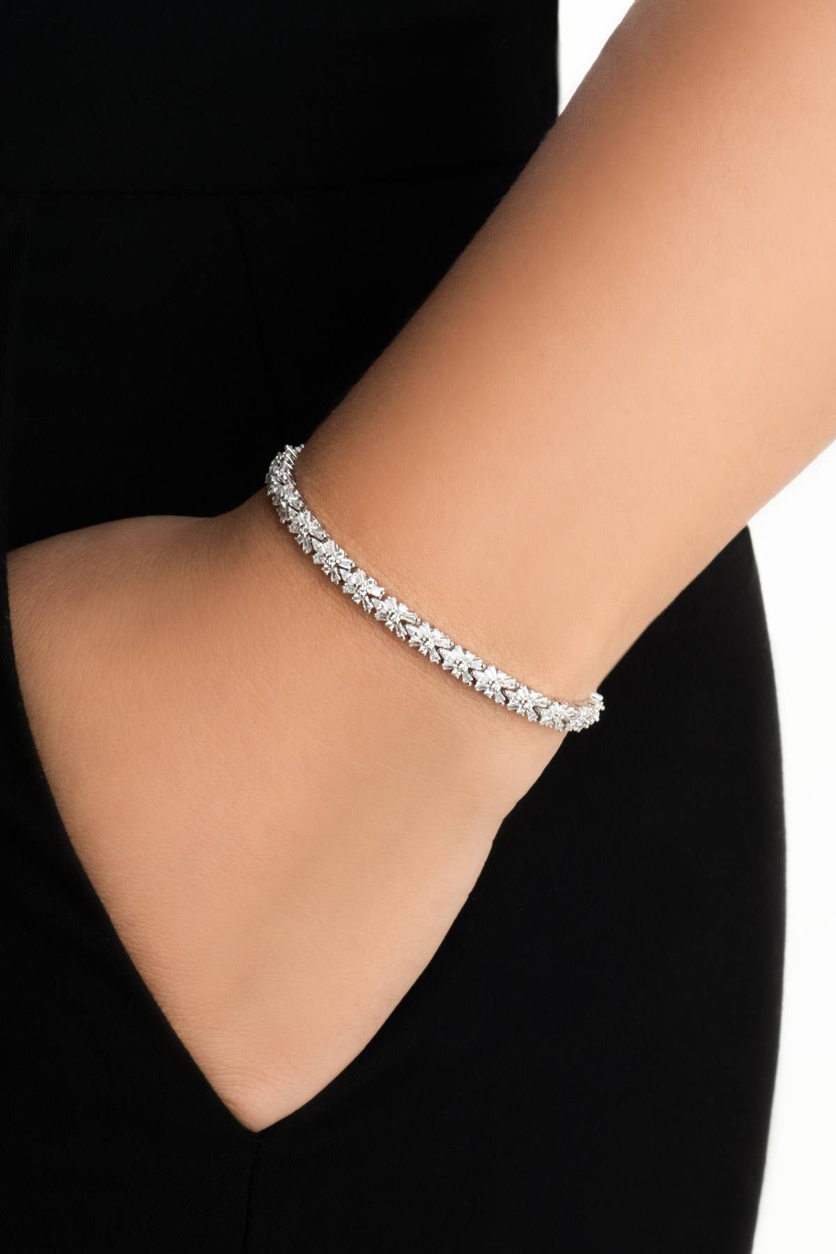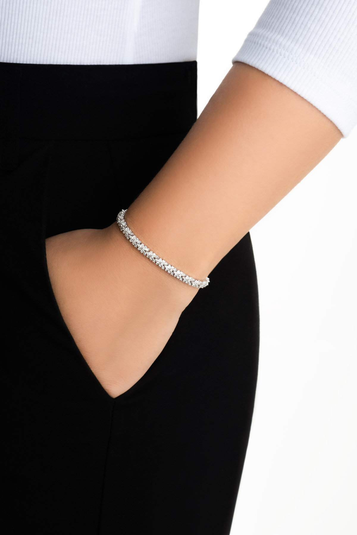 Camellia bileklik, çiçek formundaki trapez taşlarıyla zarif bir şıklık sunar. İnce detayları ve ışıltısı, stilinize sofistike bir dokunuş katarken, bilekliğin çiçek formu her anınıza feminen ve göz alıcı bir hava katar.