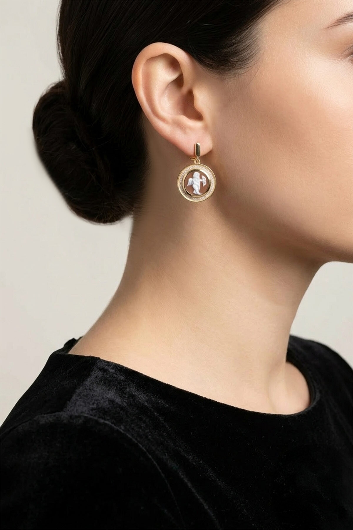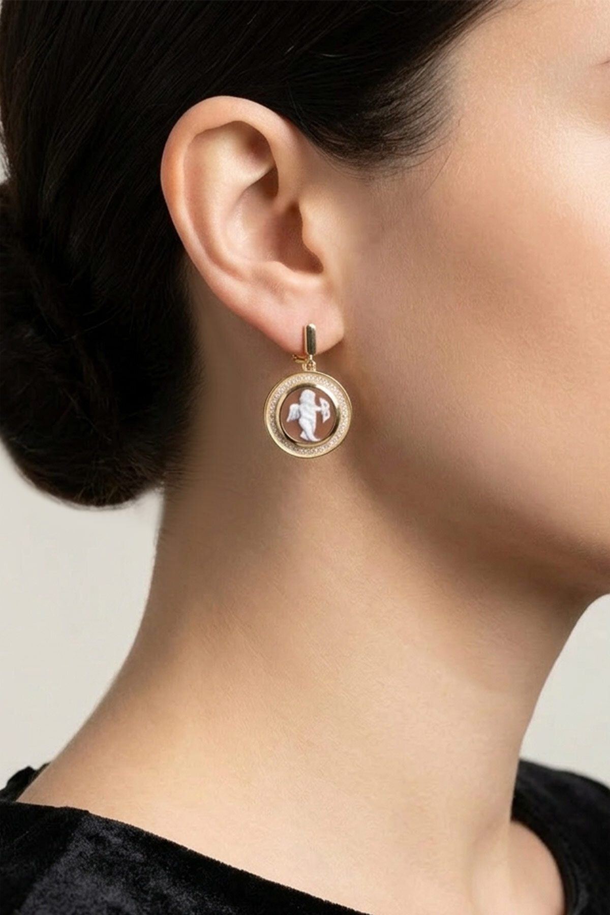 Cameo Italiano 18 Ayar Sarı Altın Kaplama Gümüş Küpe