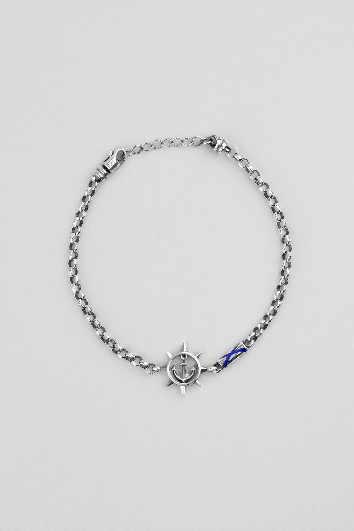 Çapa ve Dümen Figürlü 22 Cm Gümüş Erkek Bileklik