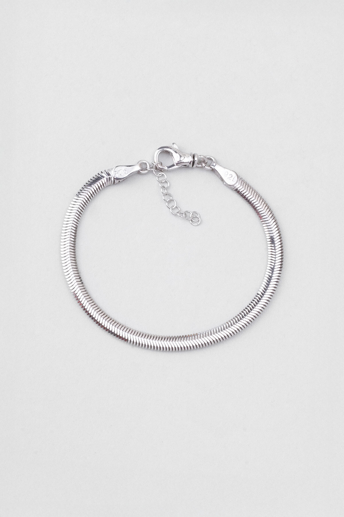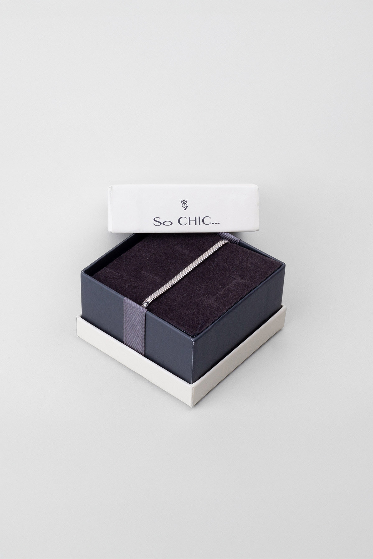 Cashmere Balık Sırtı Bileklik, balık sırtı dokusunun akıcı çizgilerini cashmere yumuşaklığını anımsatan zarif bir parlaklıkla buluşturur. Zamansız tasarımıyla günlük şıklığı tamamlar, tek başına ya da katmanlı kullanıma uyum sağlar.