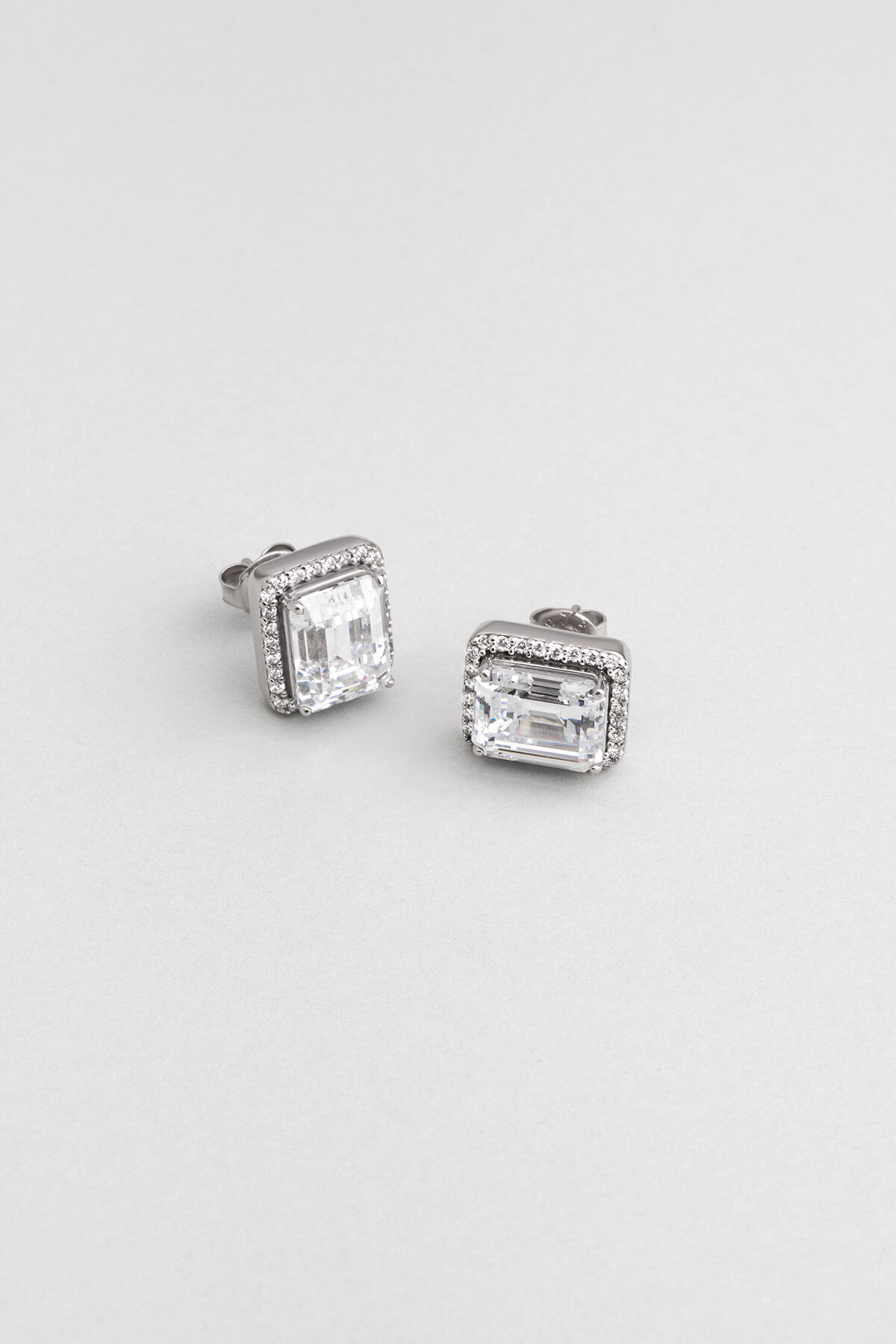 Creative 18 Ayar Beyaz Altın Kaplama Gümüş Baget Küpe