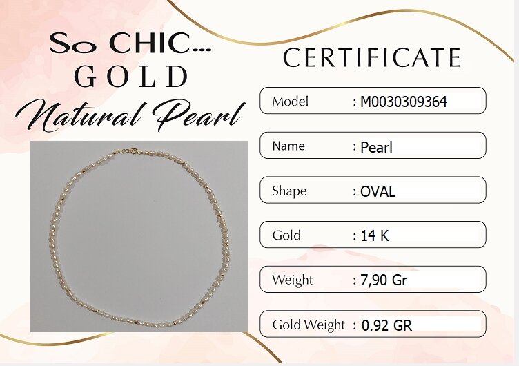 Doğal İnci Taşlı 43 Cm 14 Ayar Altın Kolye