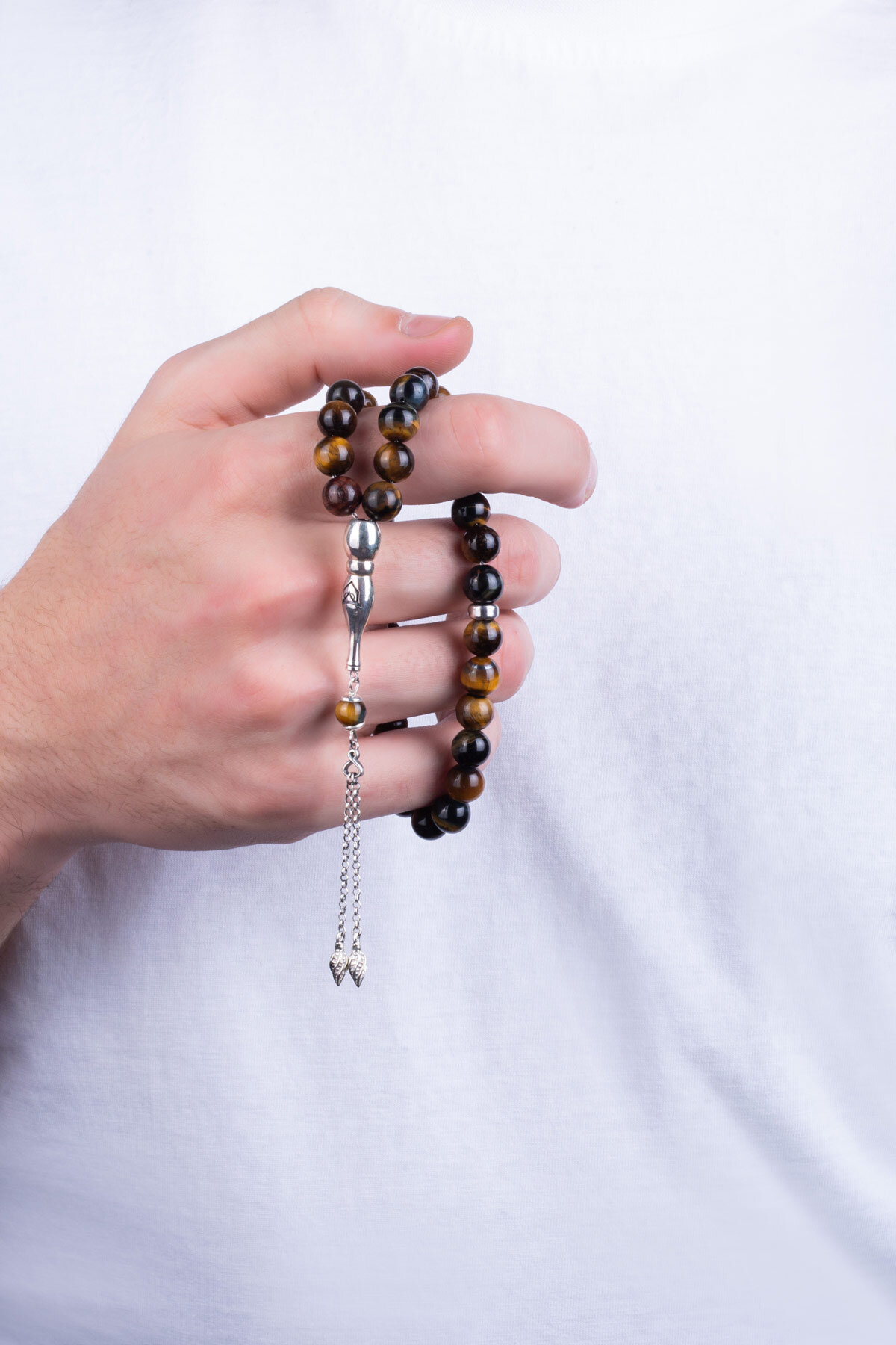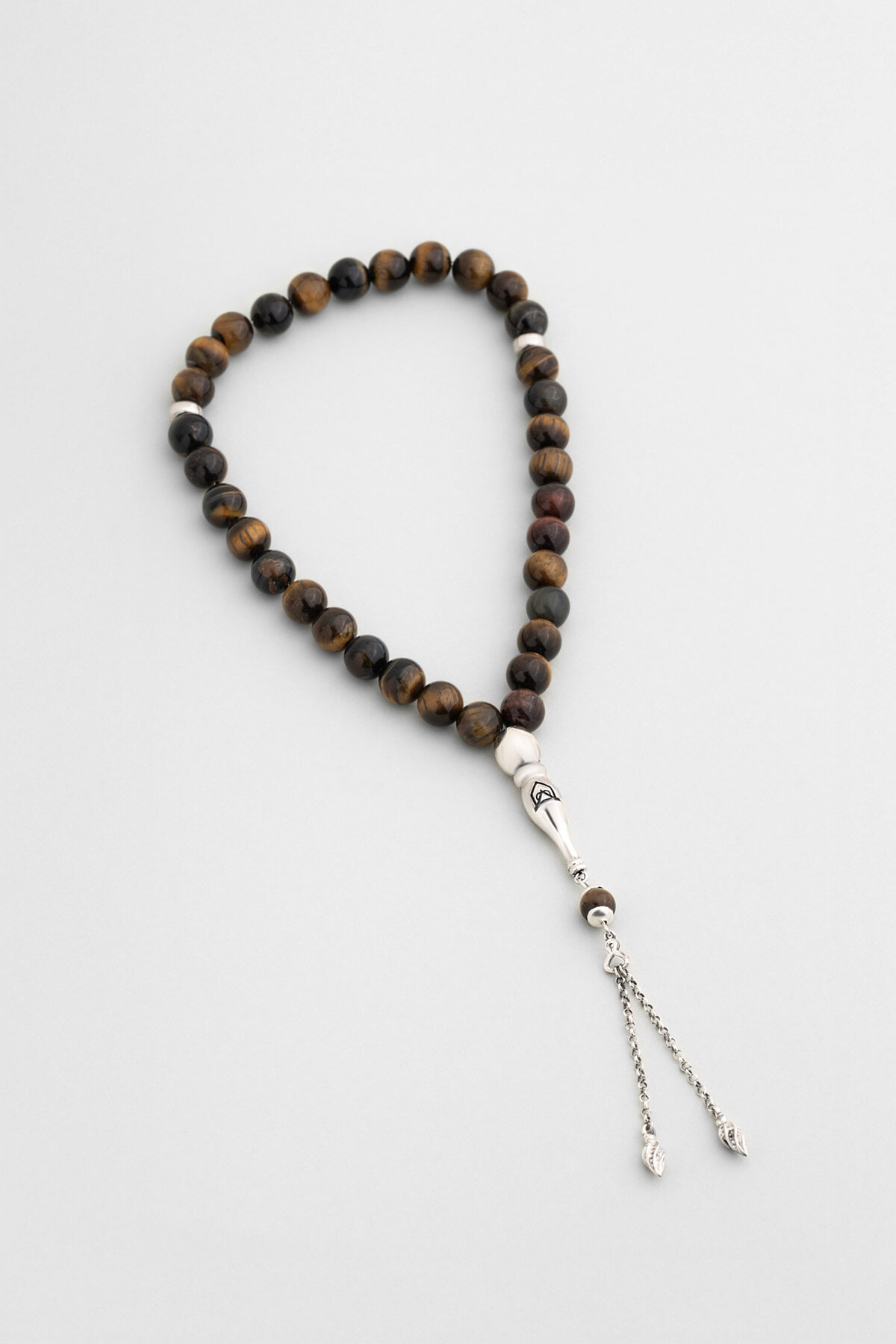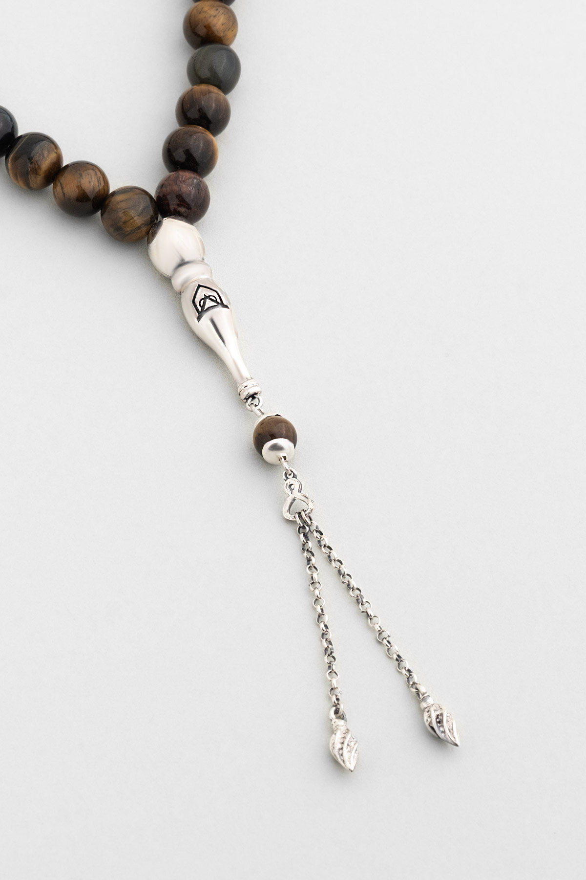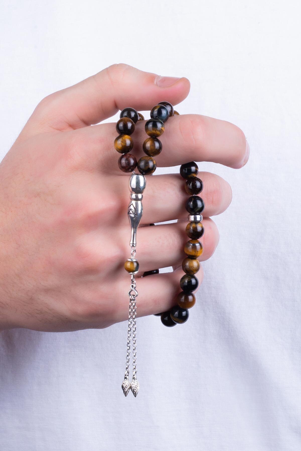 Doğal Kaplan Gözü Taşlı 24 Cm Gümüş Tesbih