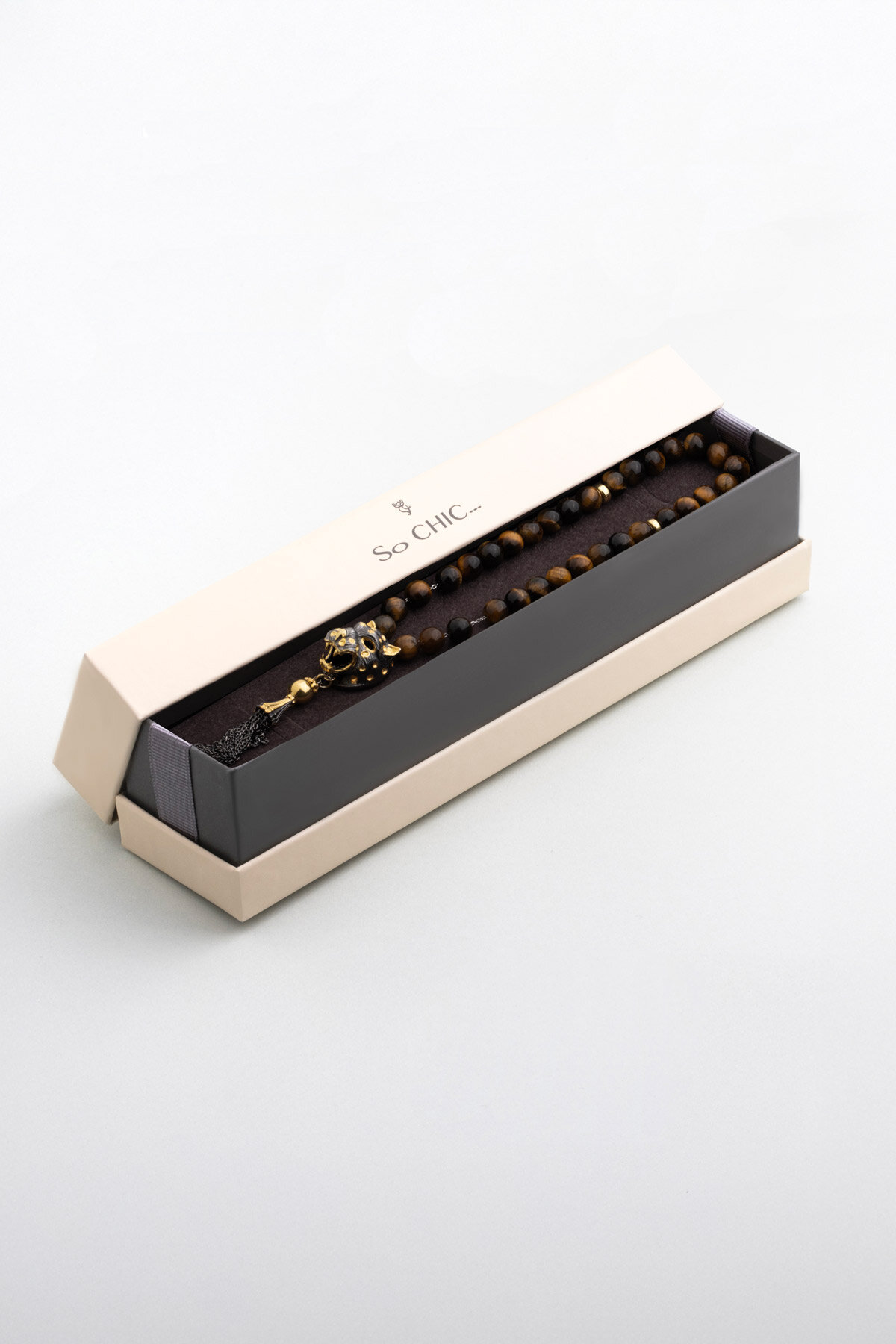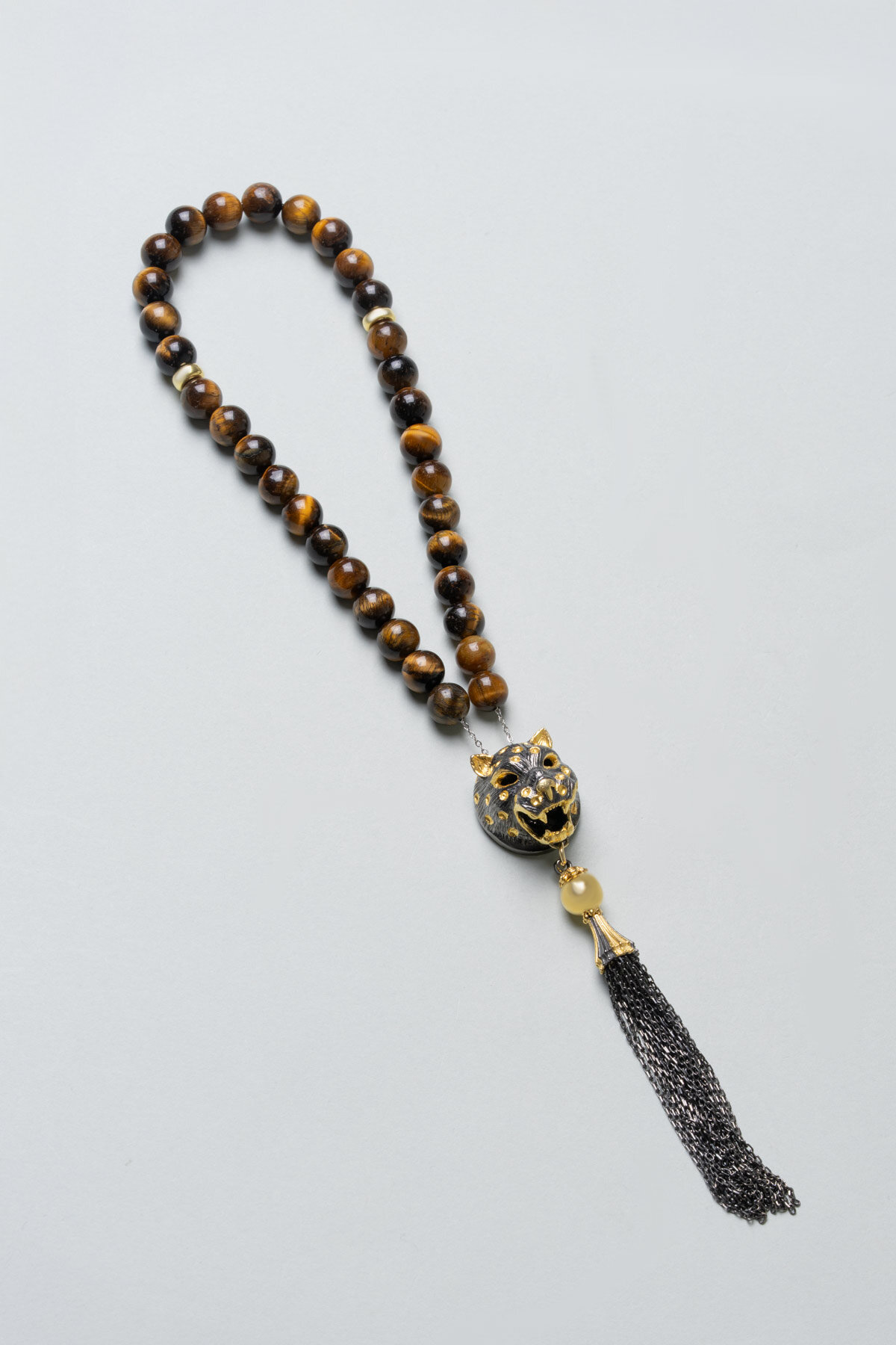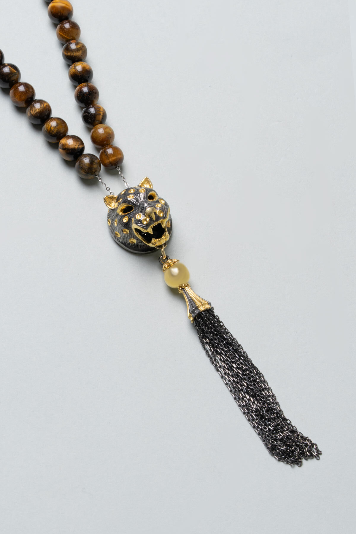 Doğal Kaplan Gözü Taşlı Siyah Rodyum Kaplama Gümüş 25 Cm Tesbih