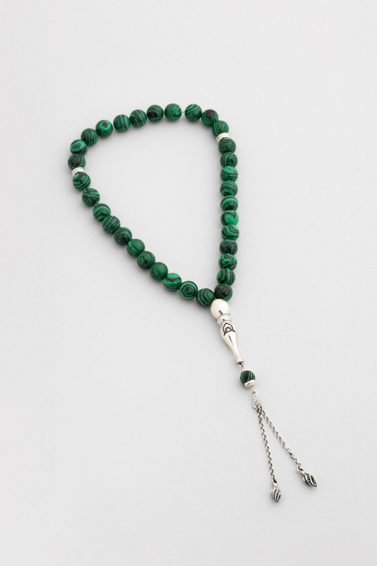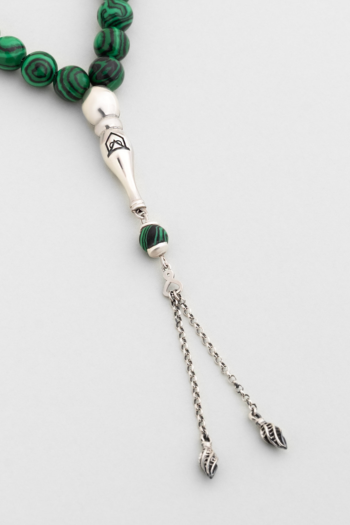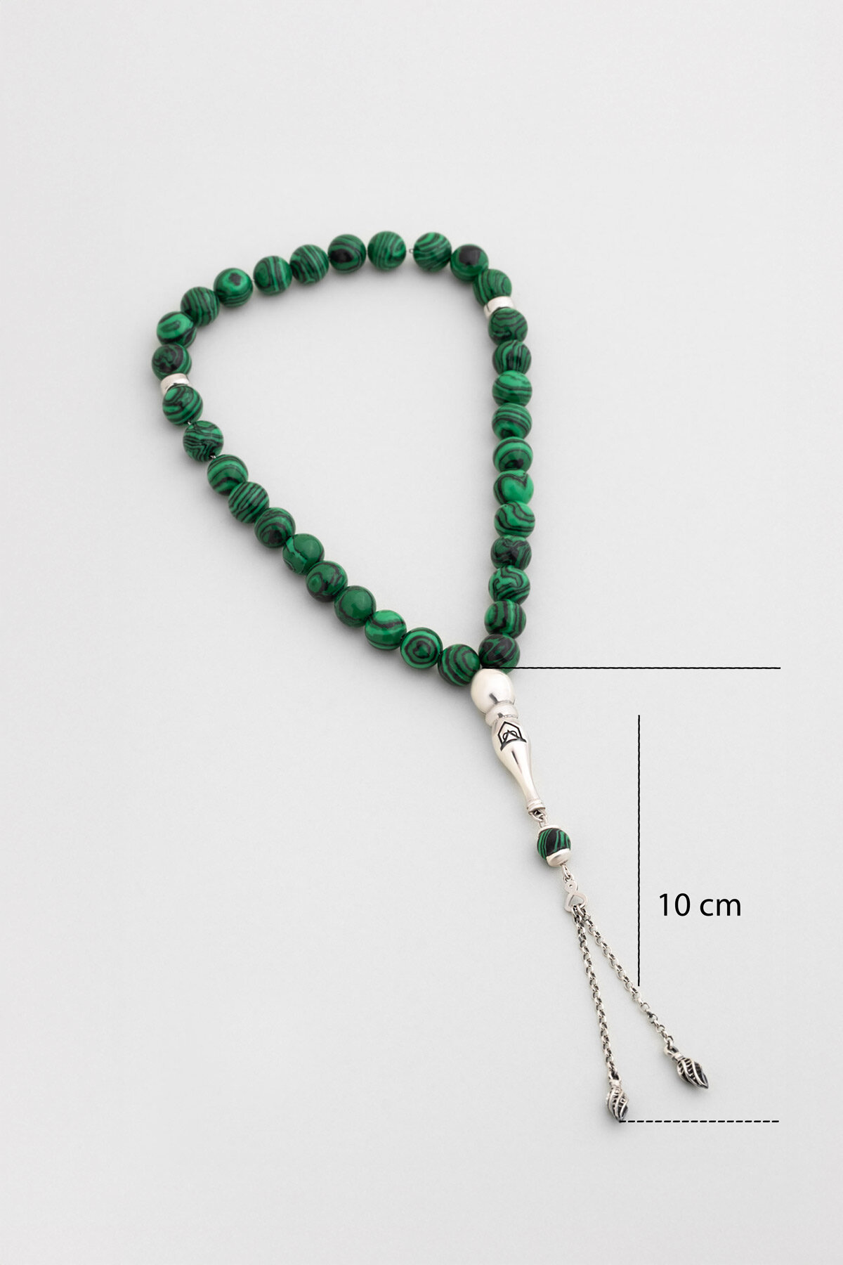 Doğal Malahit Taşlı 23 Cm Gümüş Tesbih
