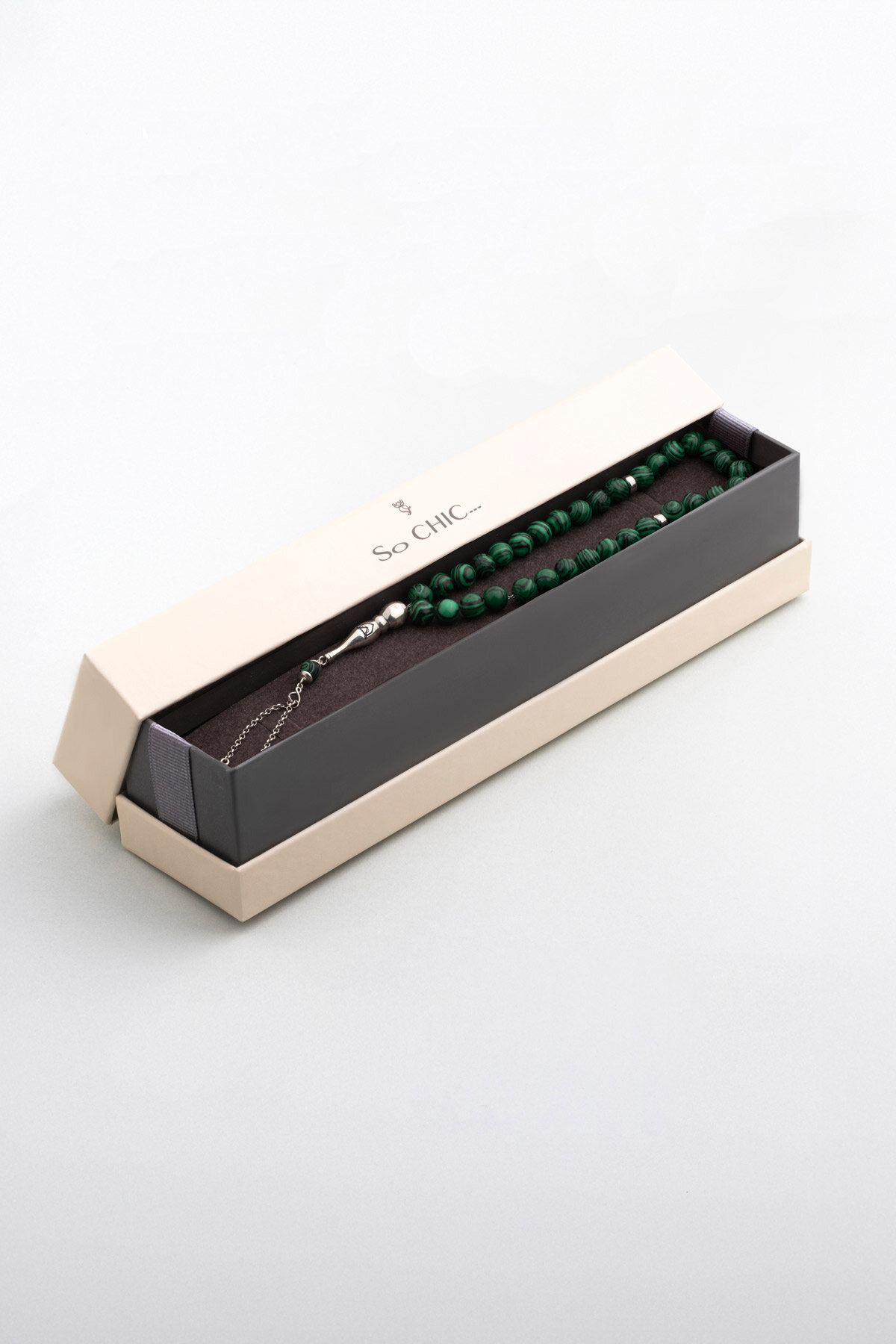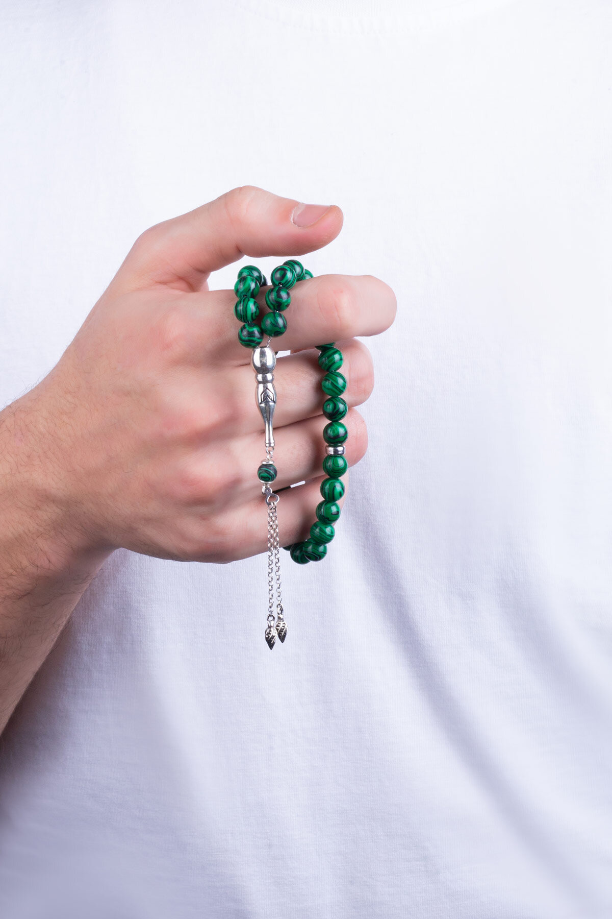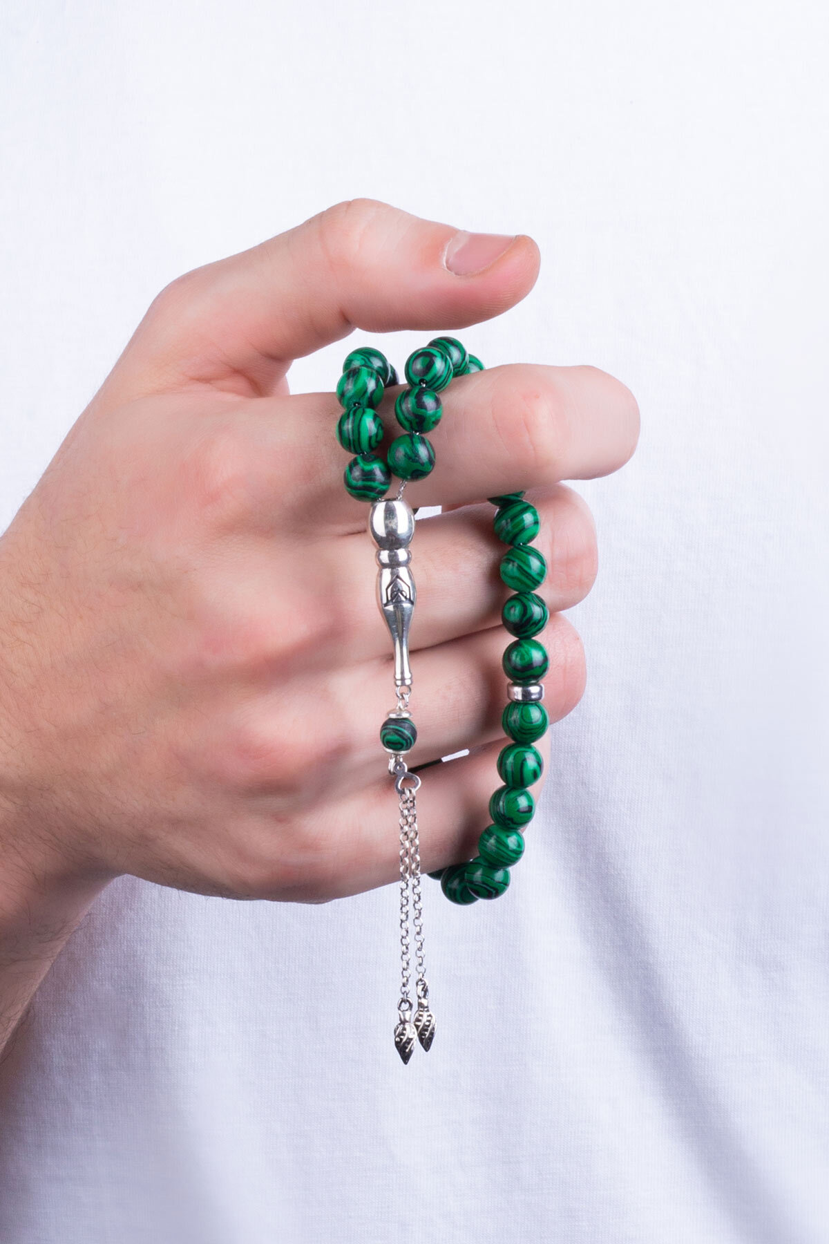Doğal Malahit Taşlı 23 Cm Gümüş Tesbih