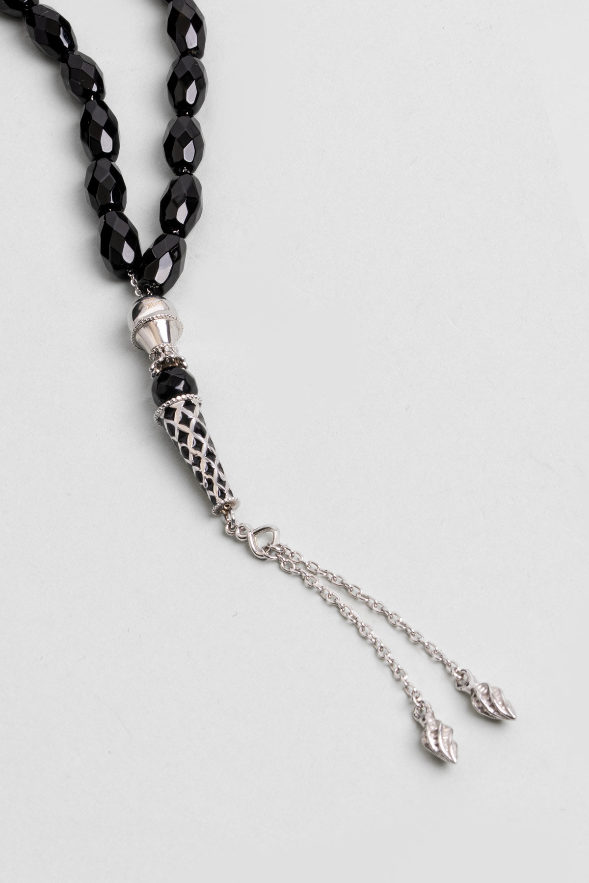 Doğal Oniks Taşlı 24 Cm Gümüş Tesbih