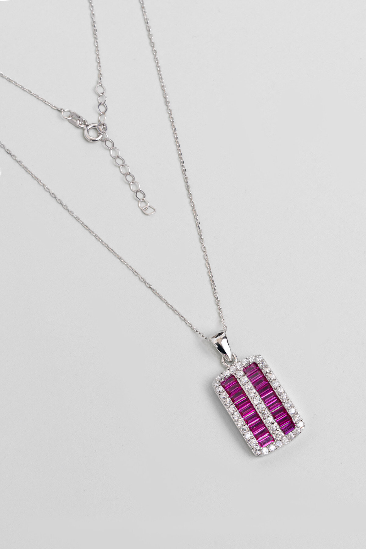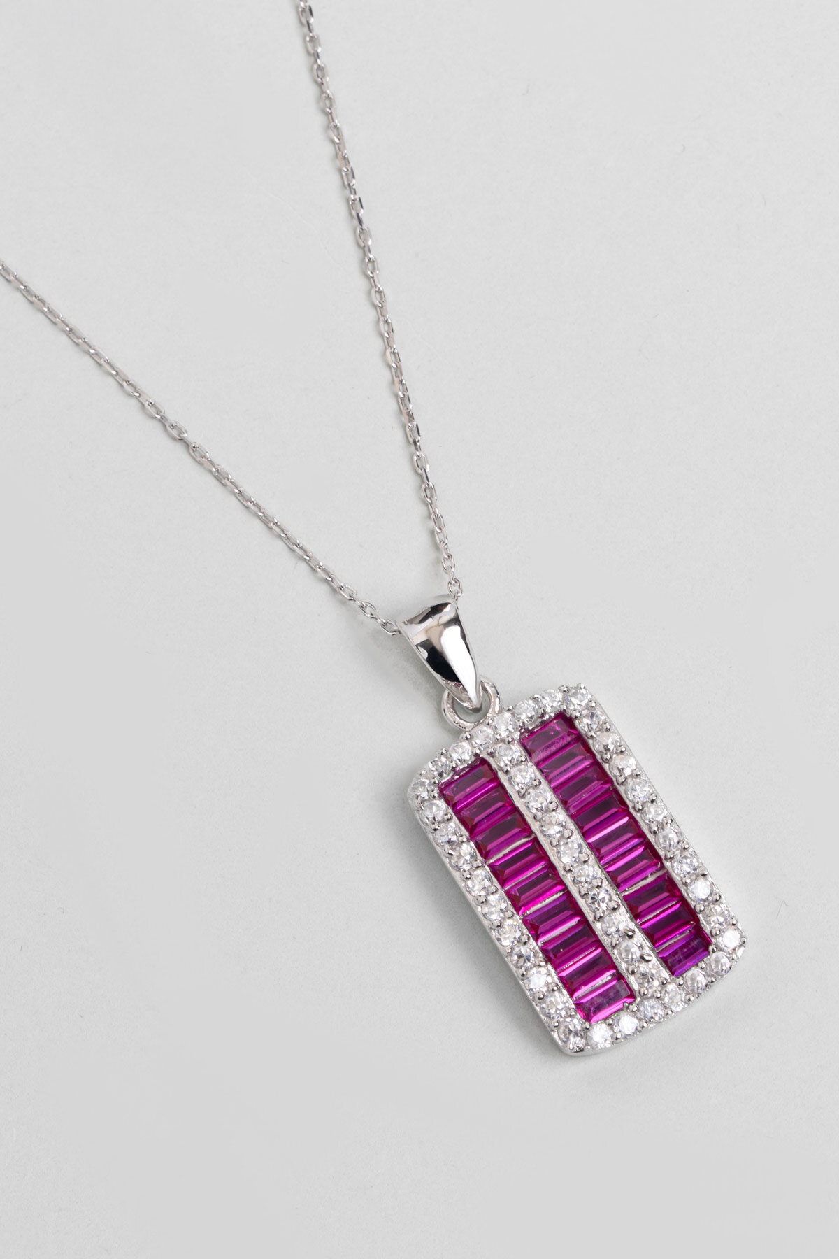 Fuşya Işıltısı 18 Ayar Beyaz Altın Kaplama 43 Cm Gümüş Kolye