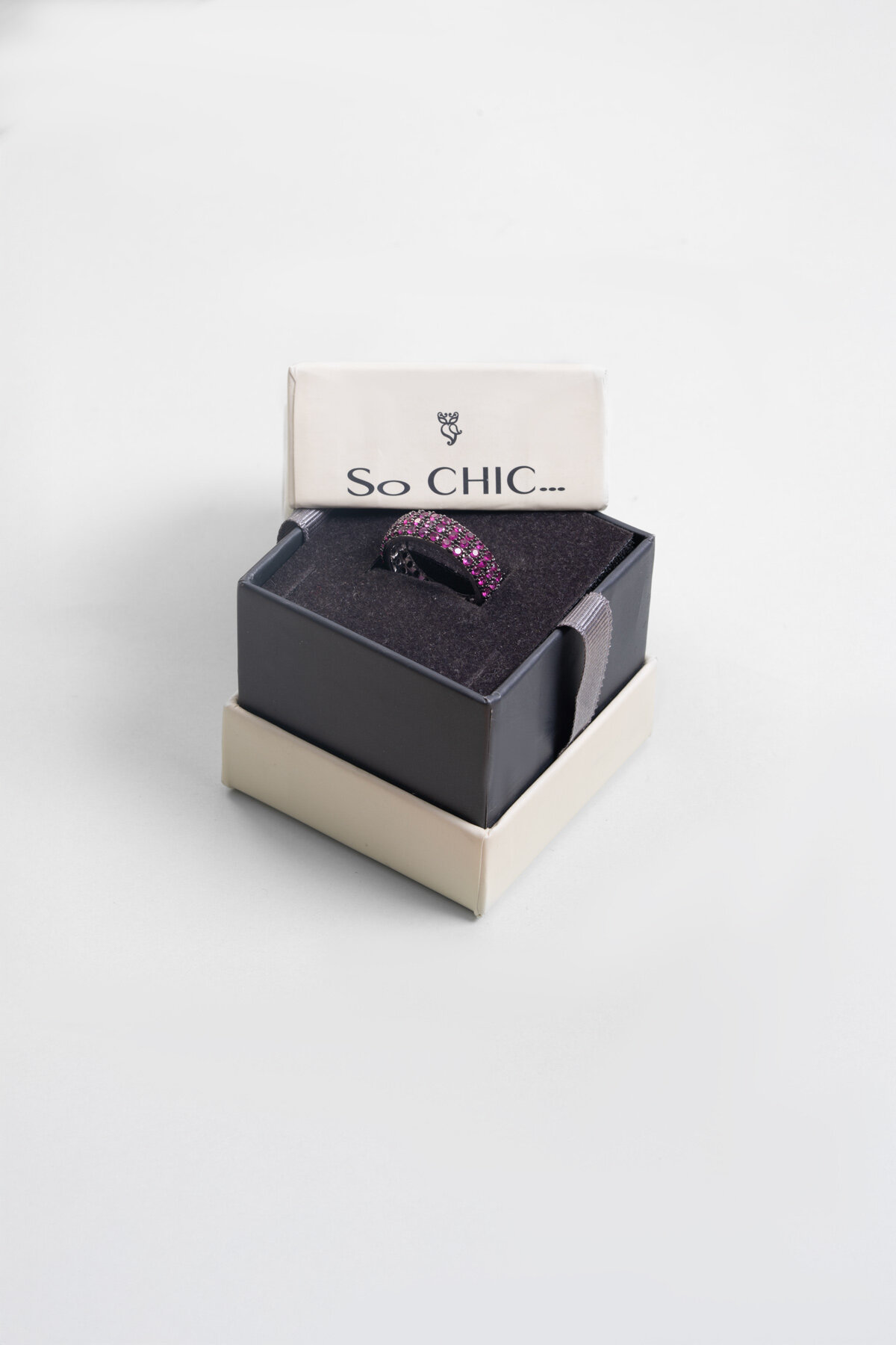Fuşya Taşlı Beyaz Altın Kaplama