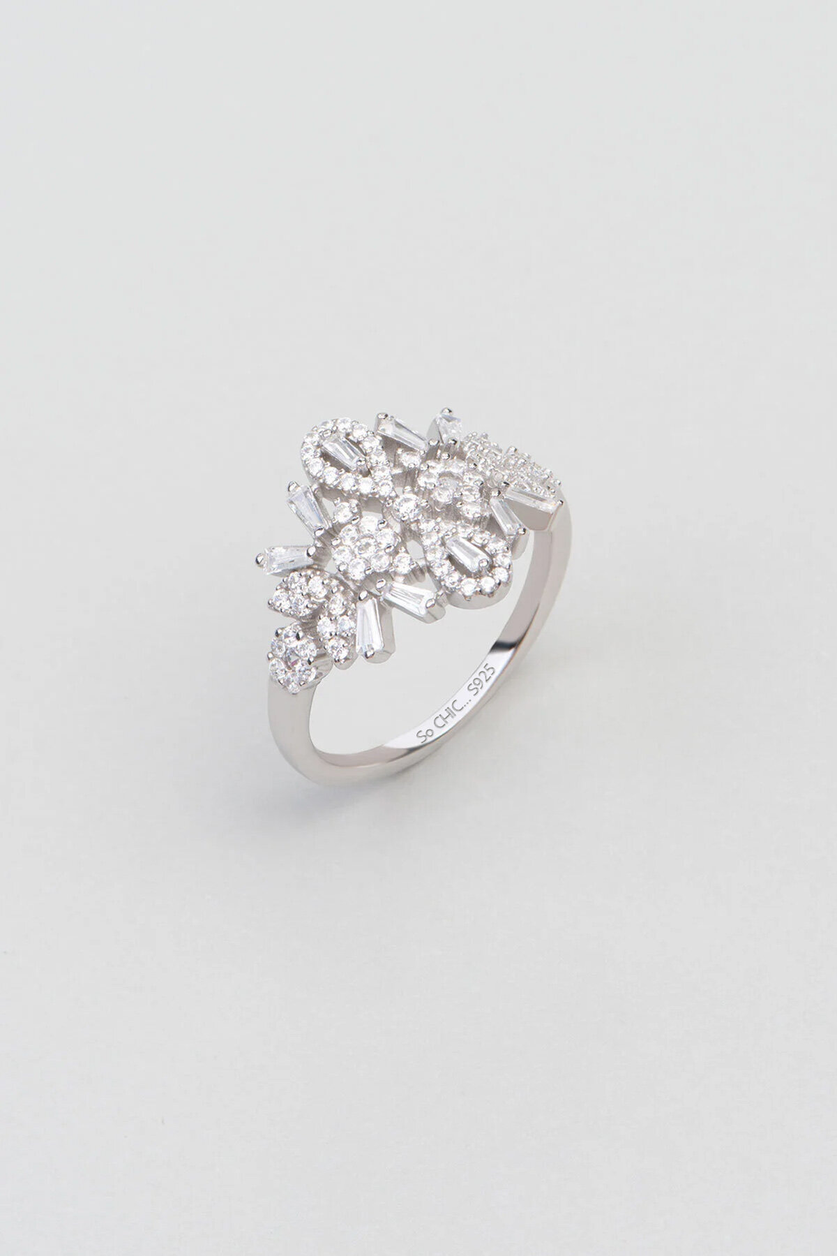 Gelin Çiçeği 18 Ayar Beyaz Altın Kaplama Gümüş Yüzük