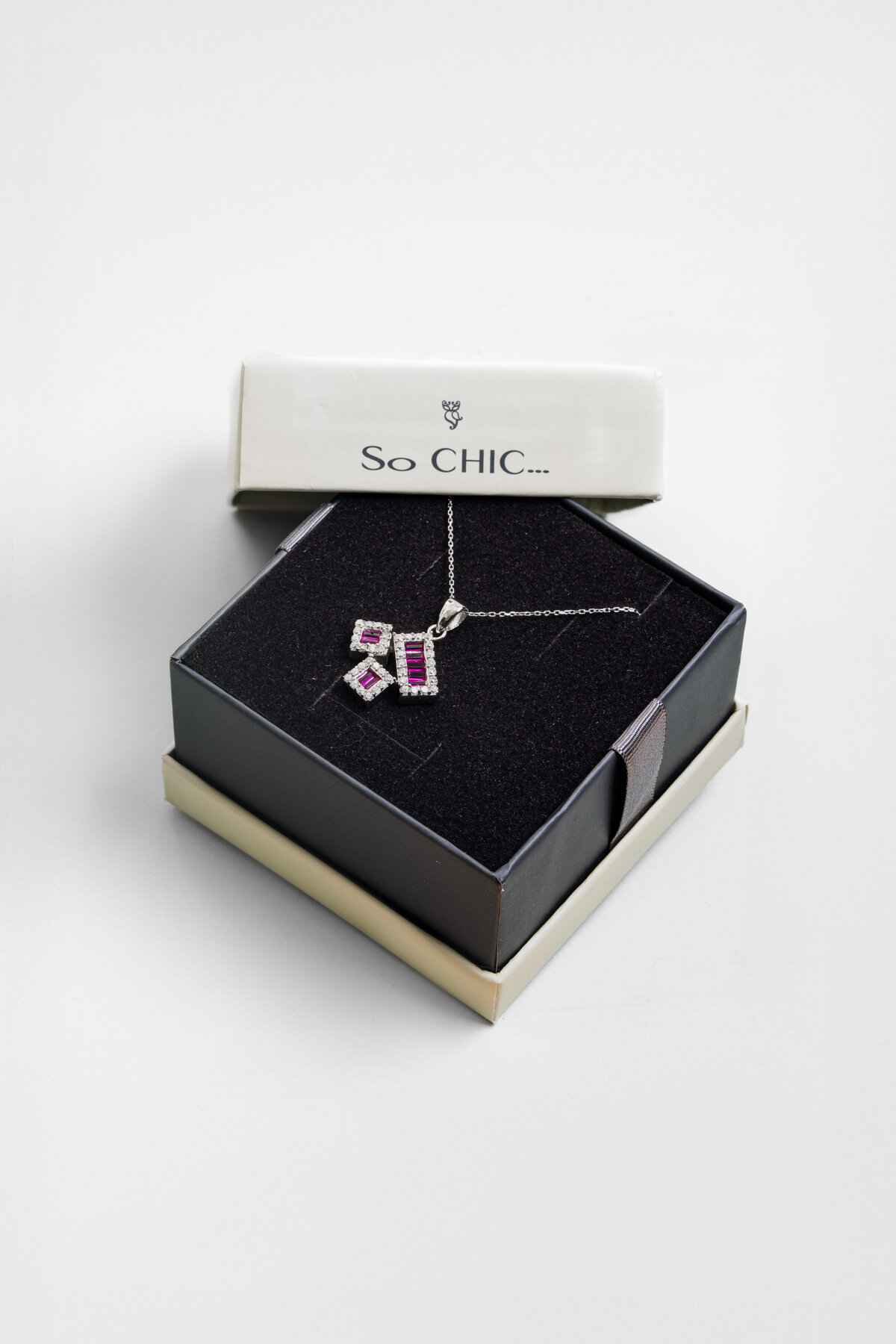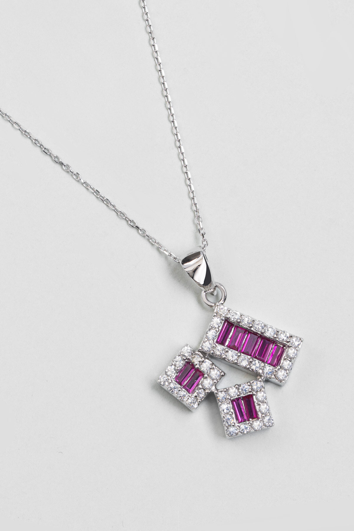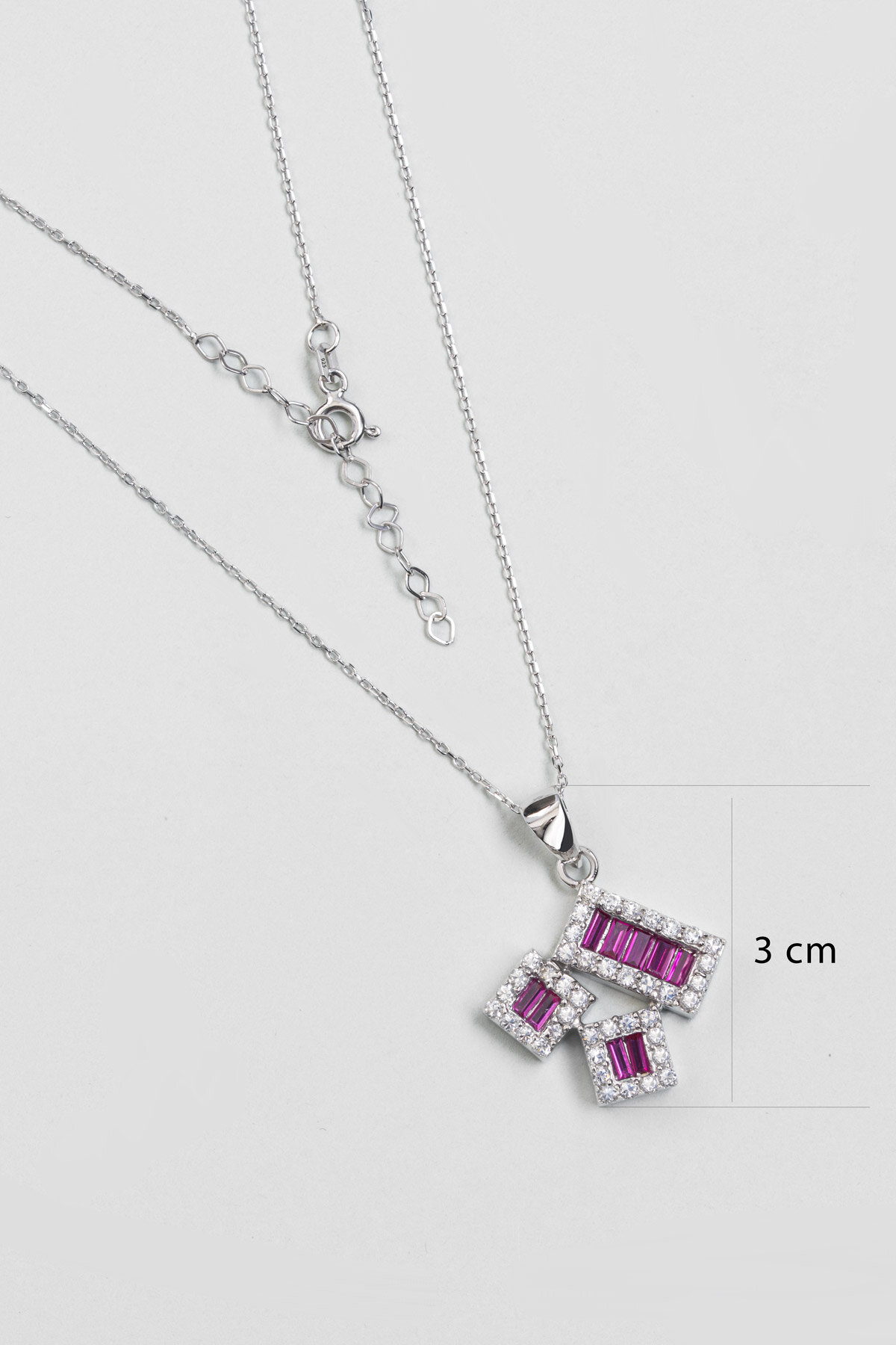 Geometrik Kolye, 18 ayar beyaz altın kaplama gümüş yapısı ve 40+4 cm ayarlanabilir uzunluğuyla modern bir şıklık sunar. Siyah ve fuşya taş seçenekleriyle tarzınızı tamamlar. Günlük kombinlerde basic parçalarla ya da katmanlı kullanımlarla dinamik ve stil sahibi bir görünüm elde edebilirsiniz.