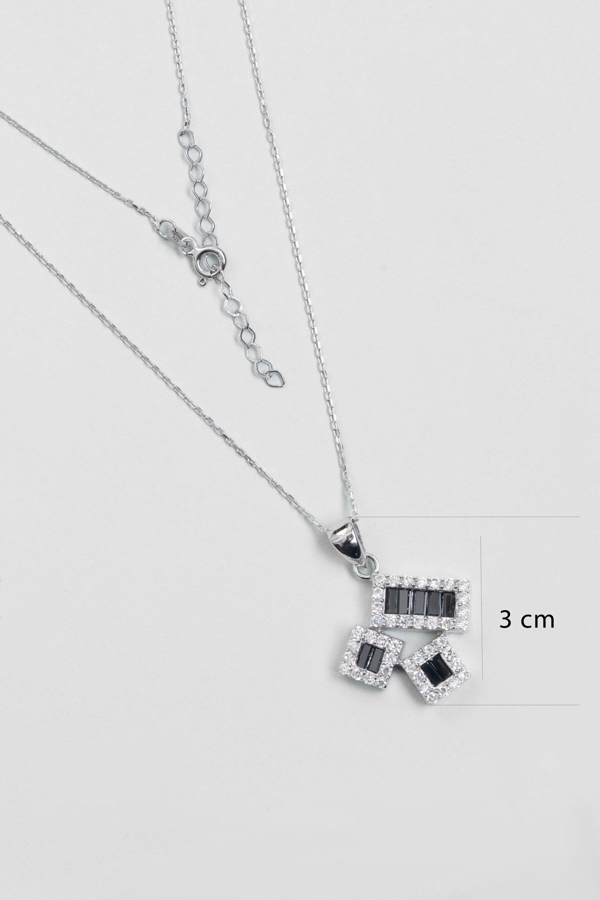 Geometrik Kolye, 18 ayar beyaz altın kaplama gümüş yapısı ve 40+4 cm ayarlanabilir uzunluğuyla modern bir şıklık sunar. Siyah ve fuşya taş seçenekleriyle tarzınızı tamamlar. Günlük kombinlerde basic parçalarla ya da katmanlı kullanımlarla dinamik ve stil sahibi bir görünüm elde edebilirsiniz.