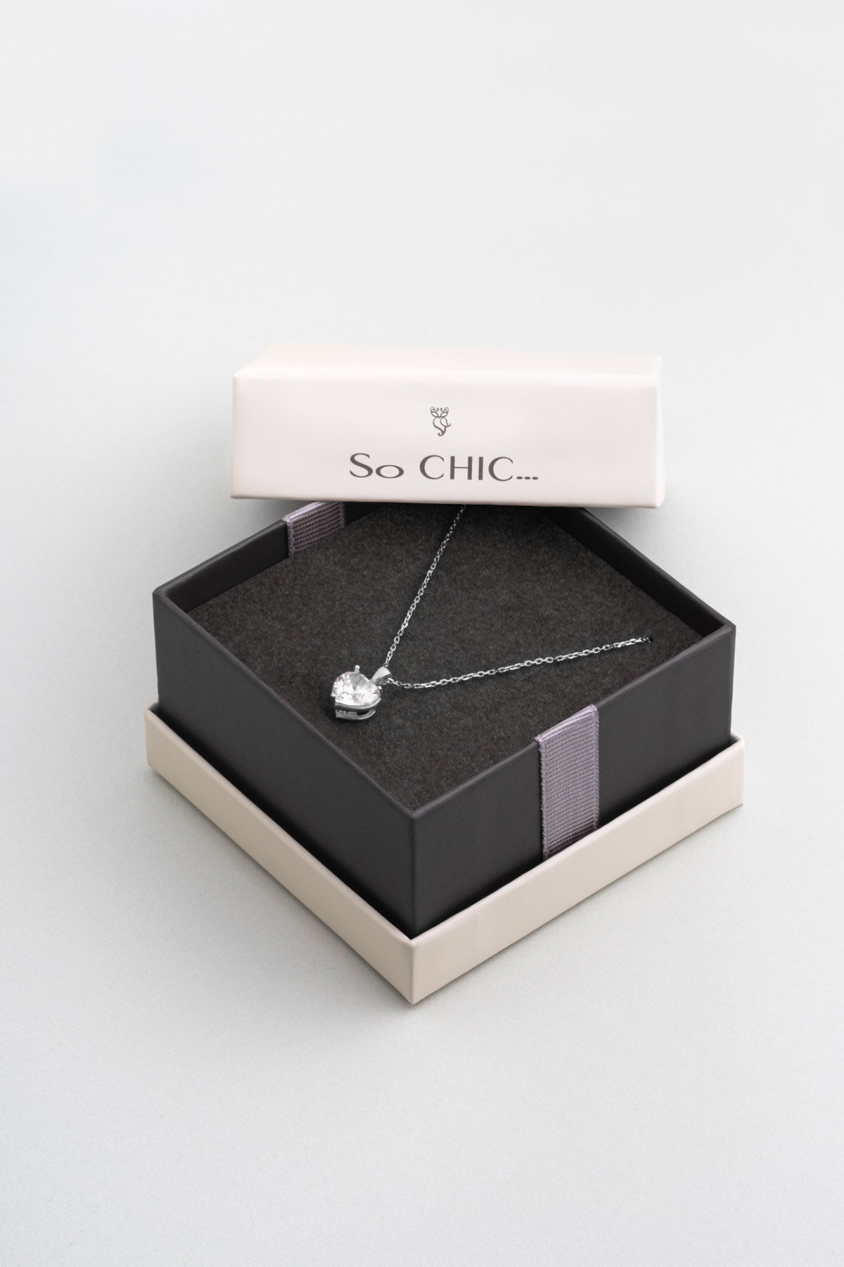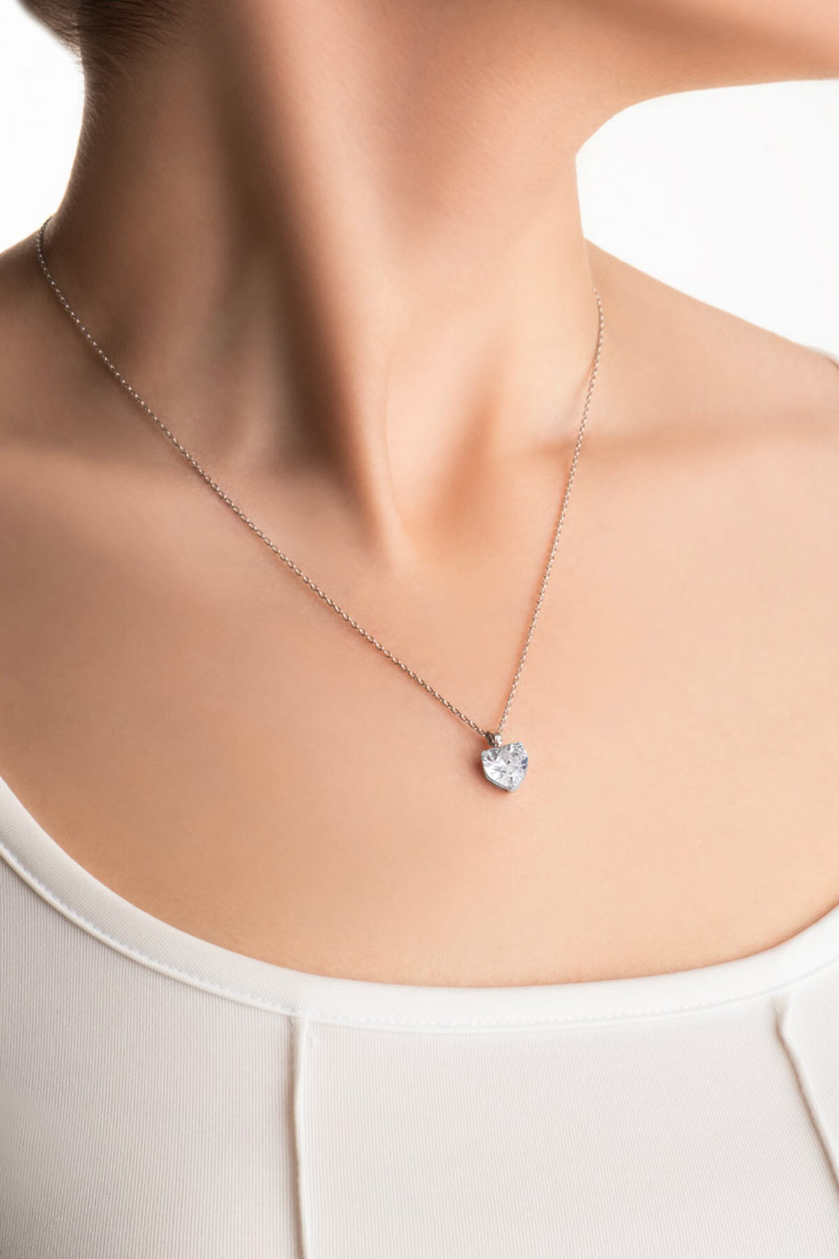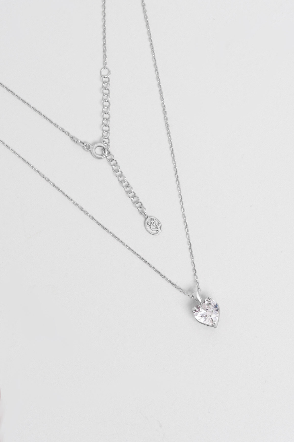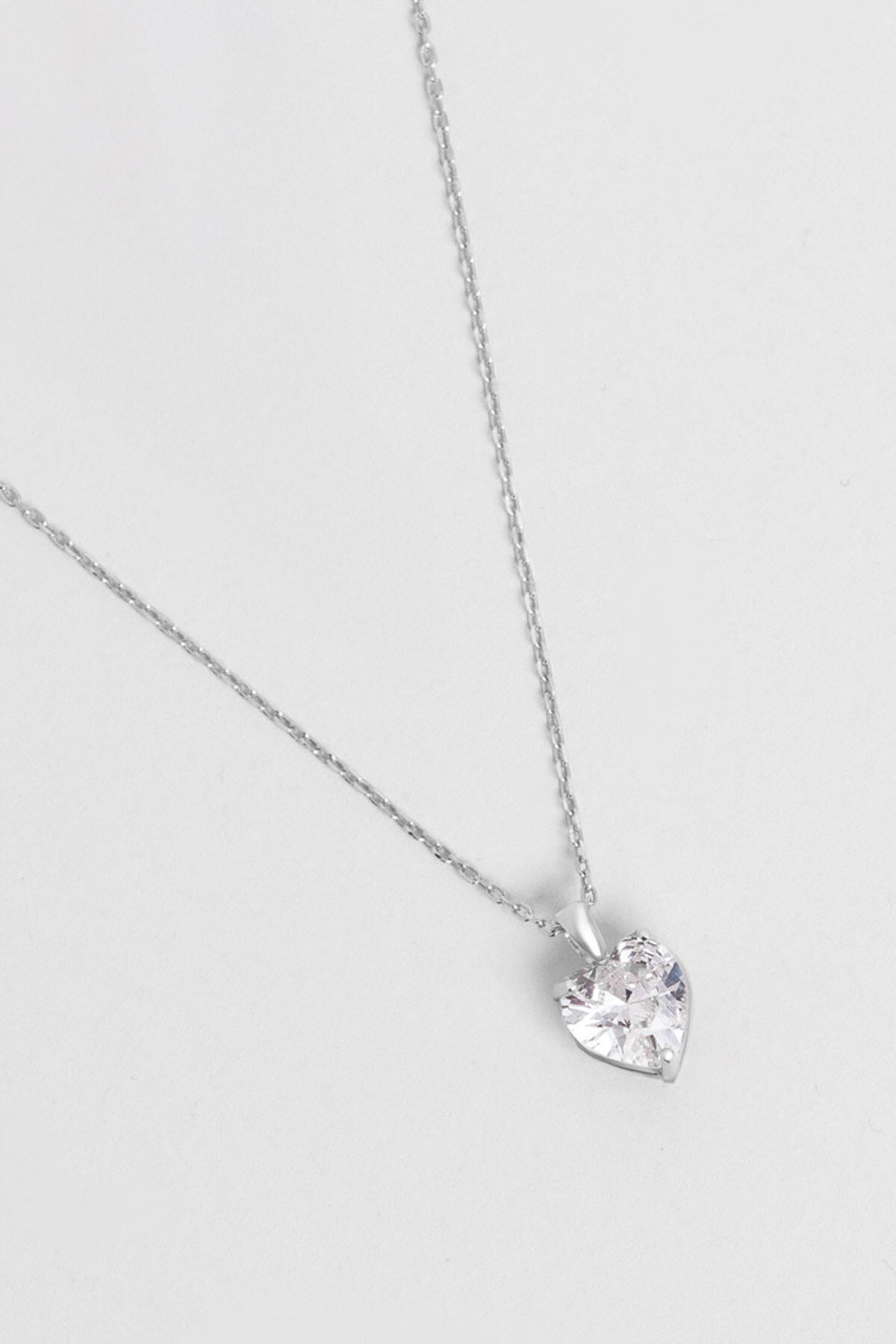 Gizemli Kalp 18 Ayar Beyaz Altın Kaplama 45 Cm Gümüş Kolye