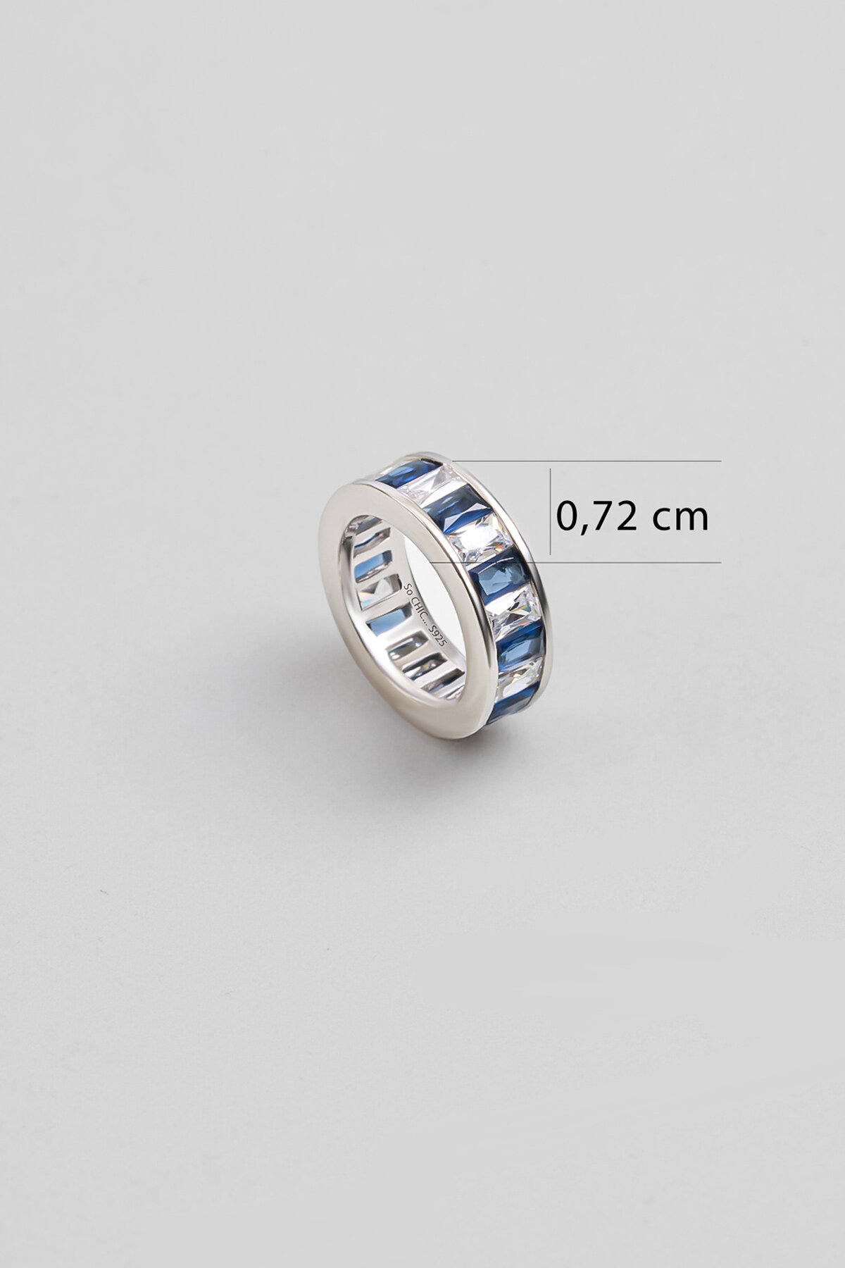 Gökkuşağı Baget 18 Ayar Beyaz Altın Kaplama Gümüş Yüzük