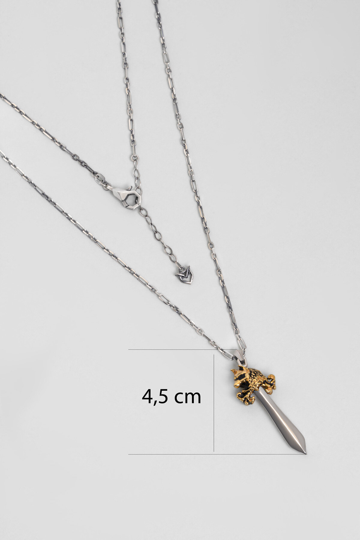 Göktürk Kılıcı Oksitli 65 Cm Gümüş Erkek Kolye
